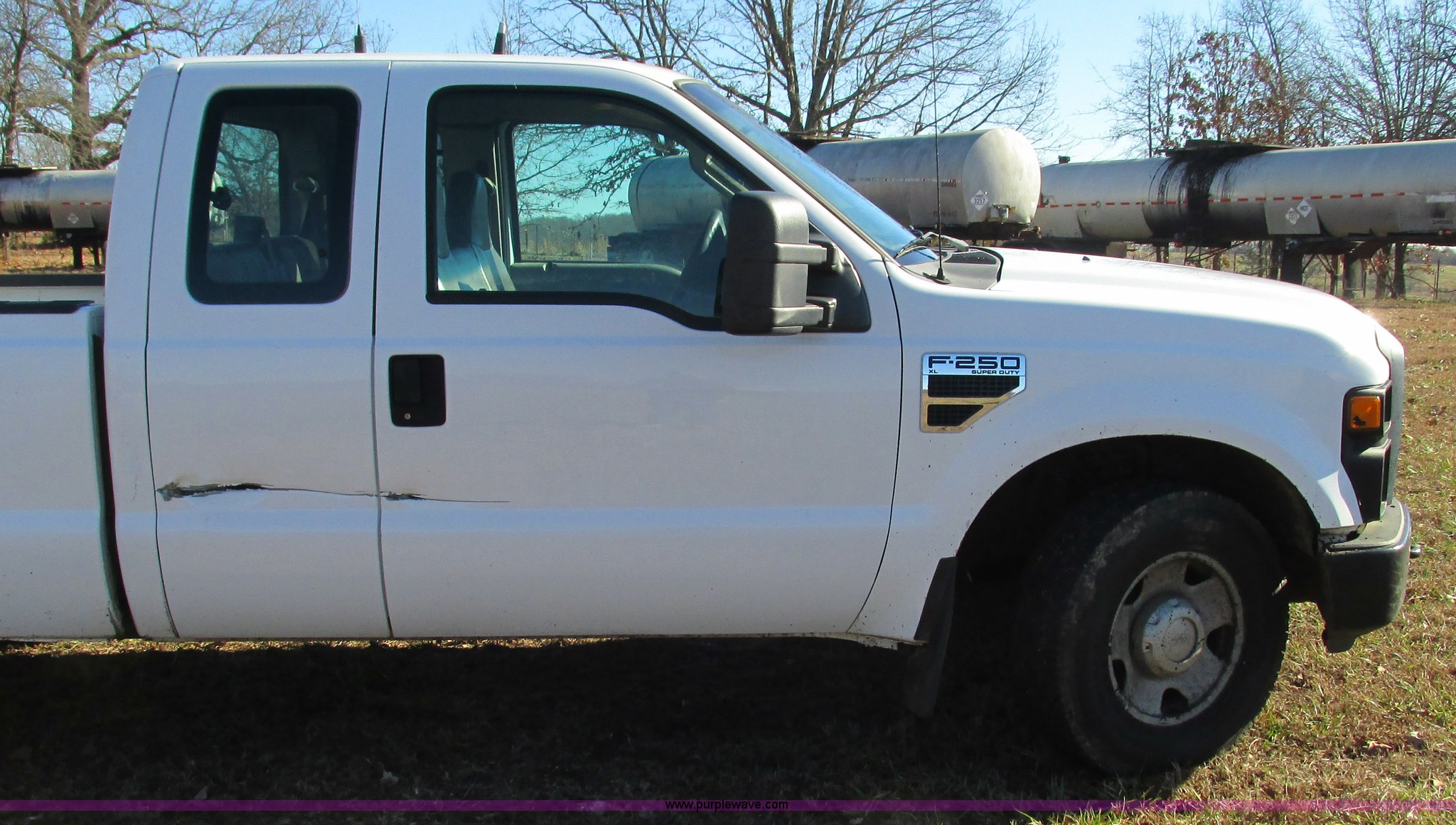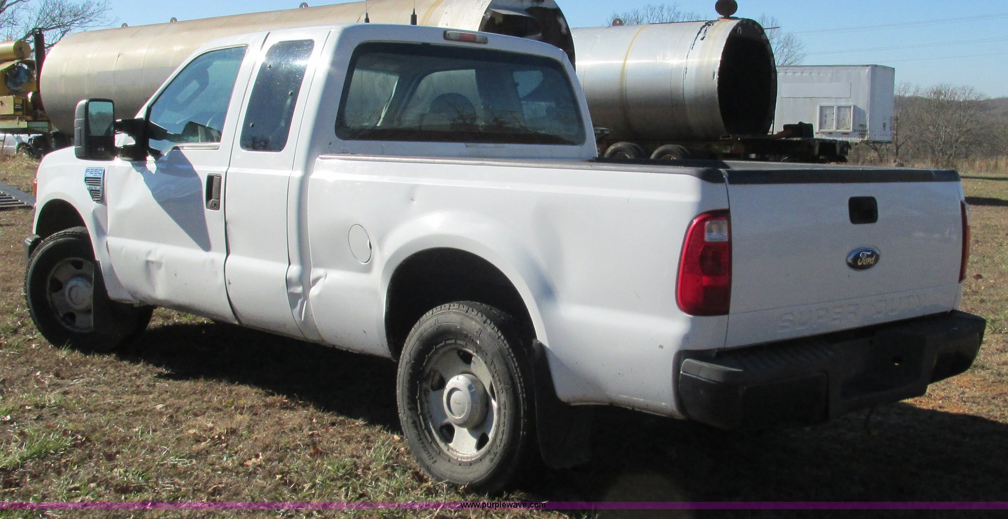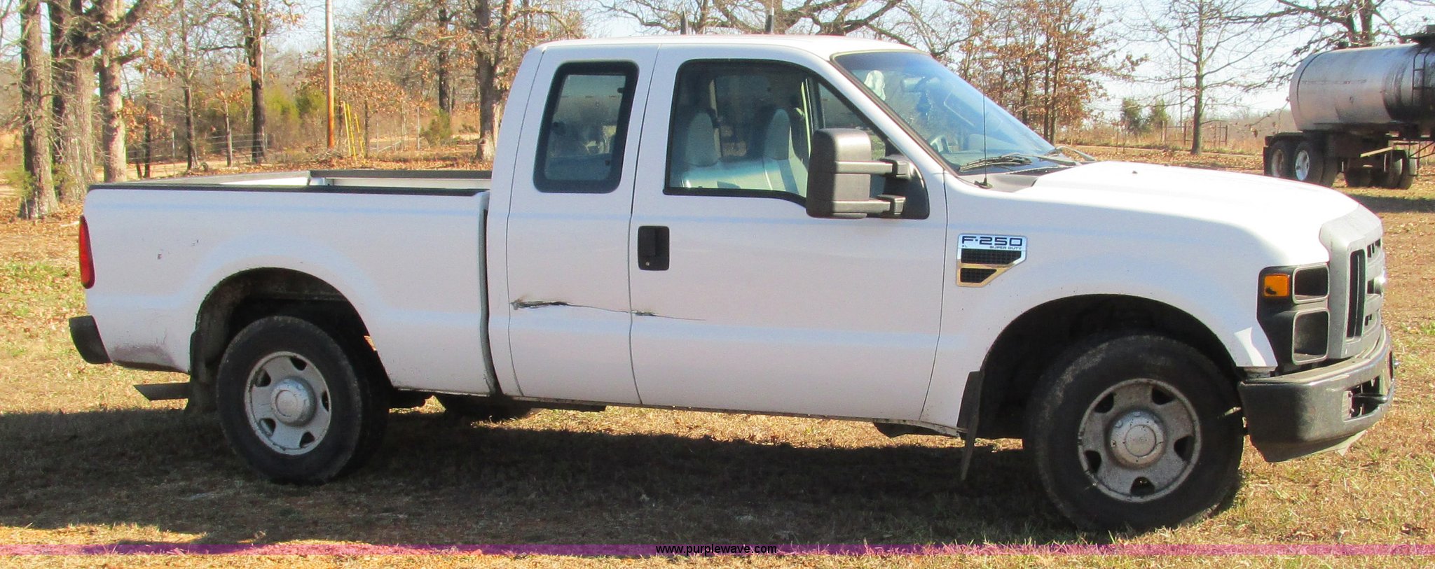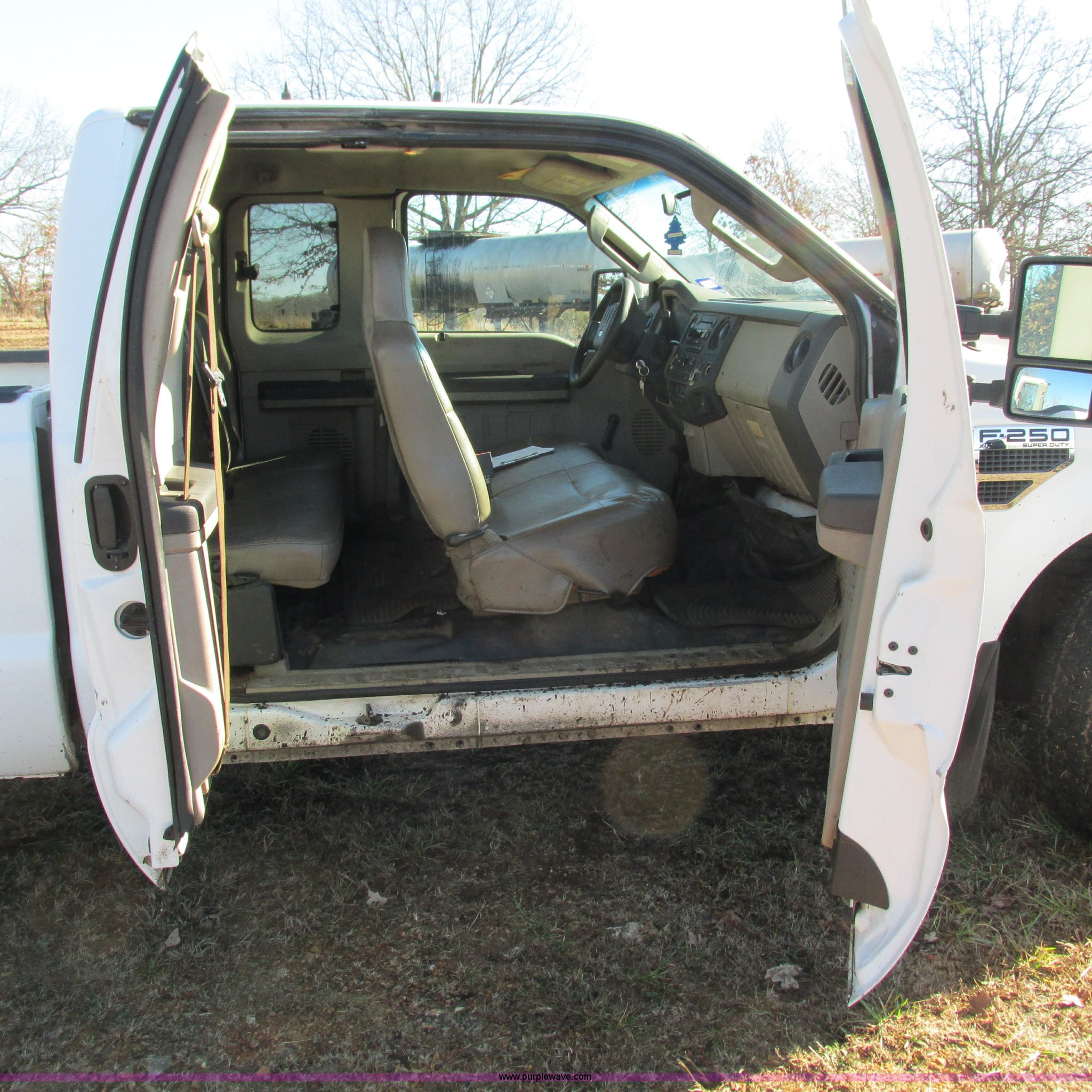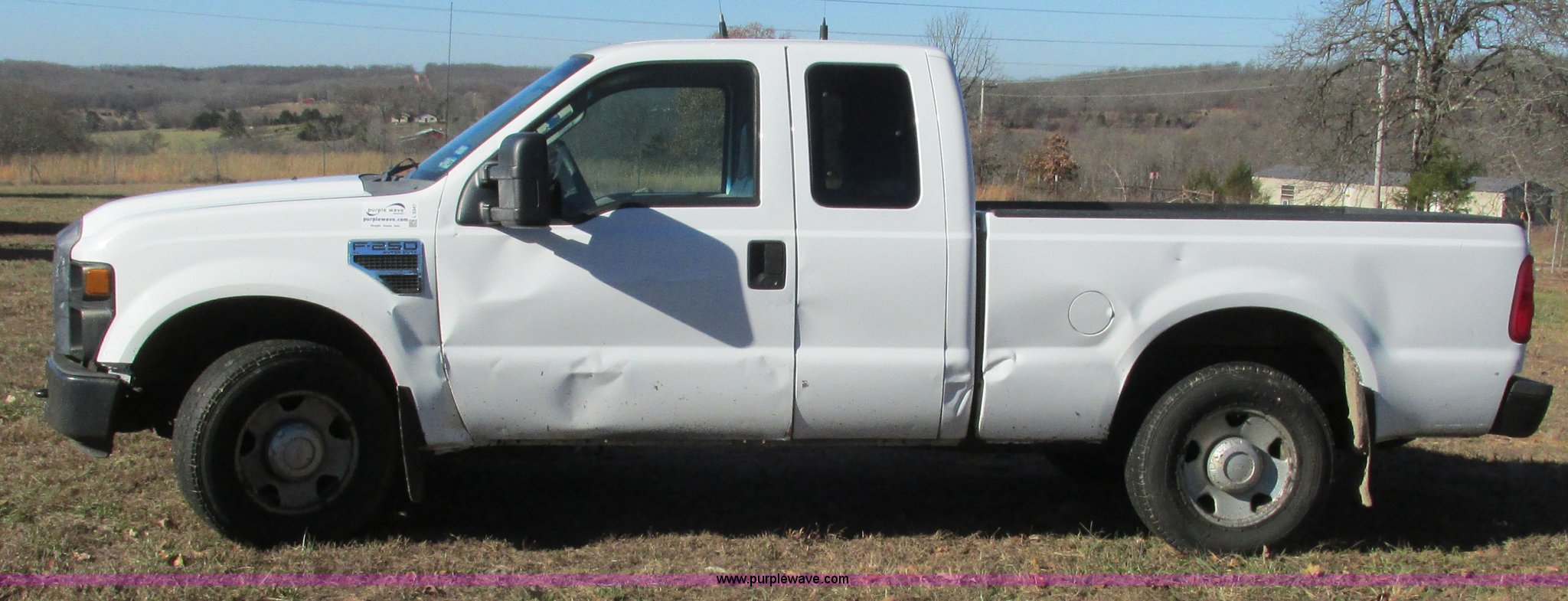 Purple Wave is selling a used 3/4 or 1 Ton Pickup or Van in Missouri. This item is a 2008 Ford F250 Super Duty XL SuperCab pickup truck with the following: 201,027 miles on odometer, 5.4L V8 SOHC 16V gas engine, Automatic transmission, AC and heat, Tilt, Cruise, AM/FM/CD, Manual windows and locks, Vinyl interior, Trailer brake controller, Backup alarm, Auxiliary controls, Front tow hooks, LT265/70R17 tires, Interior/exterior cosmetic damage, Driver's side mirror damaged