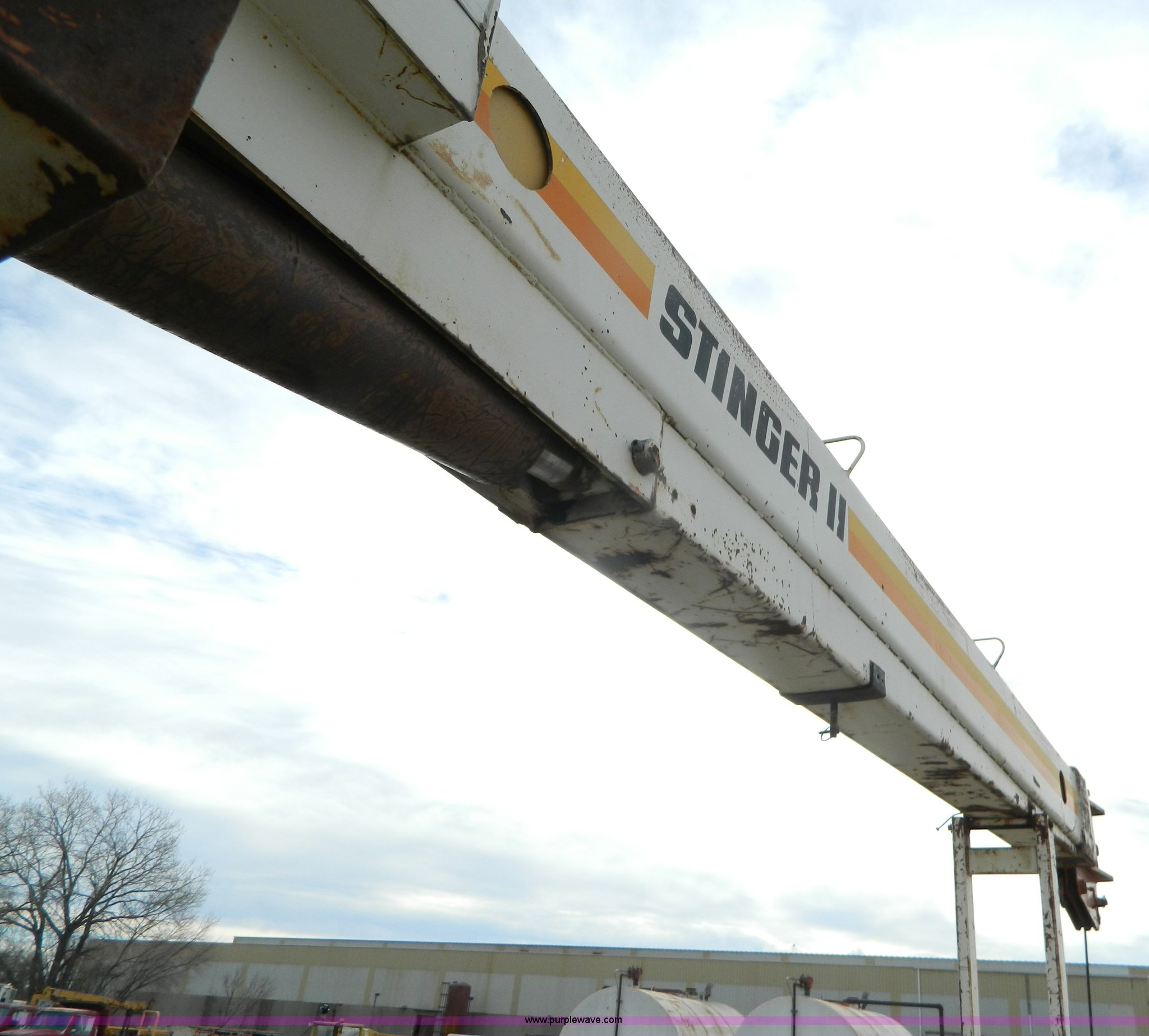 1977 Ford 800 crane truck. 33,112 miles on odometer, Caterpillar 3208 turbo diesel engine 637 hours on meter, 210 HP, Serial 62W85407, Automatic transmission, Heat, 18'L x 94"W flatbed, Stick platform controls, Stinger II TC125 crane Two section telescopic boom, 60' maximum reach, 24,000 lbs maximum lift capacity, Crane ball and hook, Spring suspension, Air brakes, Tandem axle, 10.00R20 tires, GVWR 34,000 lbs. T88JV047476. View equipment video. Stevens Contractors. 422 East Avenue A. Salina, KS 67402