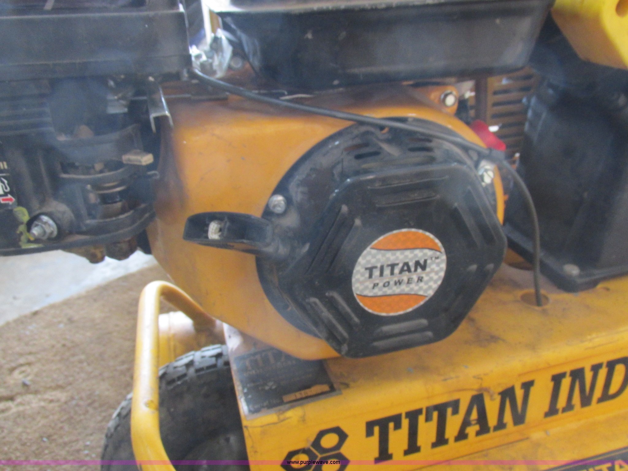 Purple Wave is selling a used Air Compressor in Missouri. This item is a Titan air compressor with the following: Gas engine, Serial 13832