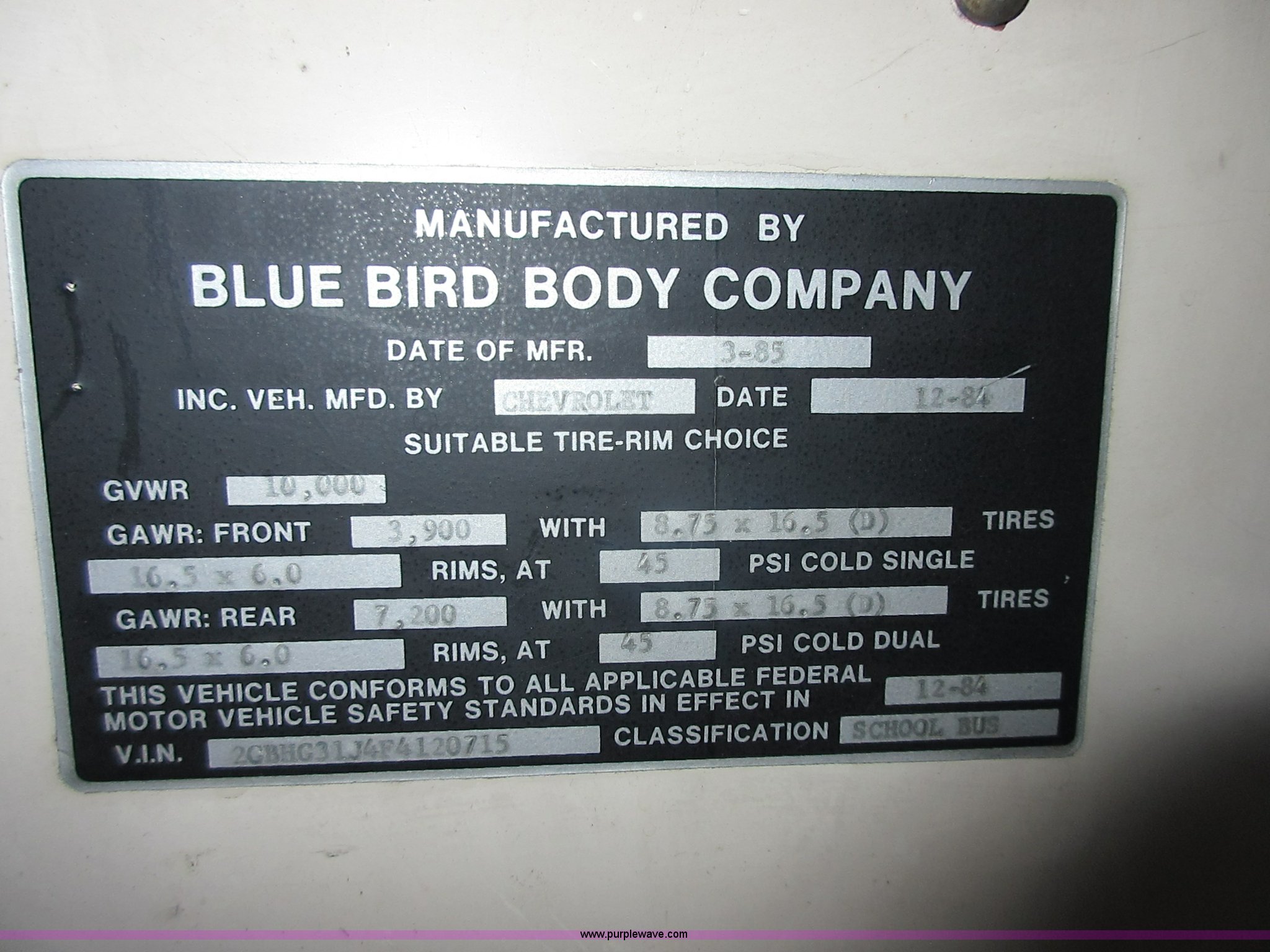 1985 Chevrolet G30 van. Unknown miles on odometer, 6.2L V8 OHV 16V diesel engine, Automatic transmission, Heat, Roof top A/C, Manual windows and locks, Vinyl interior, 19 passenger capacity, 9.50R/16.5LT tires, GVWR 10,000 lbs, Transmission issues. 2GBHG31J4F4120715. Chanute , KS 66720