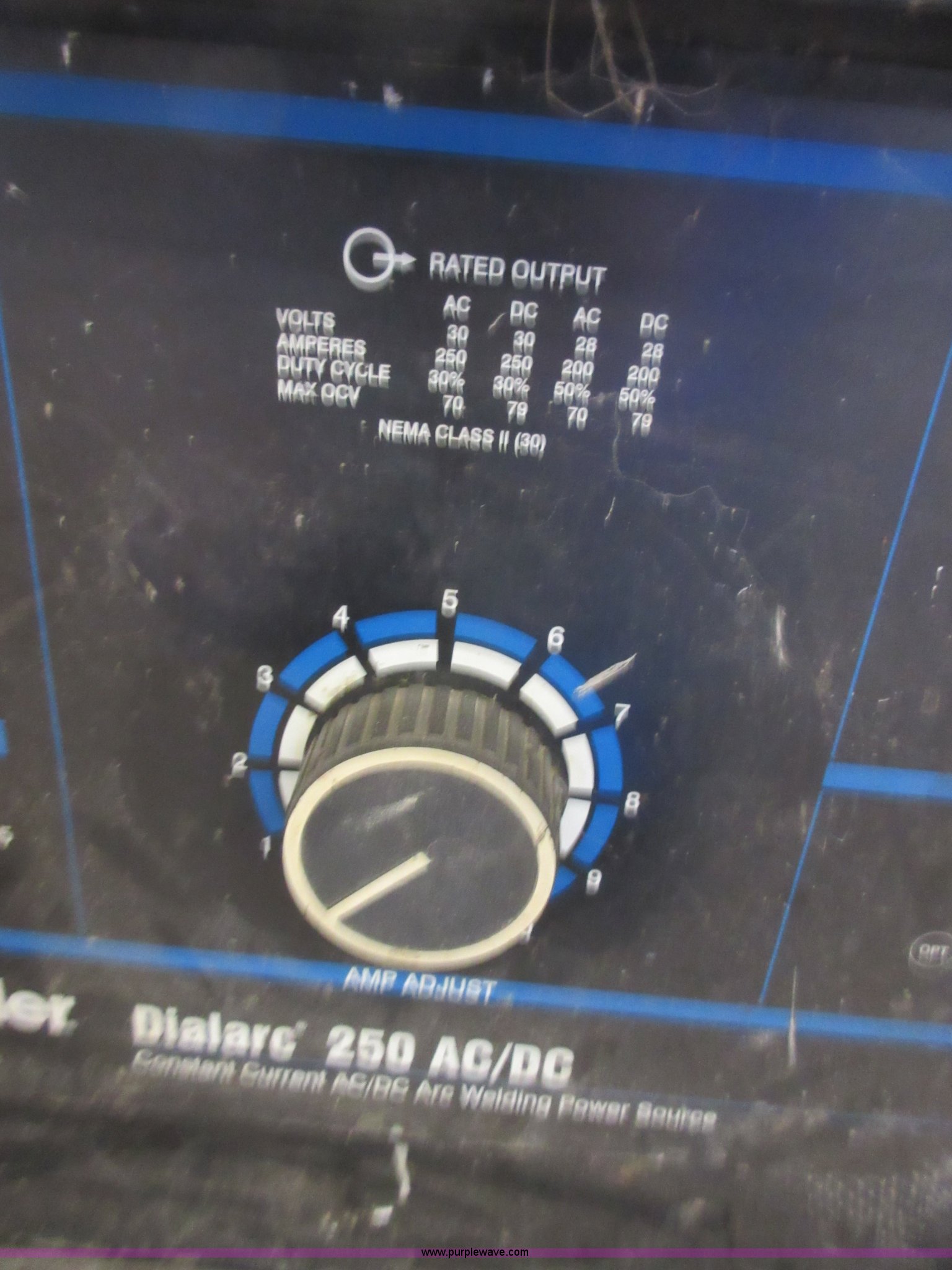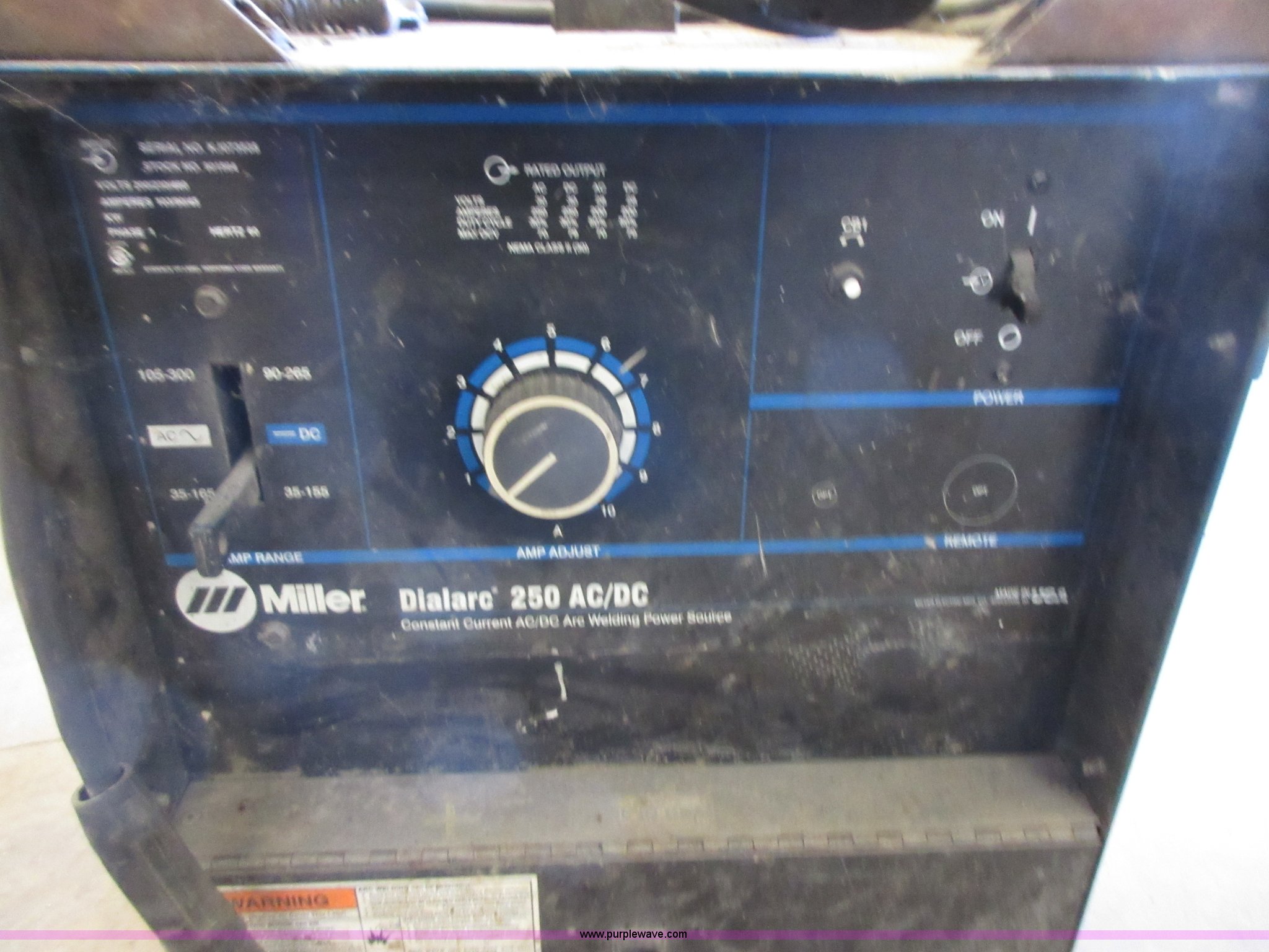 Purple Wave is selling a used Welder (Manual) in Oklahoma. This item is a Miller Dialarc 250 arc welder with the following: AC/DC, Leads, Serial KJ073585