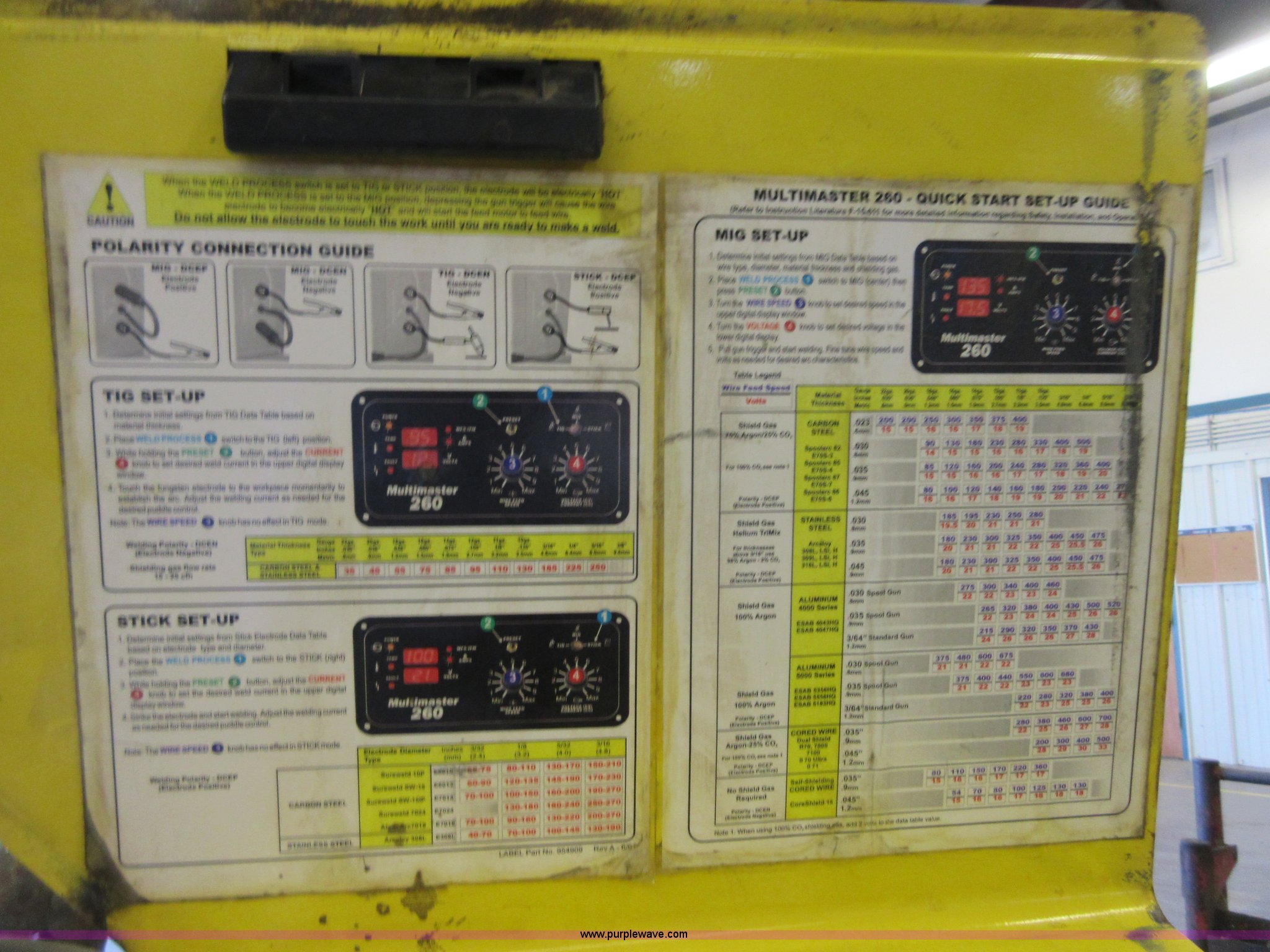 Esab Multimaster 260 wire feed welder. Regulator, Wire, Serial MORJ129040. Consolidated Oil Well Services. 278 County Rd 2706. Bartlesville, OK 74003