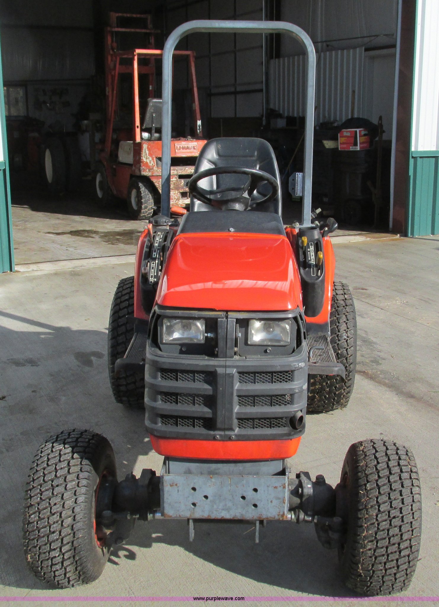 Purple Wave is selling a used Tractor in Missouri. This item is a 2003 Kubota BX1800 MFWD tractor with the following: 7,031 hours on meter, Kubota D722 three cylinder diesel engine, 18 HP, Serial 6X6289, Hydrostatic transmission, Power steering, Three point, No top link, 540 PTO, Draw bar, 18x8.5-8 NHS front turf tires, 26x12.00-12 NHS rear turf tires, Front light cover missing, Serial 5A484