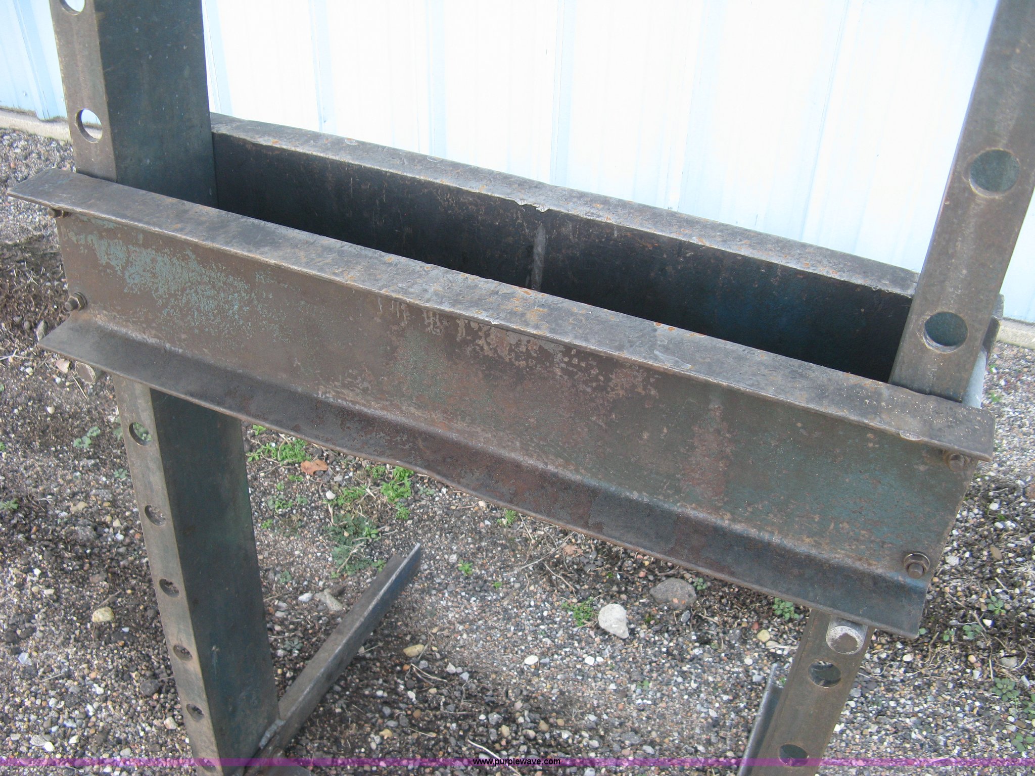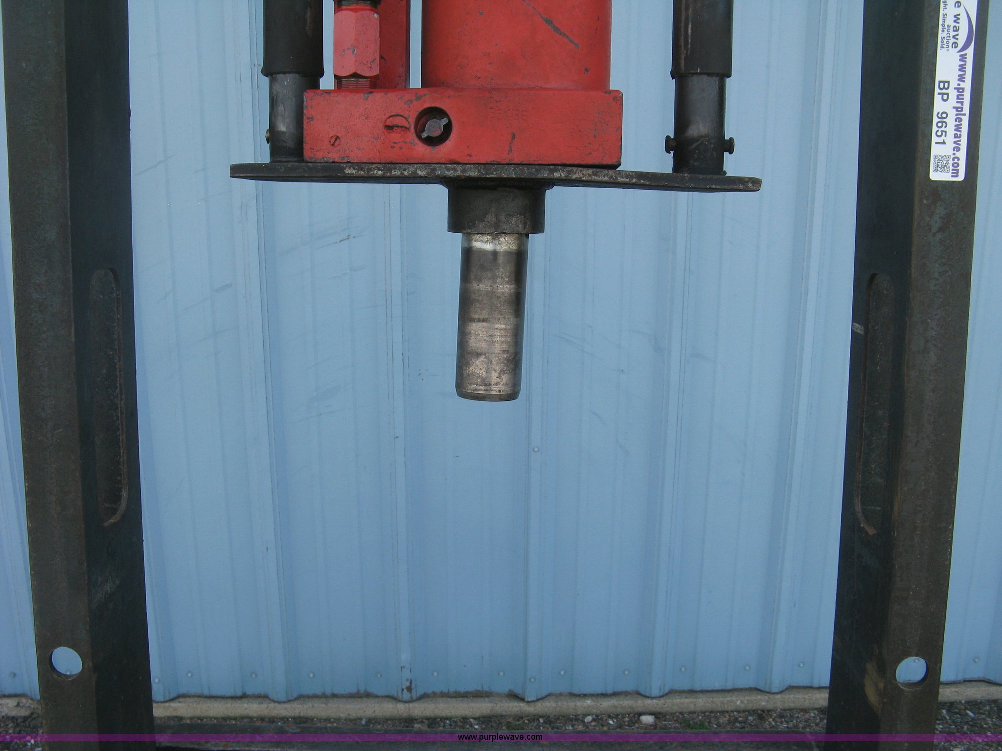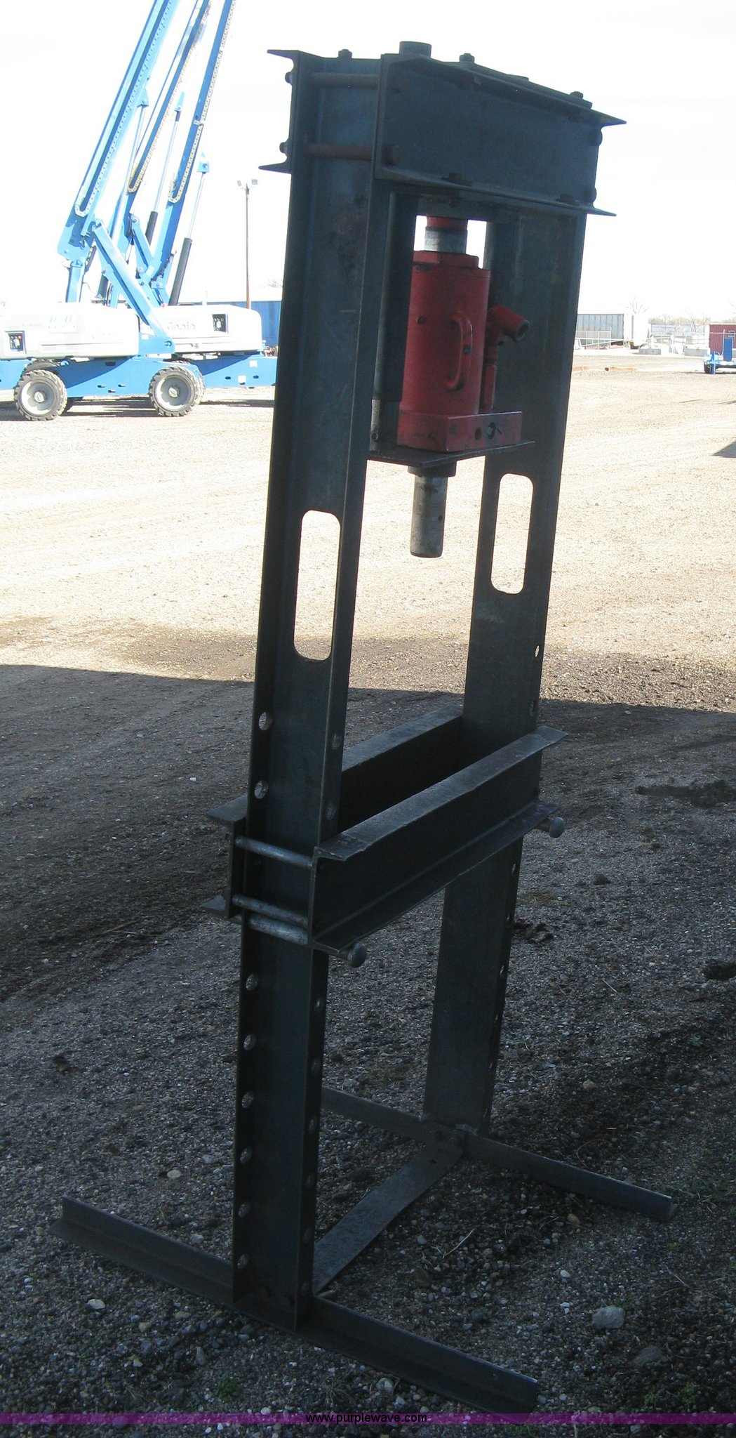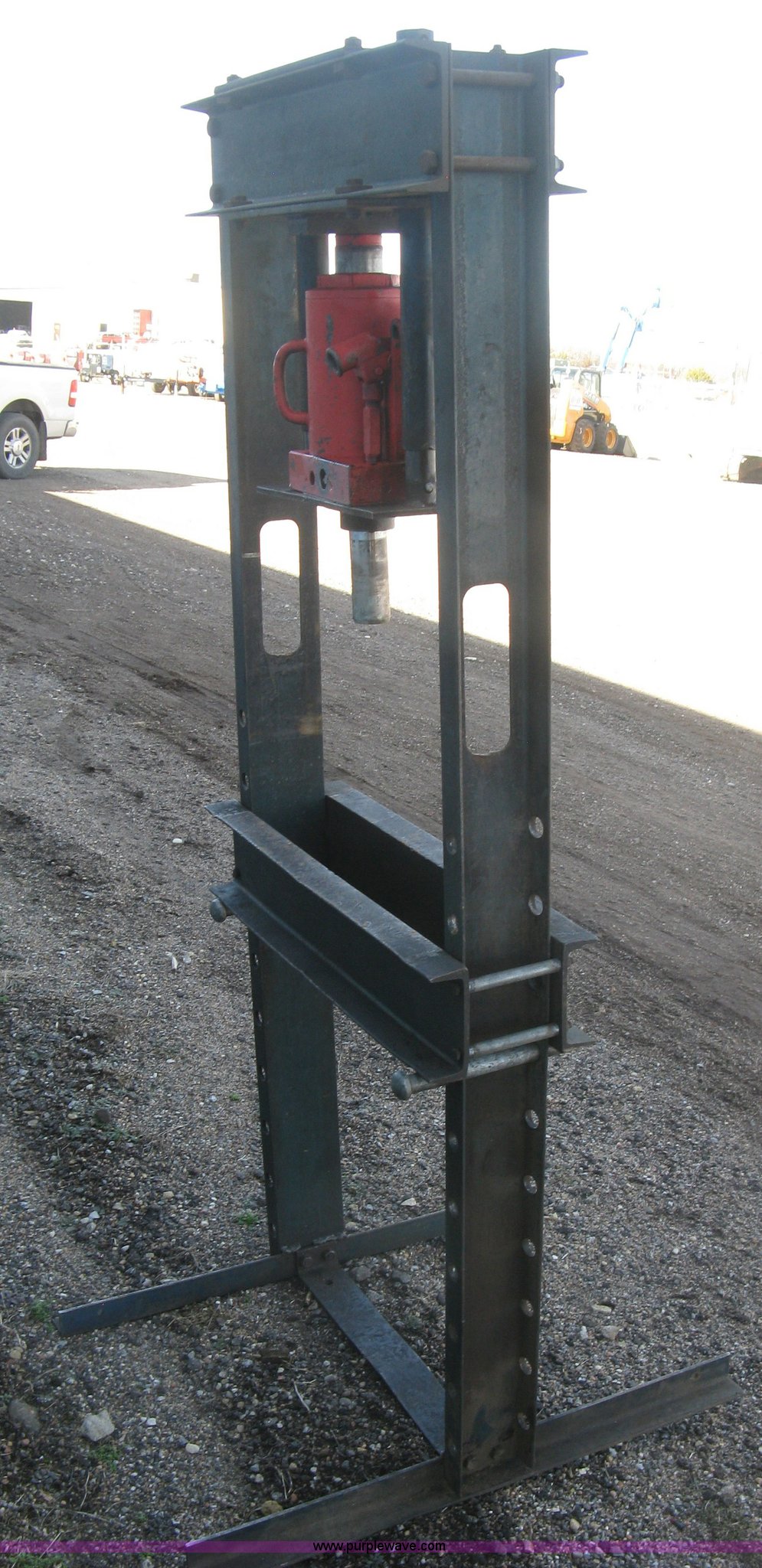 Purple Wave is selling a used Tools in Kansas. This item is a Walker J842 hydraulic press with the following: 25 ton capacity, Bottle jack press, Manual adjust platform, Lower press body slightly bent, Serial A