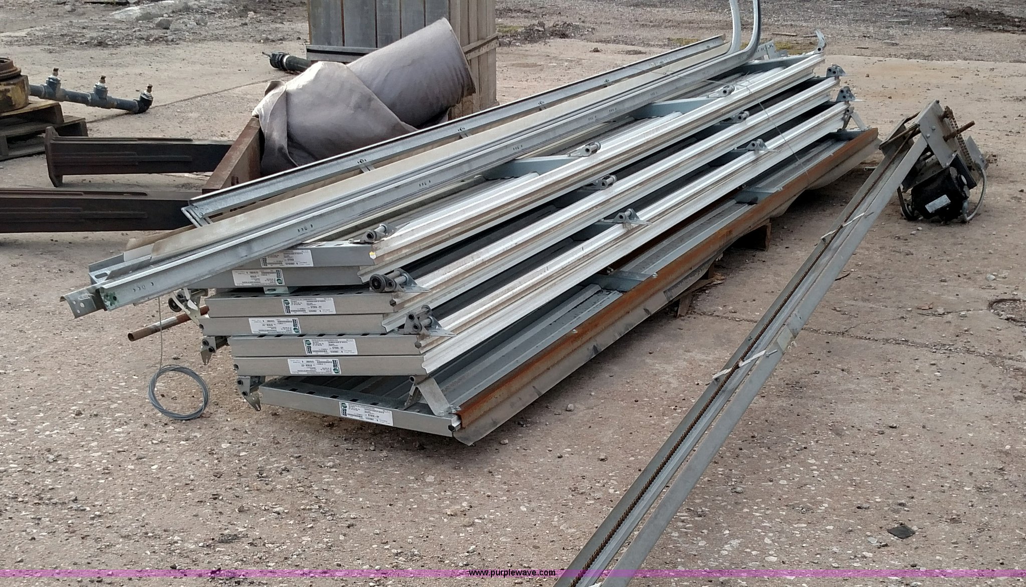 Purple Wave is selling a used Building Materials in Kansas. This item is a Overhead door with the following: Overhead door. 12' x 14'. Insulated. Opener. Alan's Excavating. Augusta, KS 67010