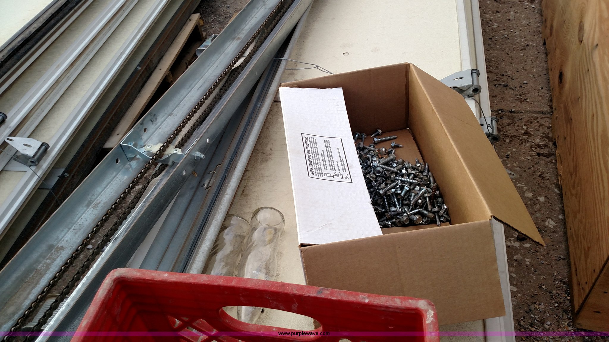 Purple Wave is selling a used Building Materials in Kansas. This item is a Overhead door with the following: Overhead door. 12' x 14'. Insulated. Opener. Alan's Excavating. Augusta, KS 67010