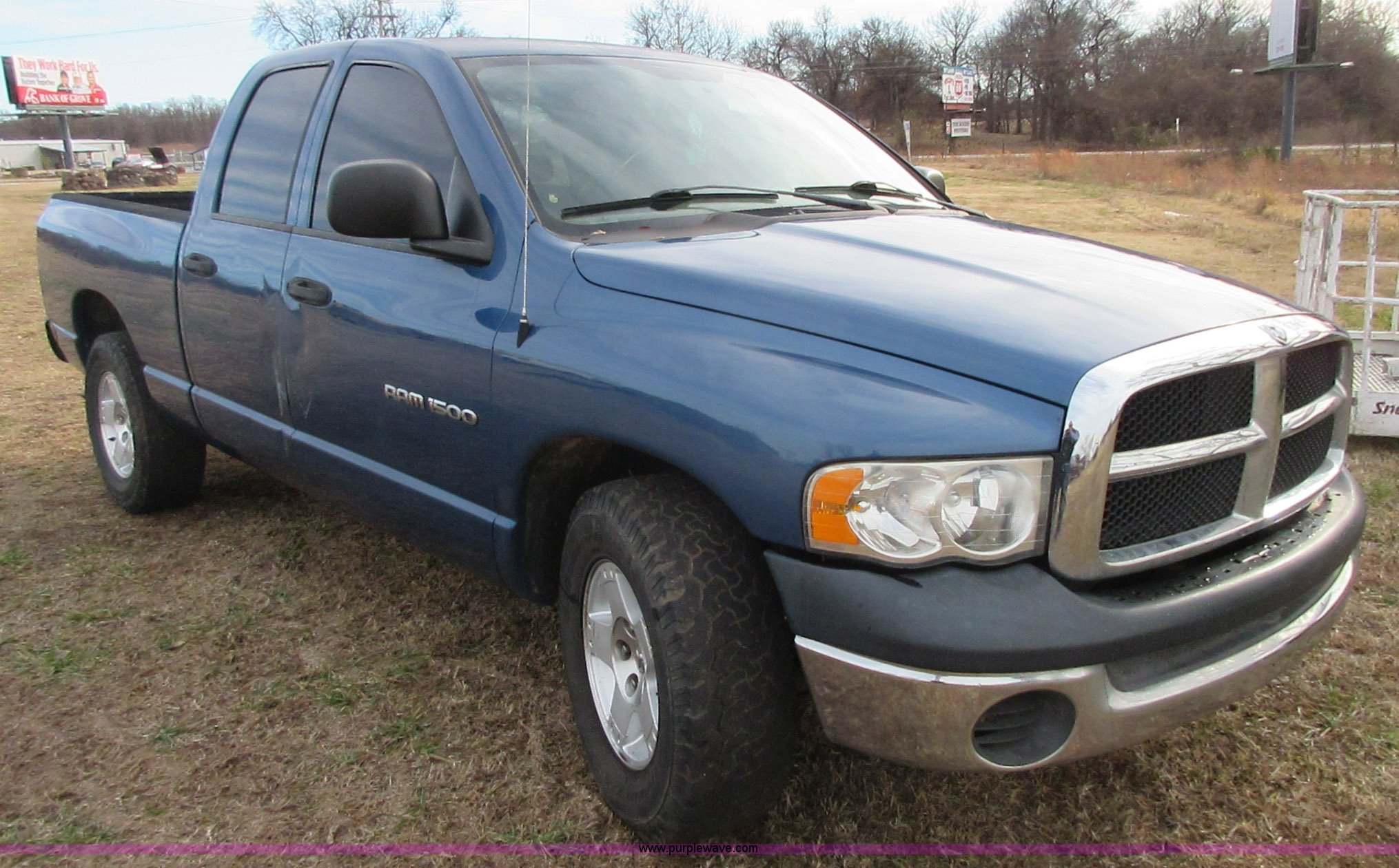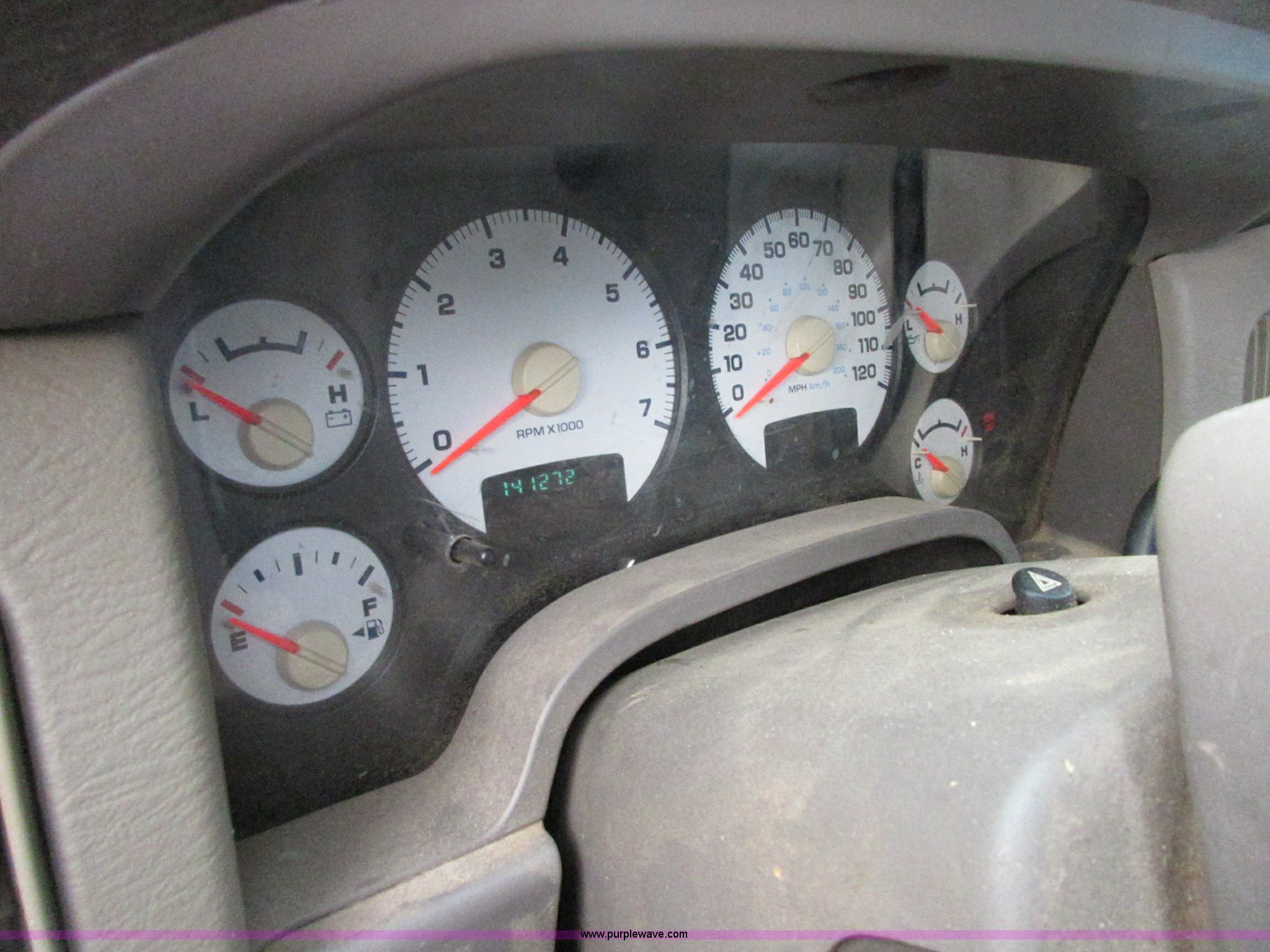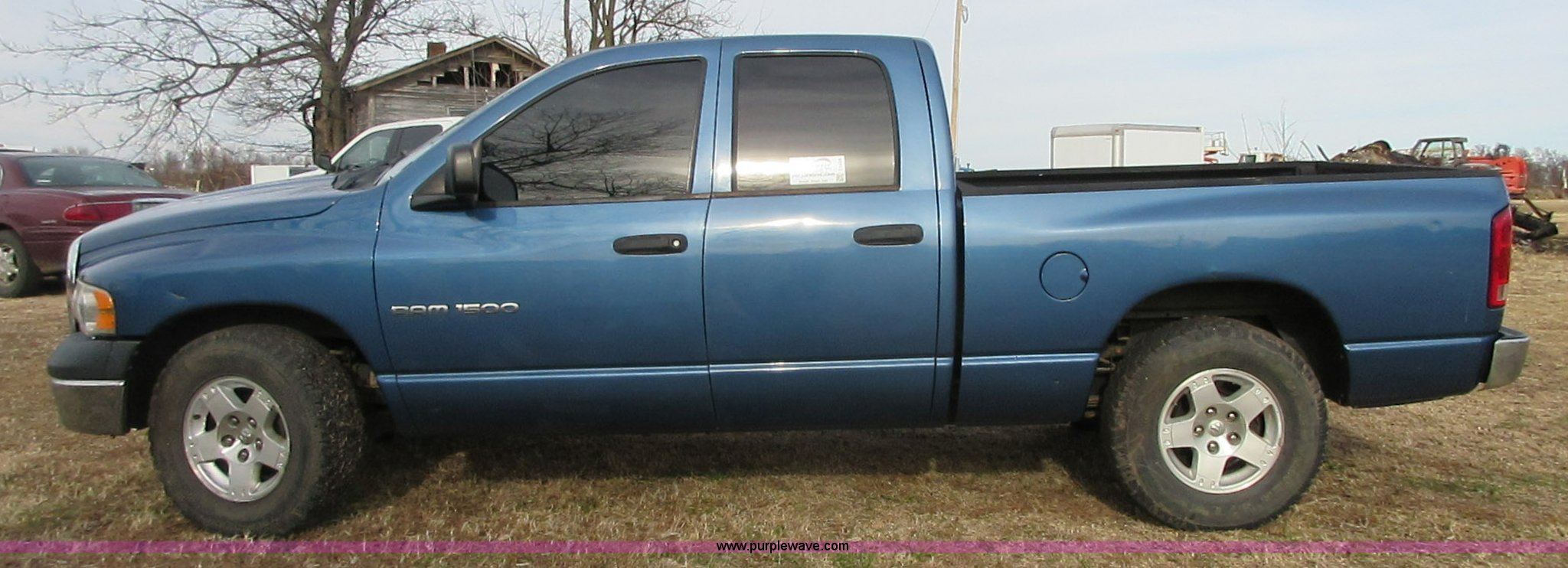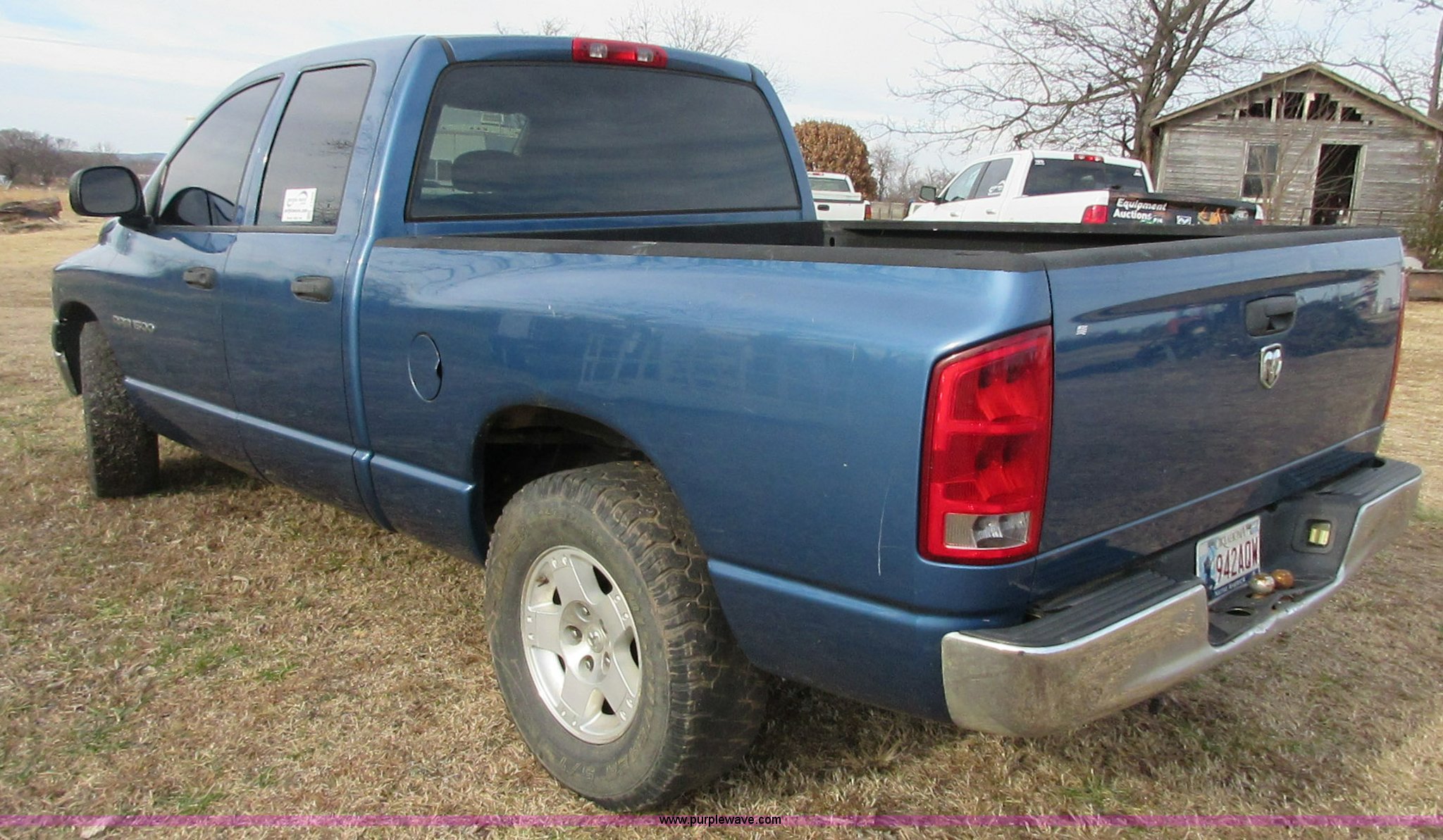 Purple Wave is selling a used 1/2 Ton Pickup or Van in Oklahoma. This item is a 2005 Dodge Ram 1500 Quad Cab pickup truck with the following: 141,272 miles on odometer, 4.7L V8 SOHC 16V gas engine, Automatic transmission, AC and heat, Tilt, Cruise, AM/FM/CD/cassette, Manual windows and locks, Cloth interior, Trailer wiring, LT285/70R17 tires, Interior/exterior cosmetic damage, Cracked windshield, Approx. 10,000 miles on re-manufactured engine