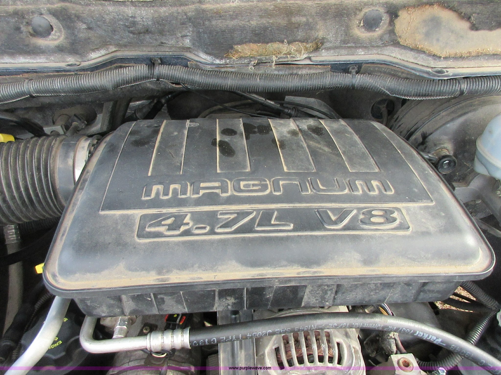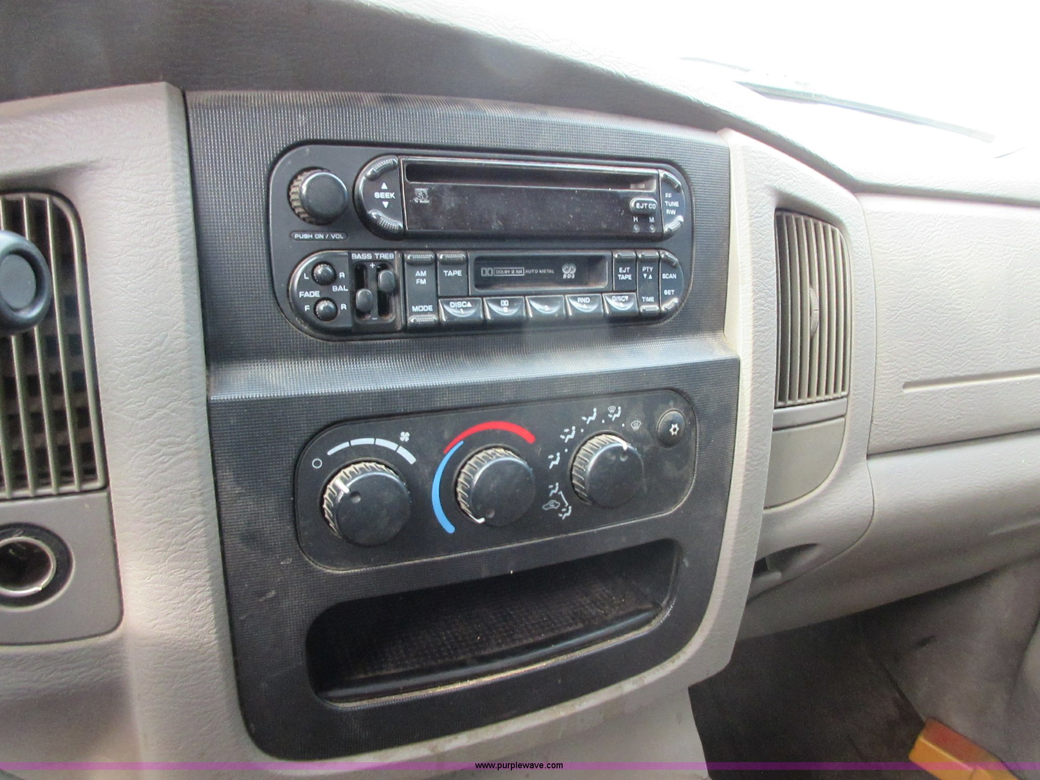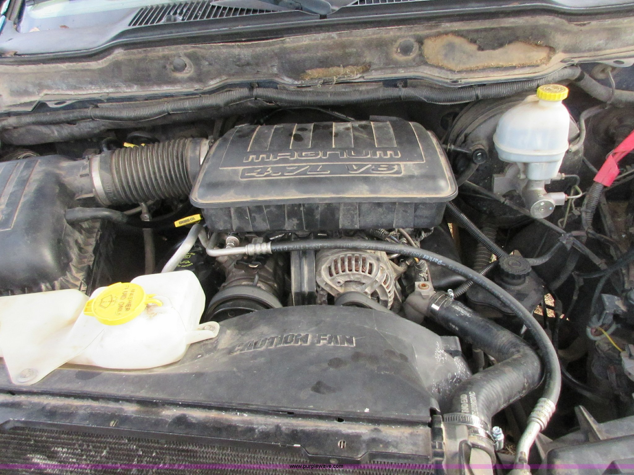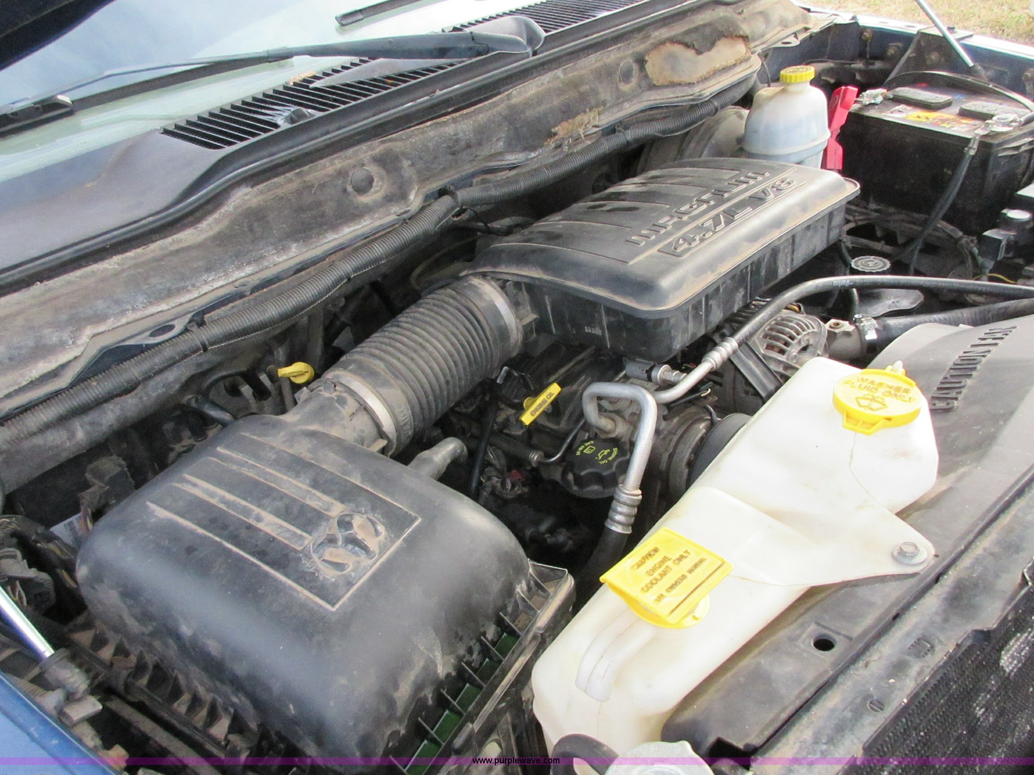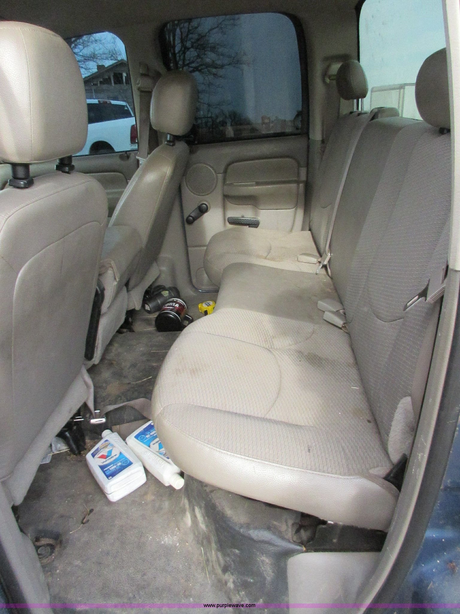 Purple Wave is selling a used 1/2 Ton Pickup or Van in Oklahoma. This item is a 2005 Dodge Ram 1500 Quad Cab pickup truck with the following: 141,272 miles on odometer, 4.7L V8 SOHC 16V gas engine, Automatic transmission, AC and heat, Tilt, Cruise, AM/FM/CD/cassette, Manual windows and locks, Cloth interior, Trailer wiring, LT285/70R17 tires, Interior/exterior cosmetic damage, Cracked windshield, Approx. 10,000 miles on re-manufactured engine