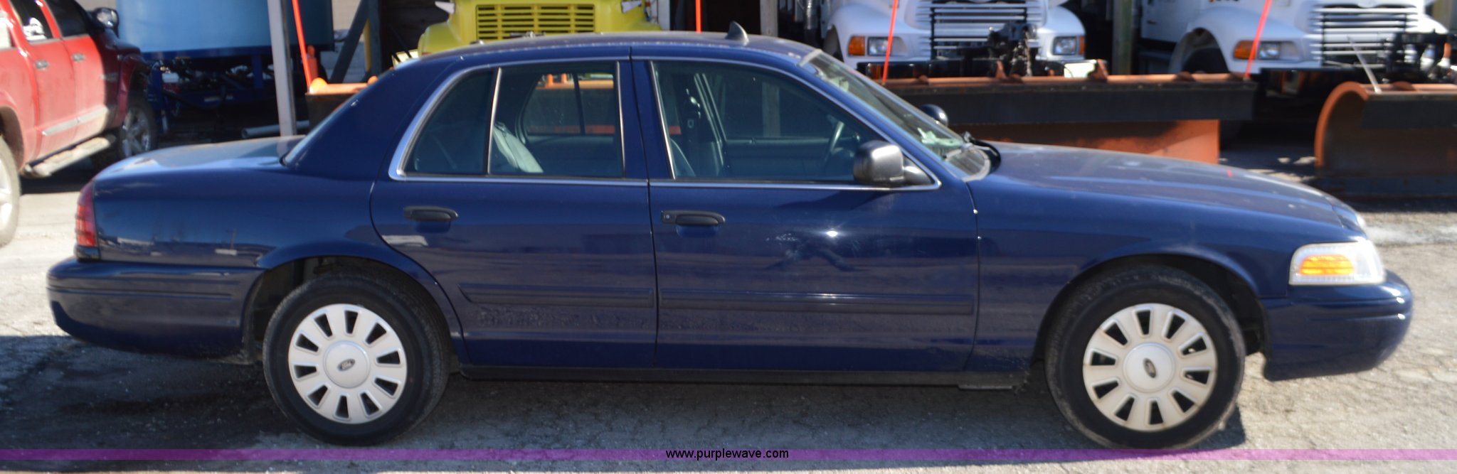 Purple Wave is selling a used Passenger Vehicle in Missouri. This item is a 2011 Ford Crown Victoria Police Interceptor with the following: 87,862 miles on odometer, 4.6L V8 SOHC 16V FFV gas engine, Automatic transmission, AC and heat, Tilt, Cruise, AM/FM, Power windows, locks, mirrors, and seats, Vinyl interior, 235/55R17 tires, Tire pressure light on