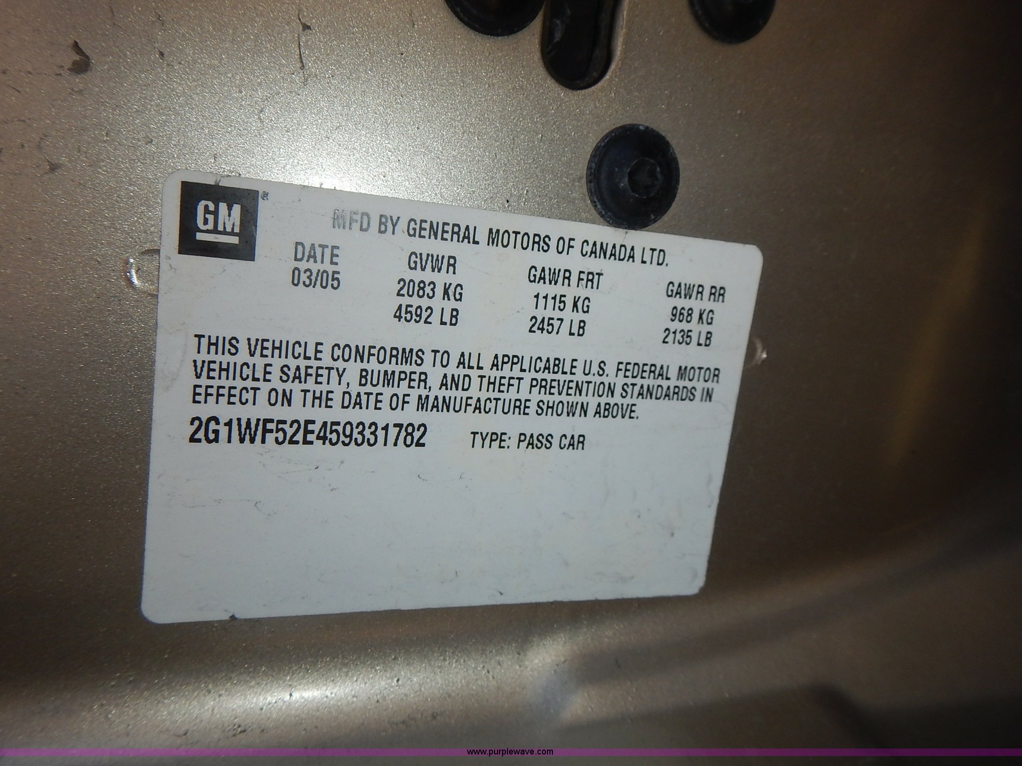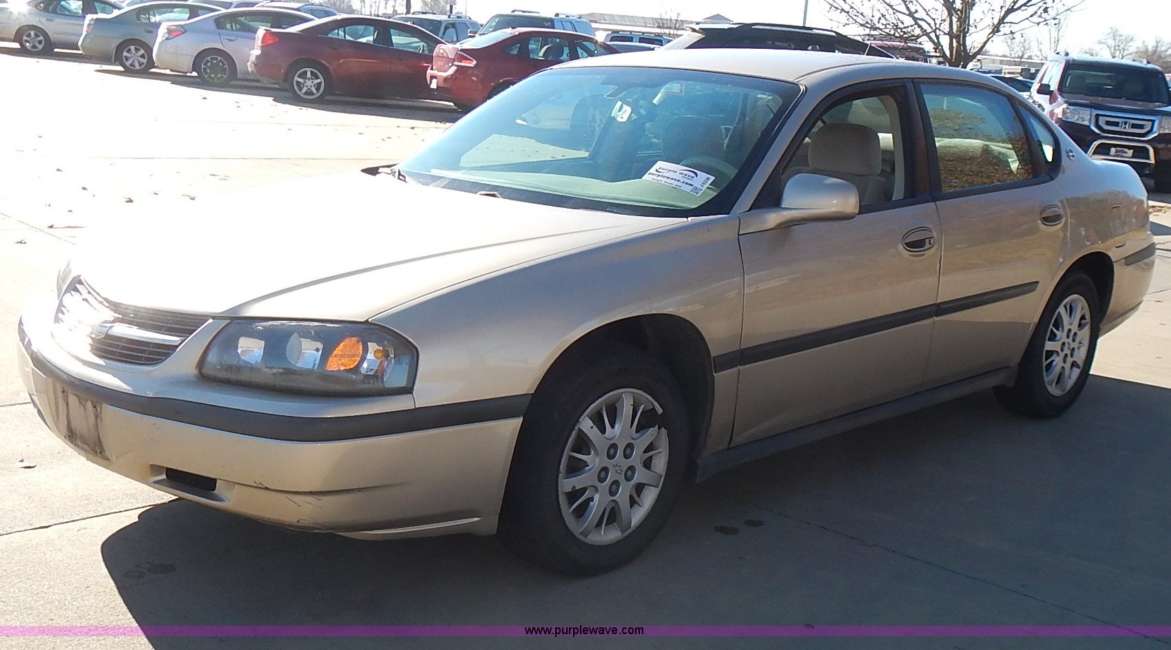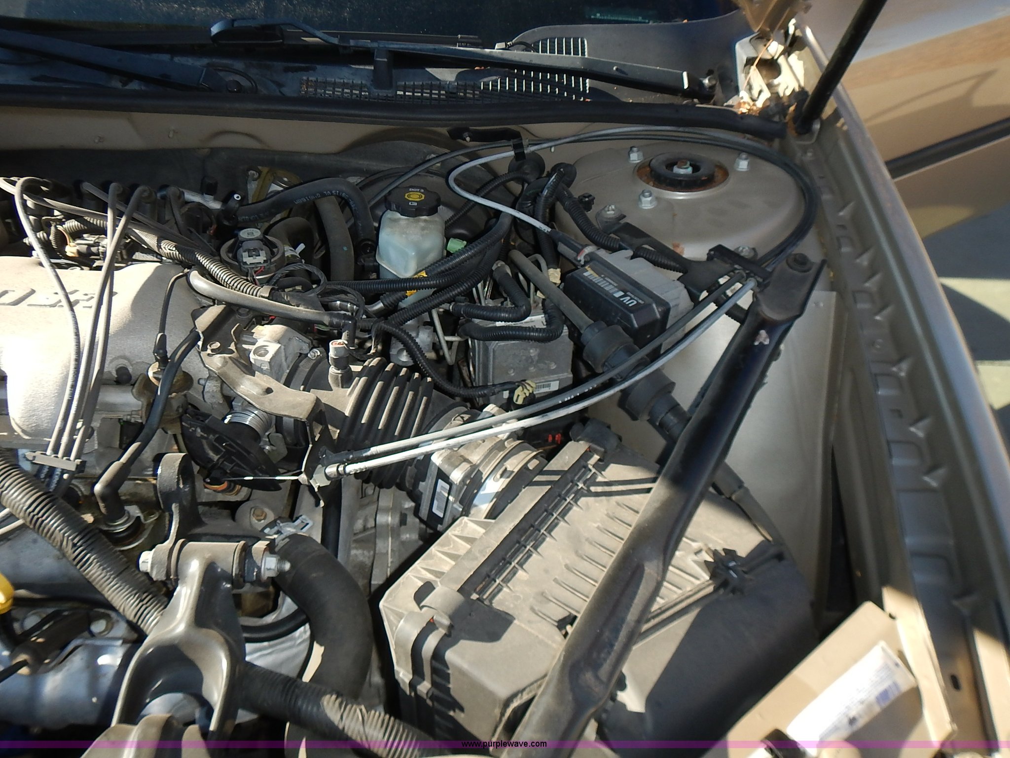 Purple Wave is selling a used Passenger Vehicle in Kansas. This item is a 2005 Chevrolet Impala with the following: 110,735 miles on odometer, 3.4L V6 OHV 12V gas engine, Automatic transmission, AC and heat, Tilt, AM/FM/cassette, Power windows, locks, mirrors, and seat, Cloth interior, 225/60R16 tires, ABS light is on