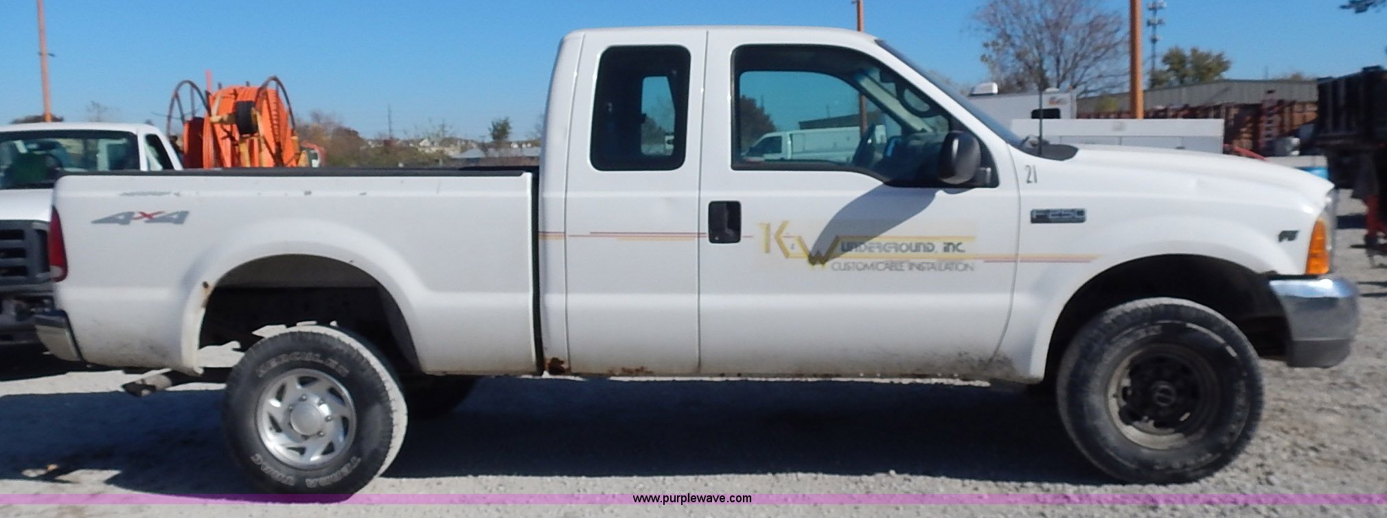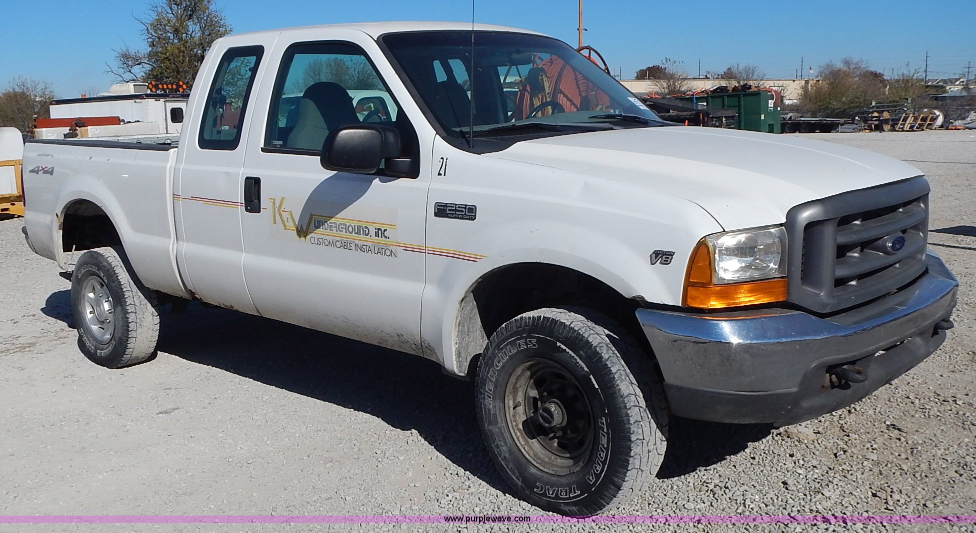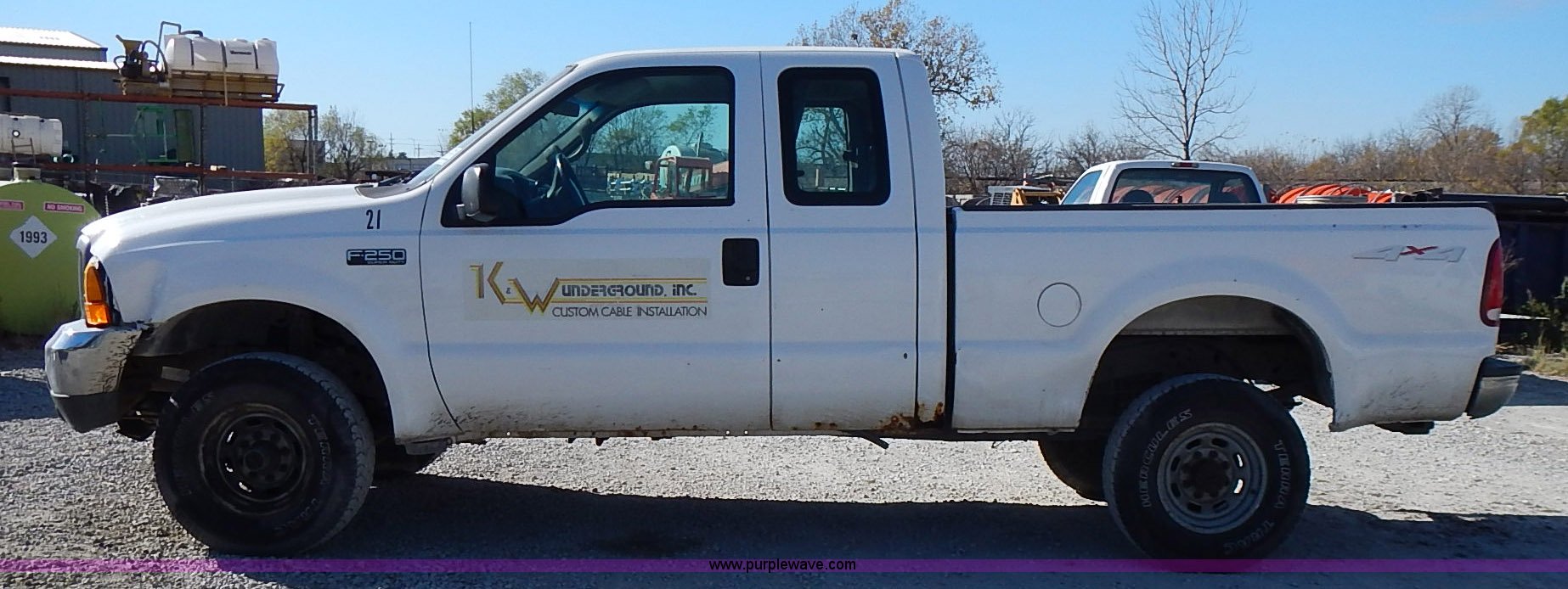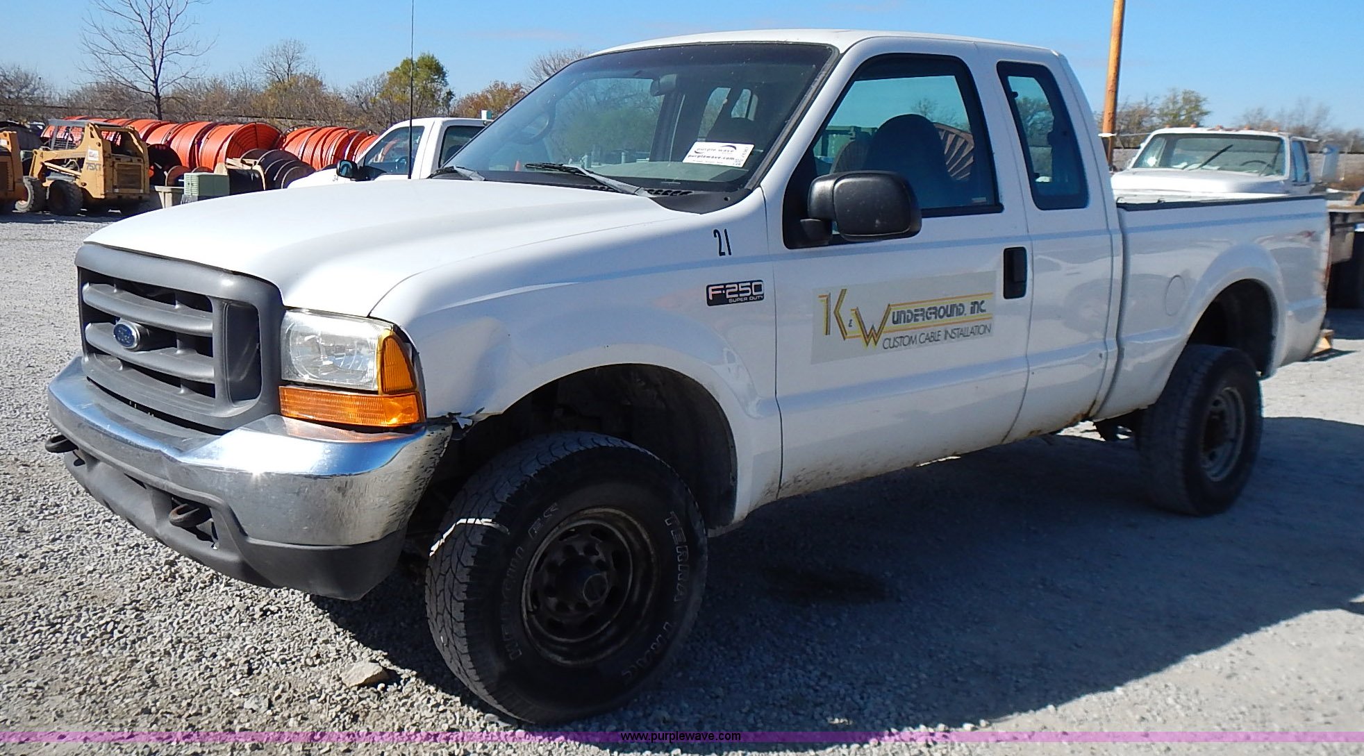 Purple Wave is selling a used 3/4 or 1 Ton Pickup or Van in Kansas. This item is a 1999 Ford F250 Super Duty SuperCab pickup truck with the following: 256,479 miles on odometer, 5.4L V8 SOHC 16V gas engine, Automatic transmission, Four wheel drive, Heat, AM/FM, Manual windows and locks, Cloth interior, Front tow hooks, Duraliner bed liner, Receiver hitch, Trailer wiring, 265/75R16 tires, Interior/exterior cosmetic damage, Dents, Scratches, Rust, Front bumper damage, Headliner needs repaired, Unit# 21
