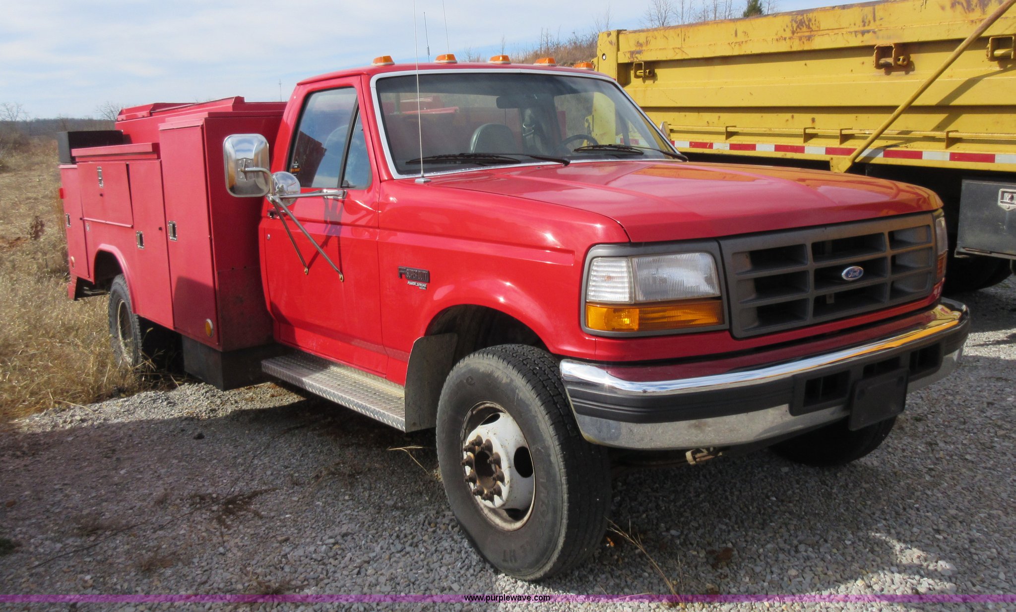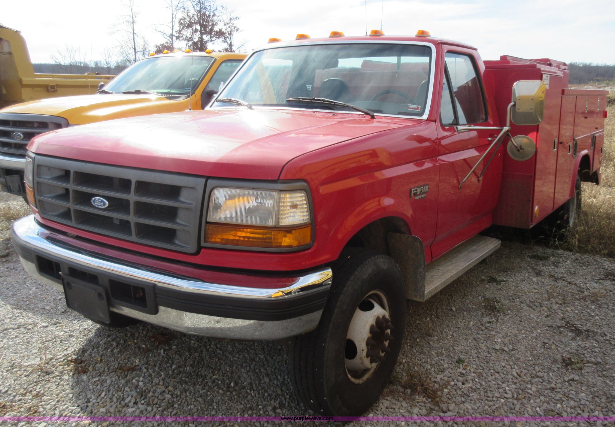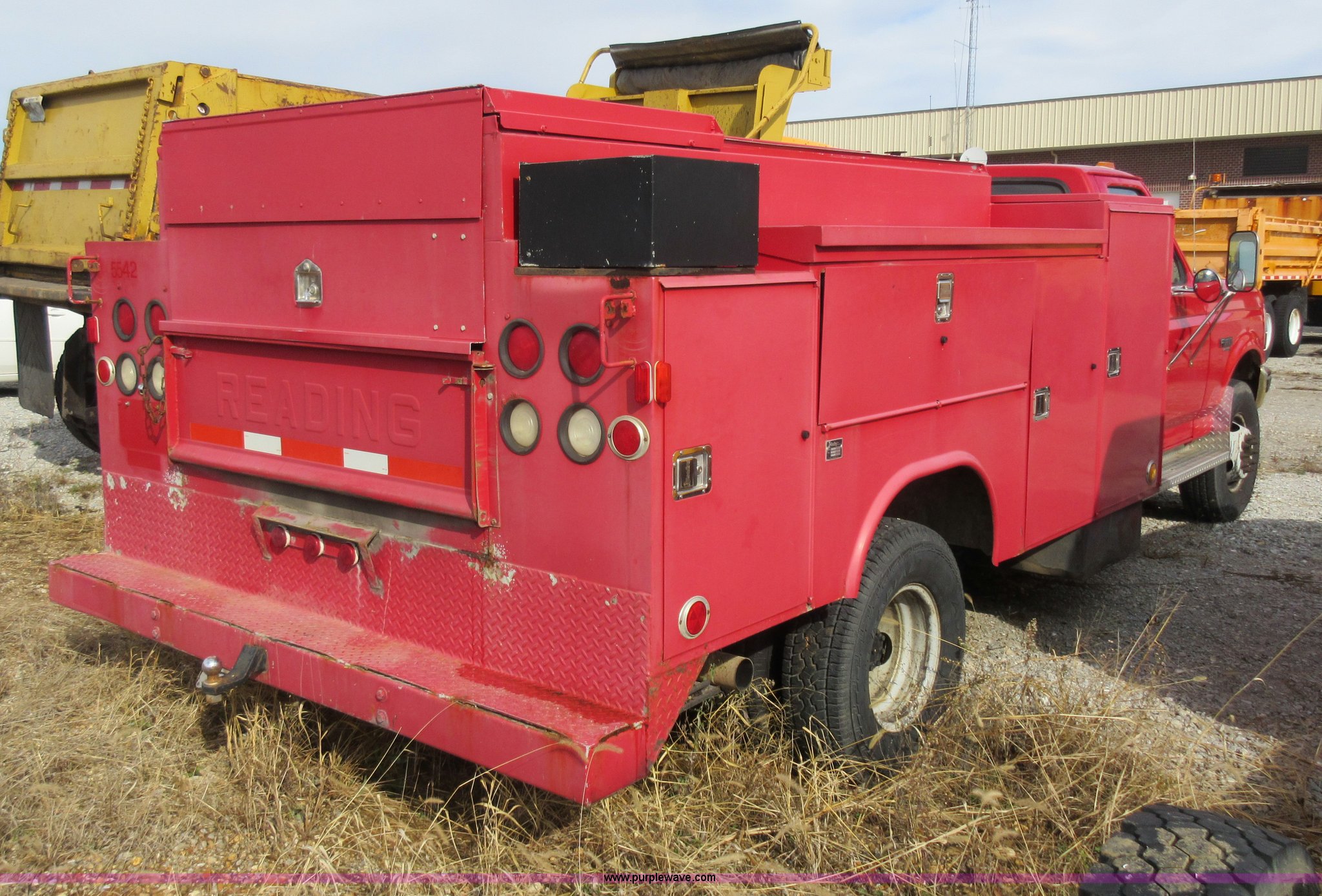 Purple Wave is selling a used Service Truck in Missouri. This item is a 1996 Ford F450 Super Duty utility truck with the following: 176,675 miles on odometer, 7.3L V8 OHV 16V diesel engine, Automatic transmission, AC and heat, AM/FM, Manual windows and locks, Vinyl interior, Reading 132BADW utility bed, Receiver hitch, 161" wheelbase, 235/85R16 tires