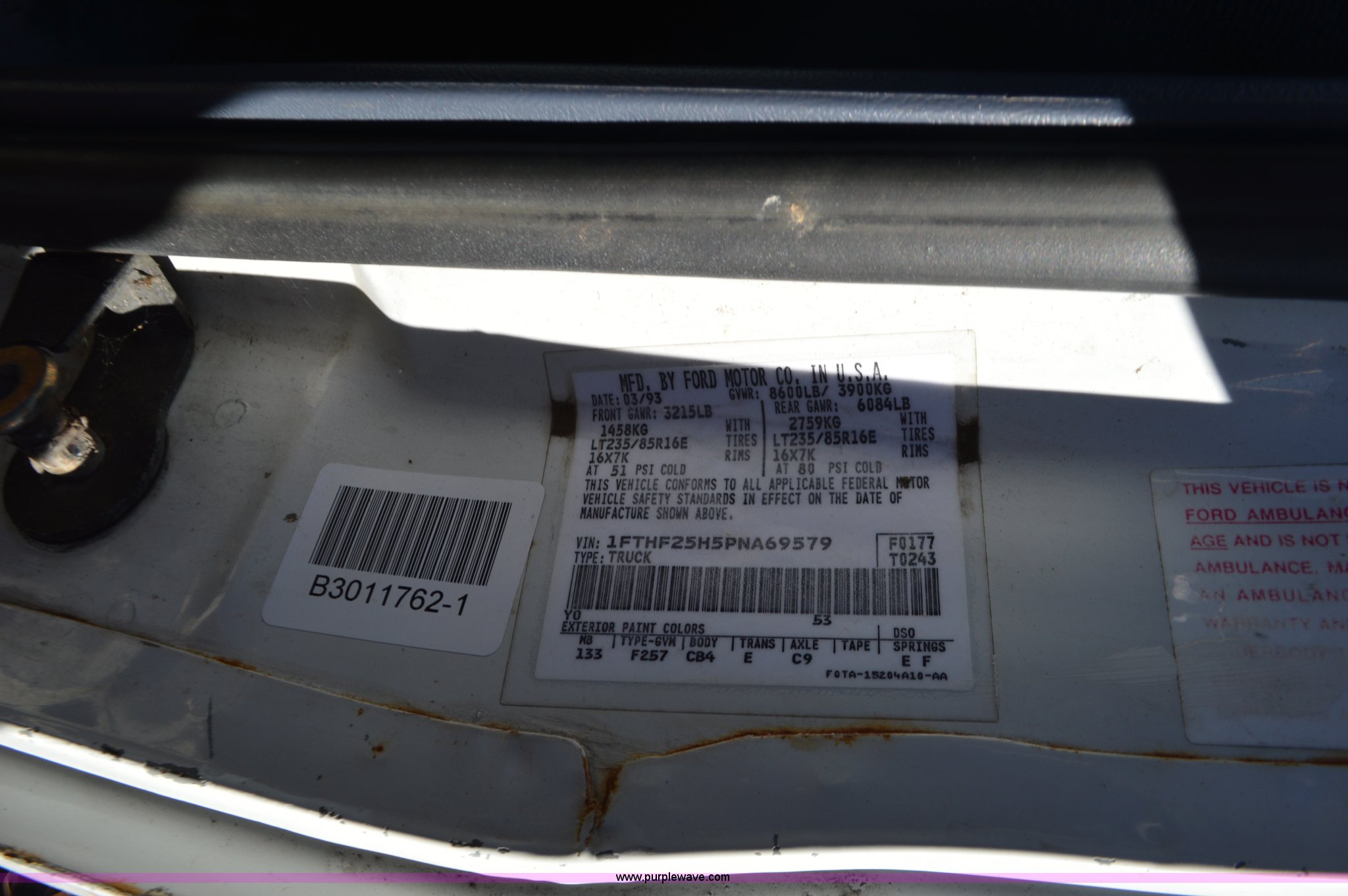Purple Wave is selling a used 3/4 or 1 Ton Pickup or Van in Missouri. This item is a 1993 Ford F250 pickup truck with the following: Unknown miles on odometer, 5.8L V8 OHV 16V gas engine, Manual transmission, AC and heat, Manual windows and locks, Cloth interior, 265/75R16 tires, Unknown operating condition