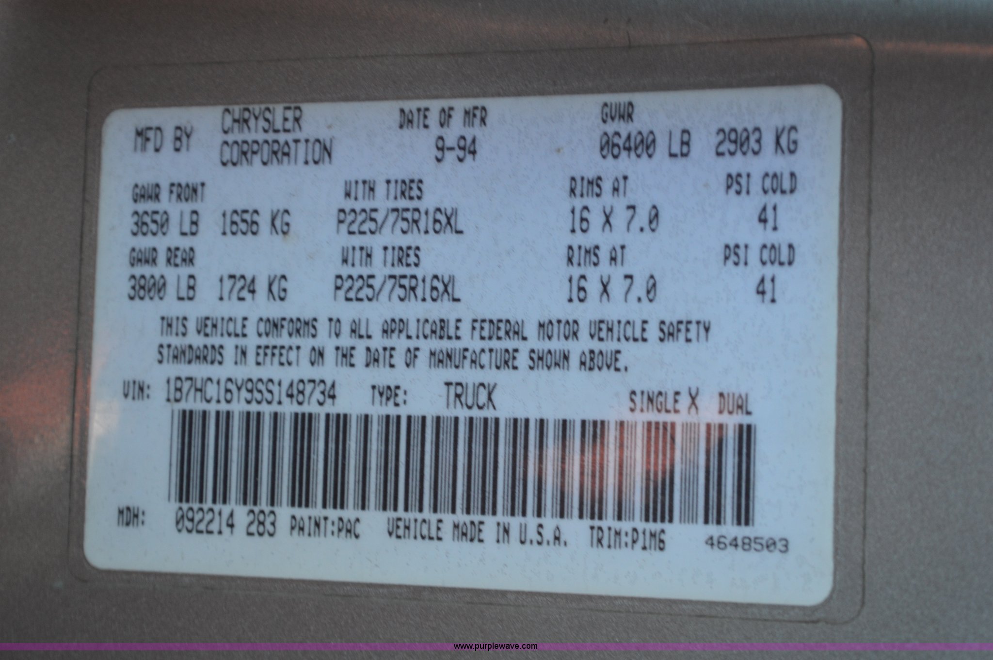 Purple Wave is selling a used 1/2 Ton Pickup or Van in Missouri. This item is a 1995 Dodge Ram 1500 pickup truck with the following: 206,179 miles on odometer, 5.2L V8 OHV 16V gas engine, Automatic transmission, AC and heat, Power windows and locks, Cloth interior, 225/60R16 front tires, 235/85R16 rear tires, Unknown operating condition