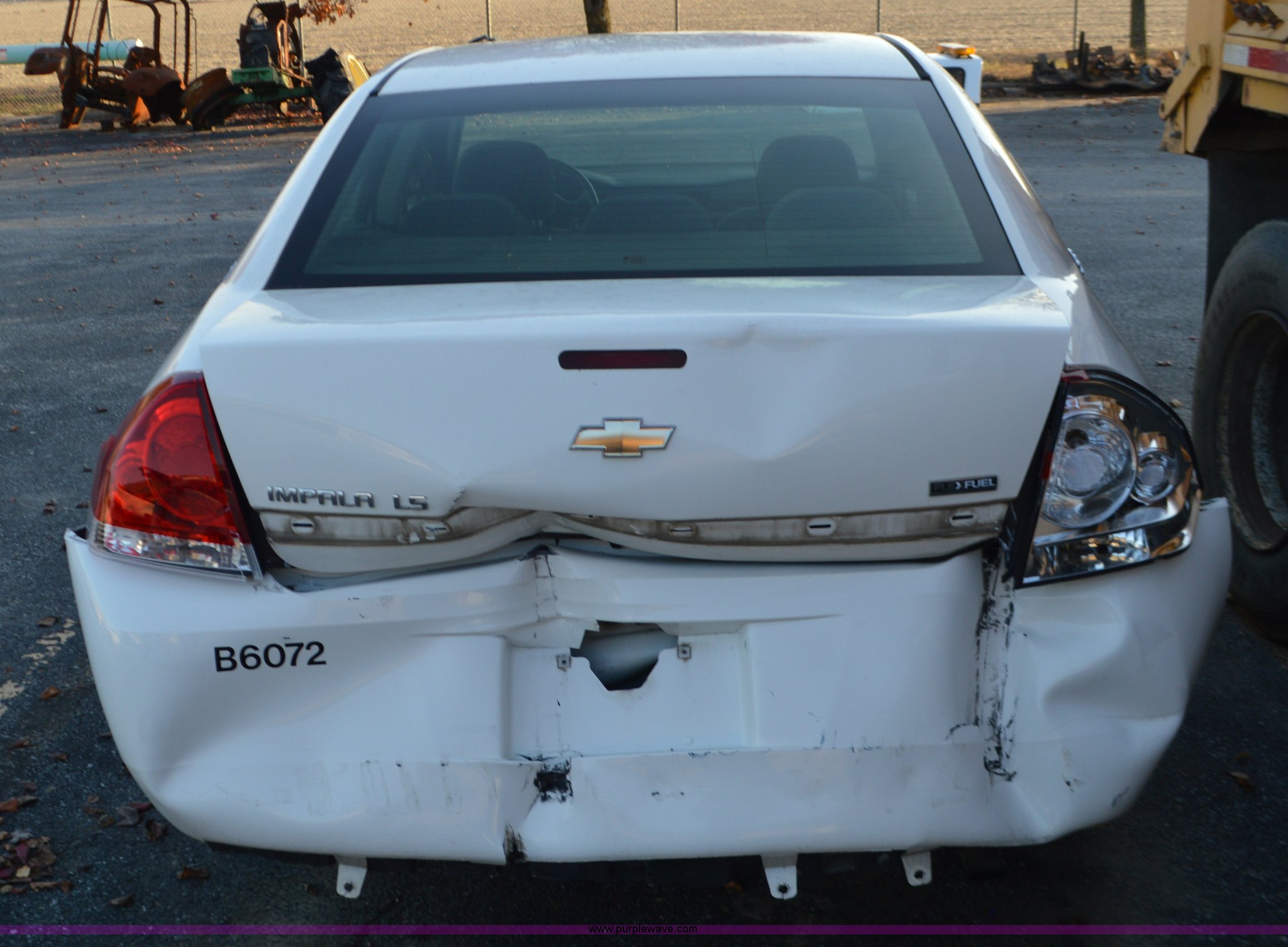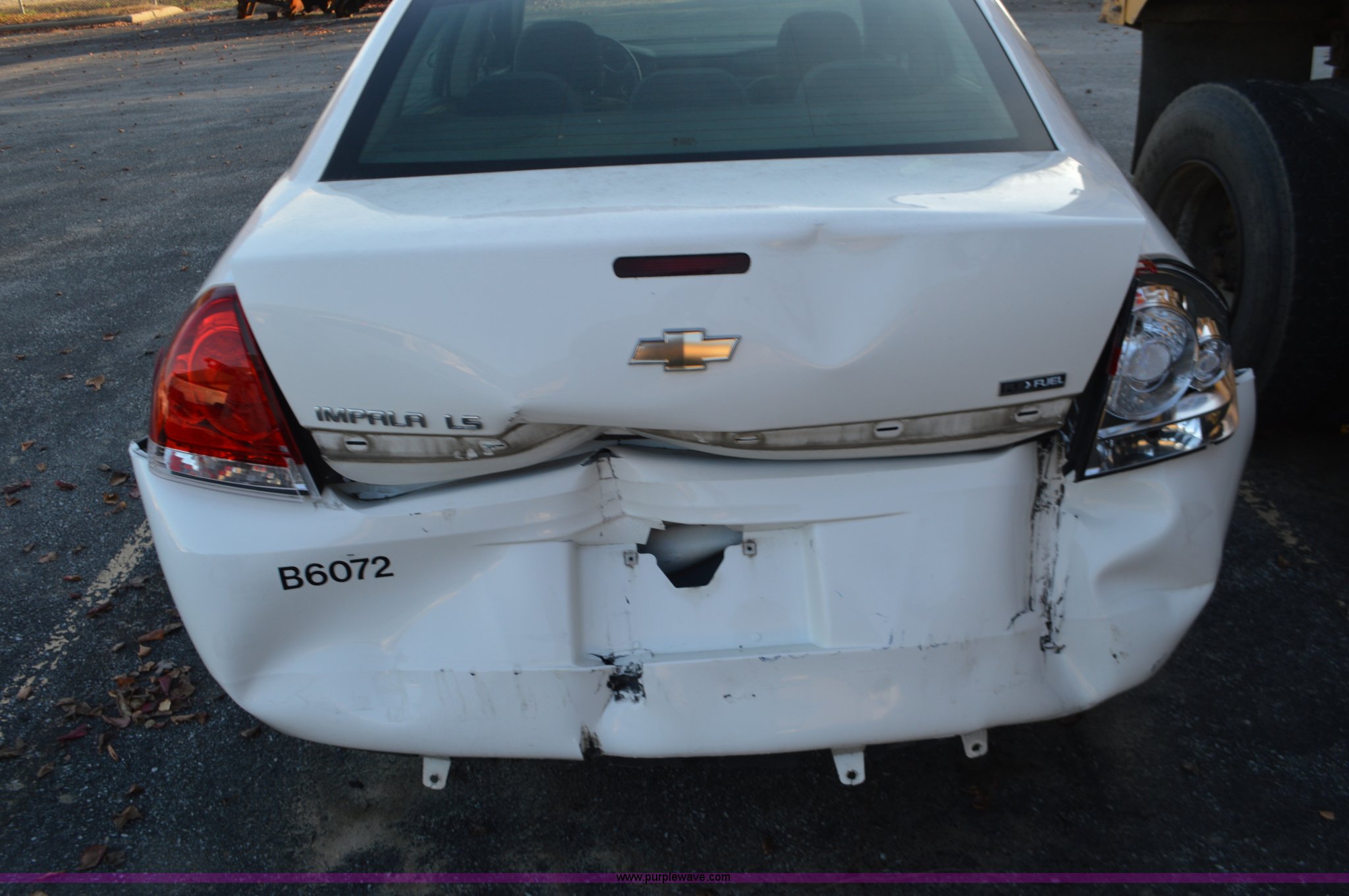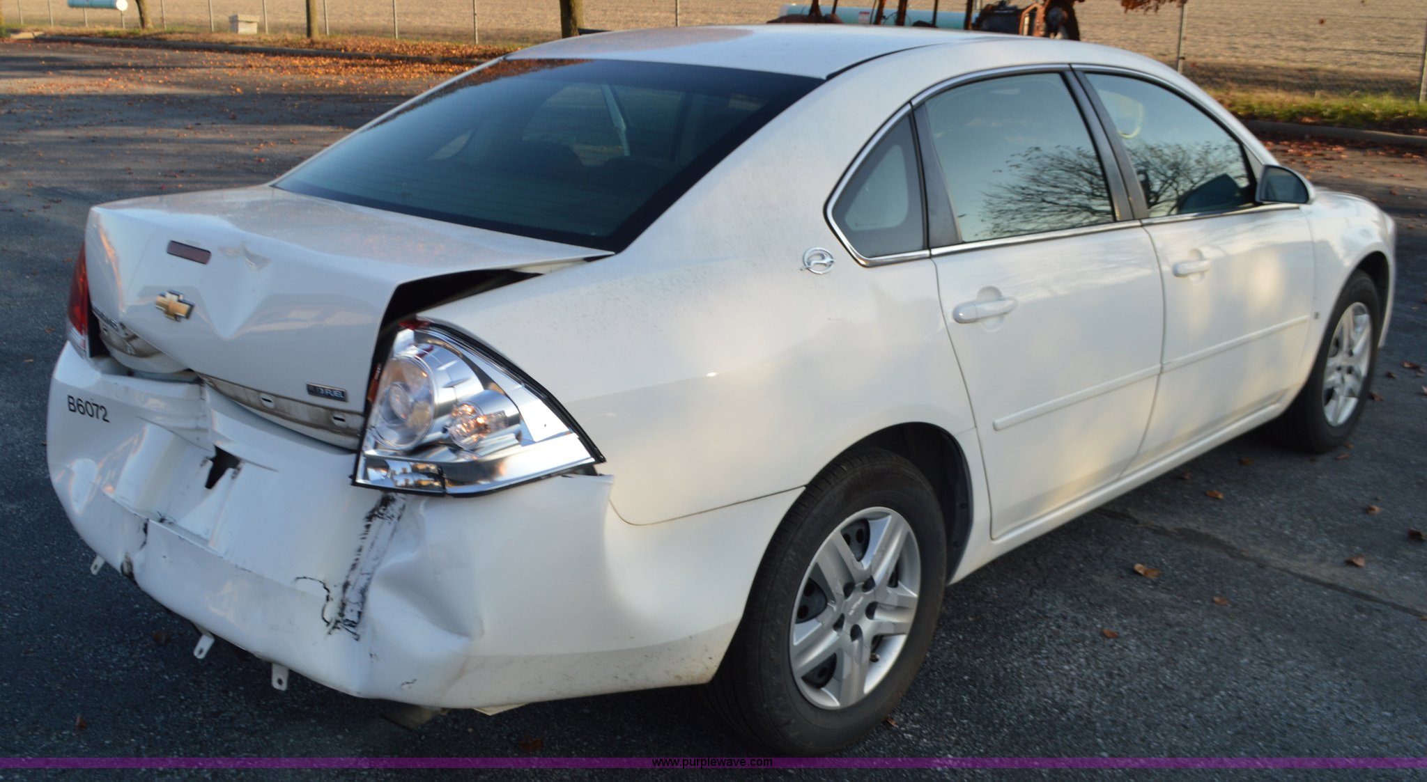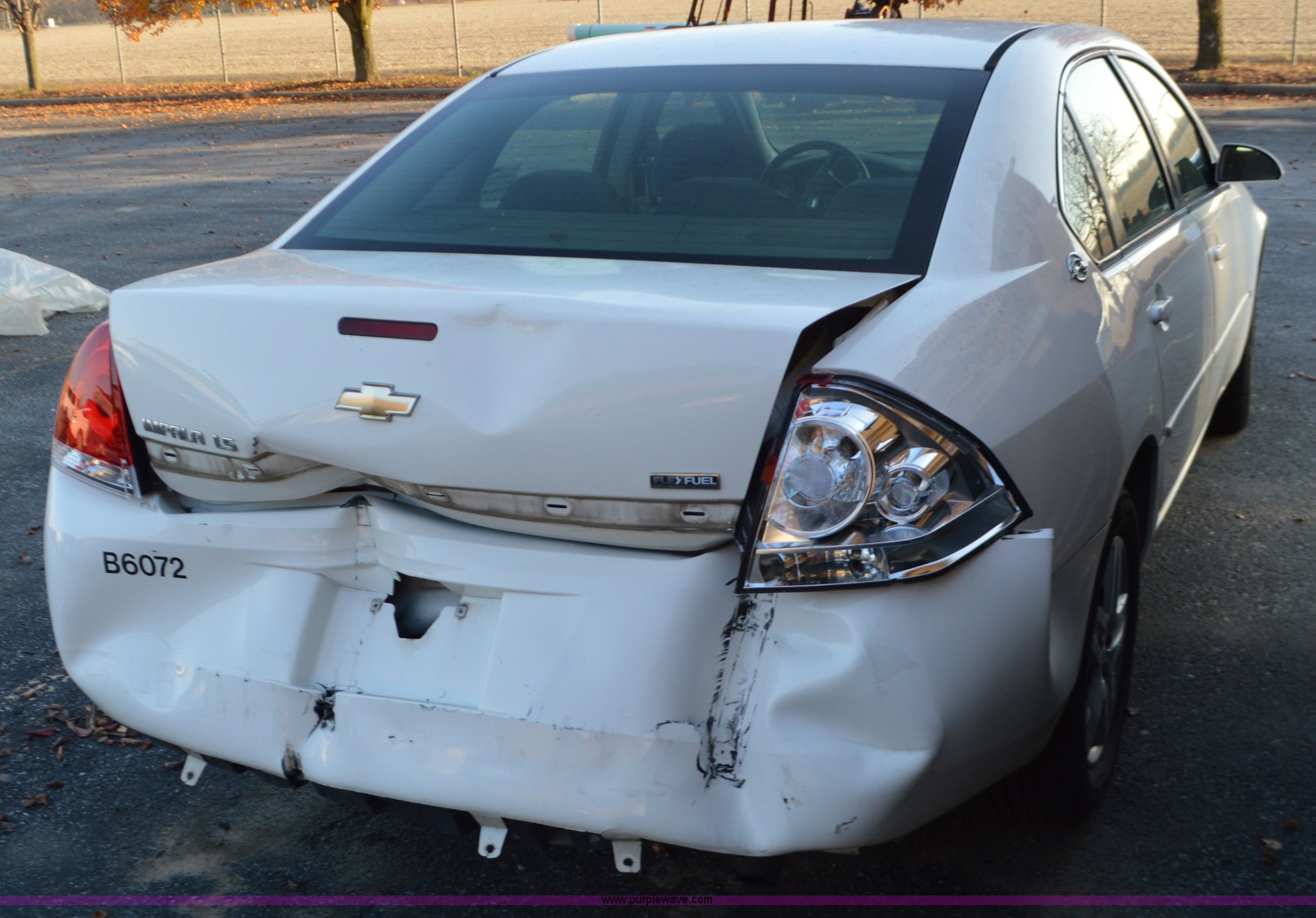 Purple Wave is selling a used Passenger Vehicle in Missouri. This item is a 2007 Chevrolet Impala with the following: 159,406 miles on odometer, 3.5L V6 OHV 16V FFV gas engine, Automatic transmission, AC and heat, Tilt, Cruise, AM/FM, Power locks and mirrors, Cloth interior, 225/60R16 tires, Rear end damage, Unit# B6072