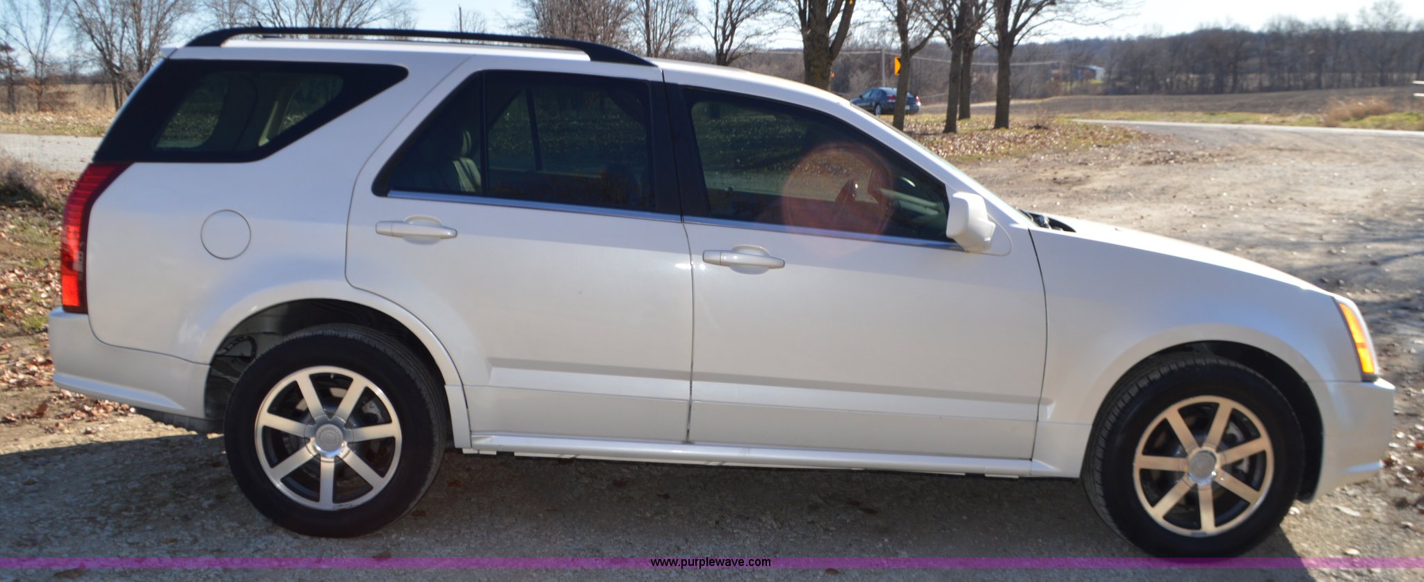 Purple Wave is selling a used Passenger Vehicle in Missouri. This item is a 2004 Cadillac SRX SUV with the following: 56,052 miles on odometer, 4.6L V8 DOHC 32V gas engine, Automatic transmission, All wheel drive, AC and heat, Tilt, Cruise, AM/FM/CD, Power windows, locks, mirrors, and seats, Leather interior, 255/55R18 tires, Traction control light on