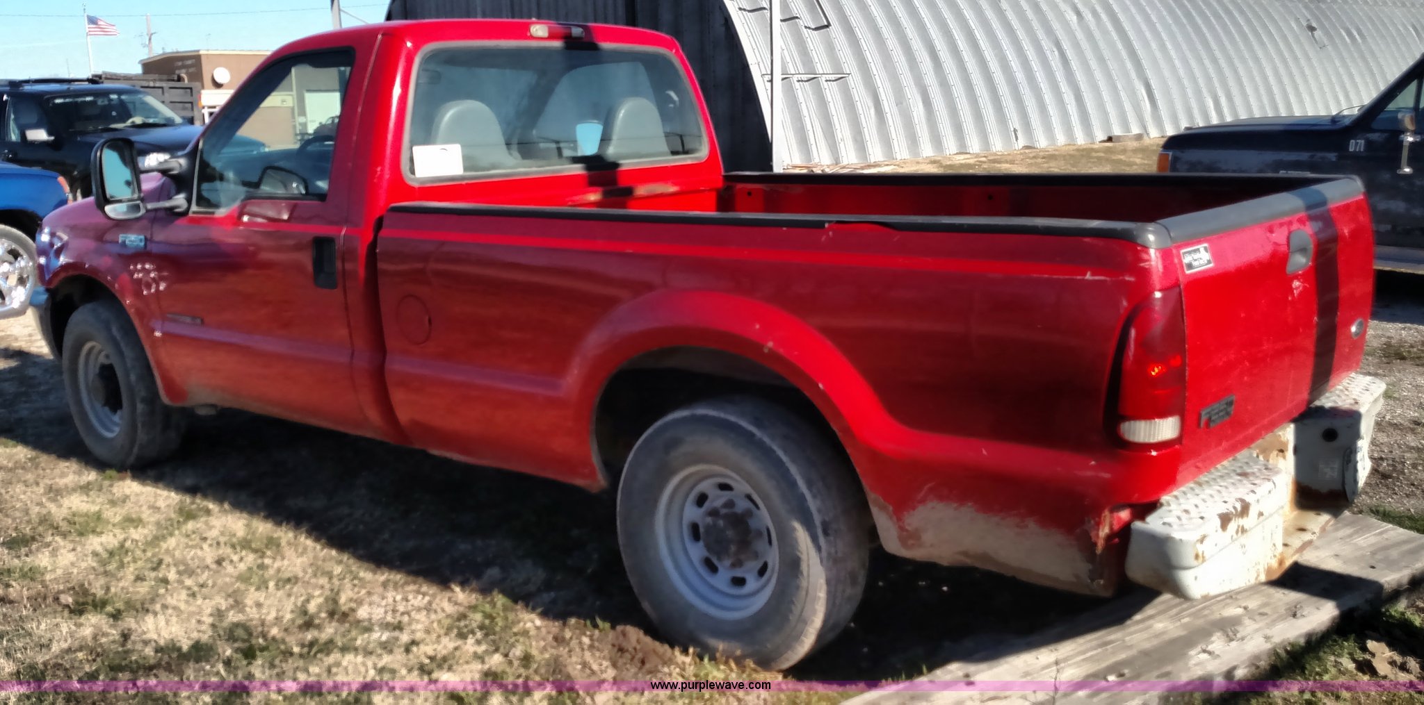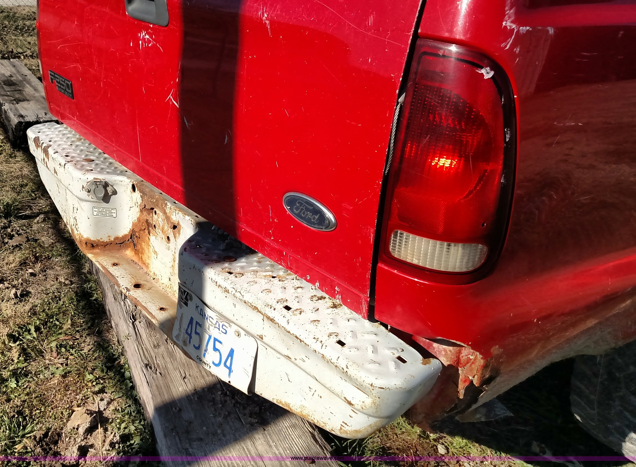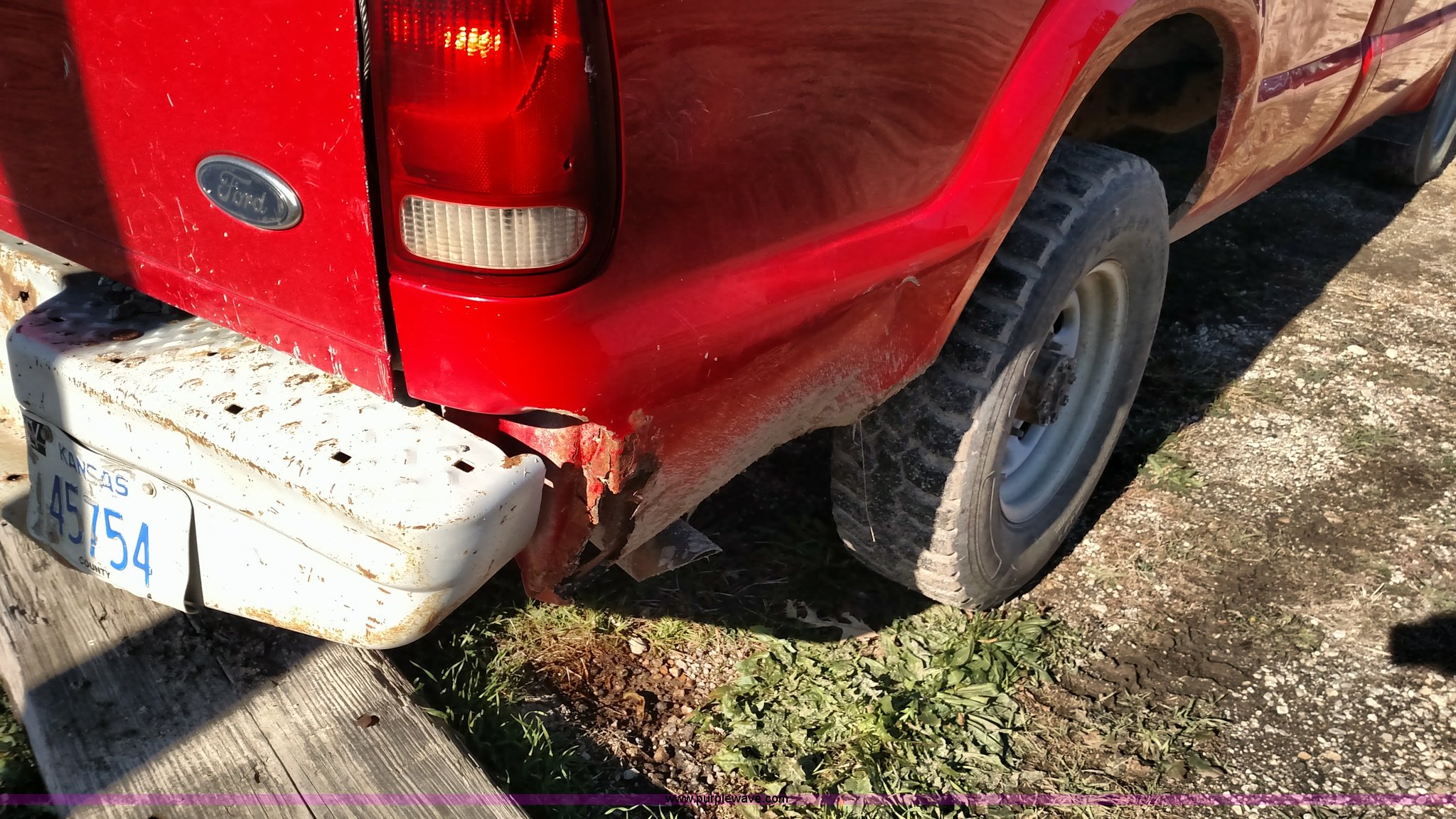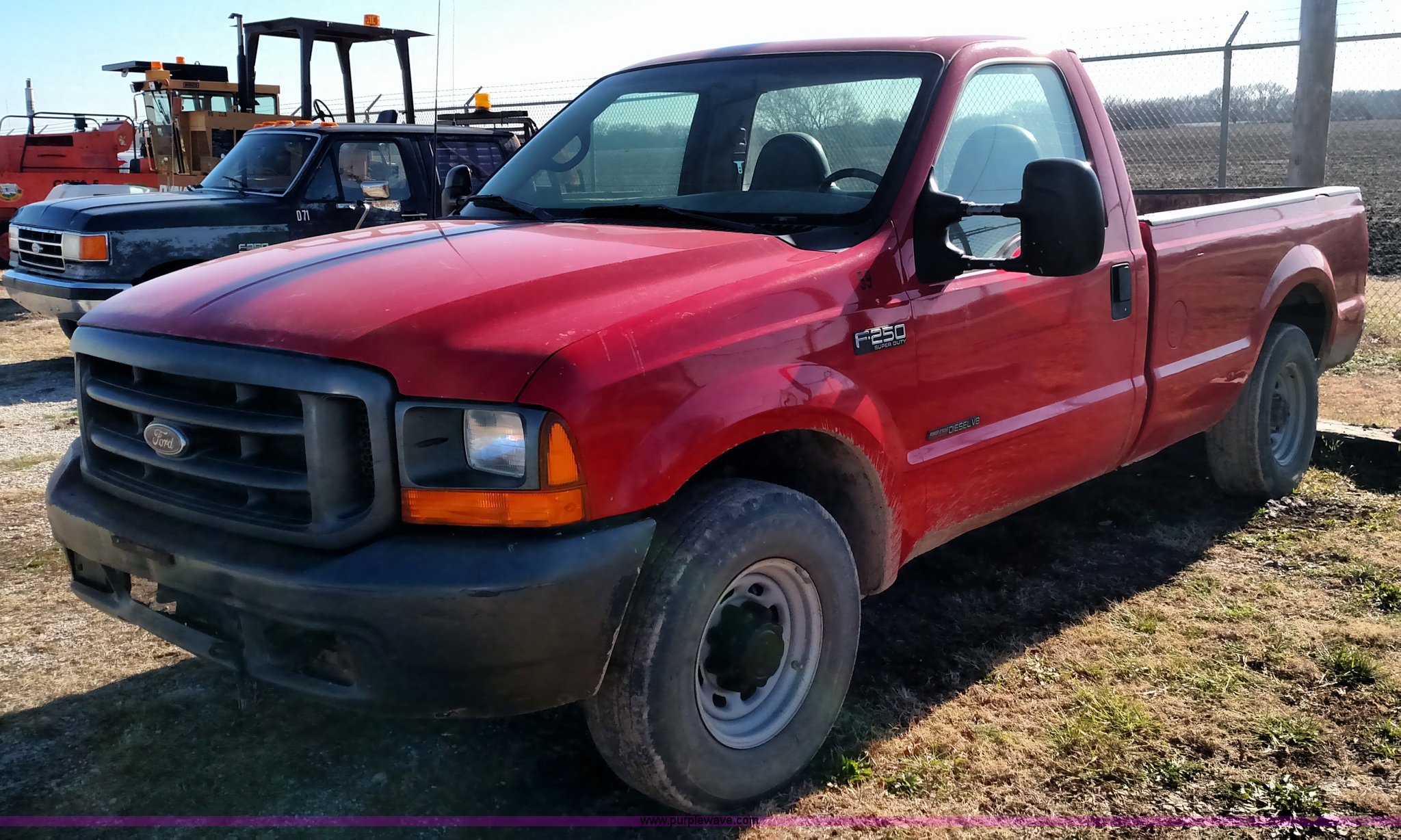 Purple Wave is selling a used 3/4 or 1 Ton Pickup or Van in Kansas. This item is a 1999 Ford F250 Super Duty pickup truck with the following: 223,645 miles on odometer, 7.3L V8 OHV 16V diesel engine, Automatic transmission, Heat, AM/FM, Manual windows and locks, Vinyl interior, Long bed, 235/85R16 tires, Interior/exterior cosmetic damage, Cracked windshield