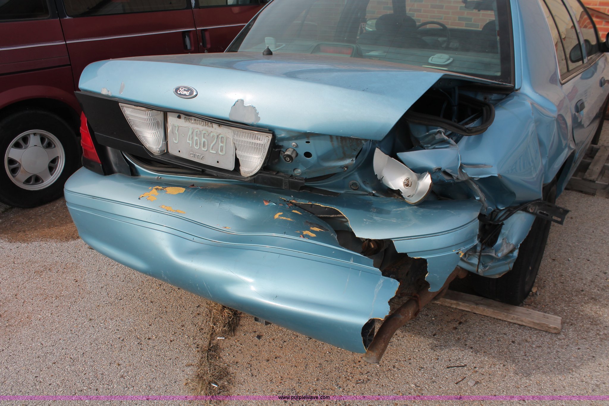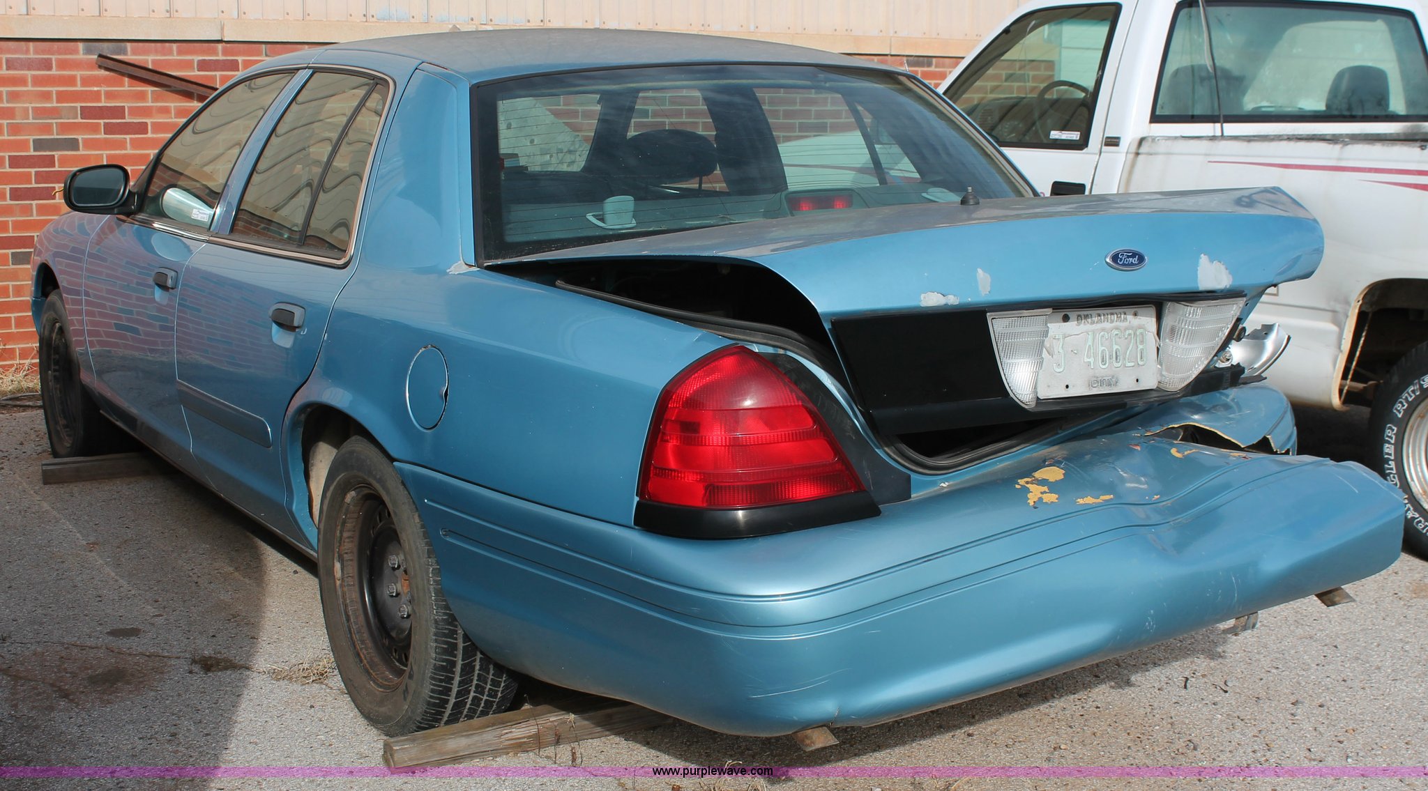 Purple Wave is selling a used Passenger Vehicle in Oklahoma. This item is a 2000 Ford Crown Victoria Police Interceptor with the following: 117,720 miles on odometer, 4.6L V8 SOHC 16V gas engine, Automatic transmission, AC and heat, Tilt, Power windows, locks, mirrors, and seat, Cloth interior, P225/60R16 tires, Exterior cosmetic damage, Unknown operating condition