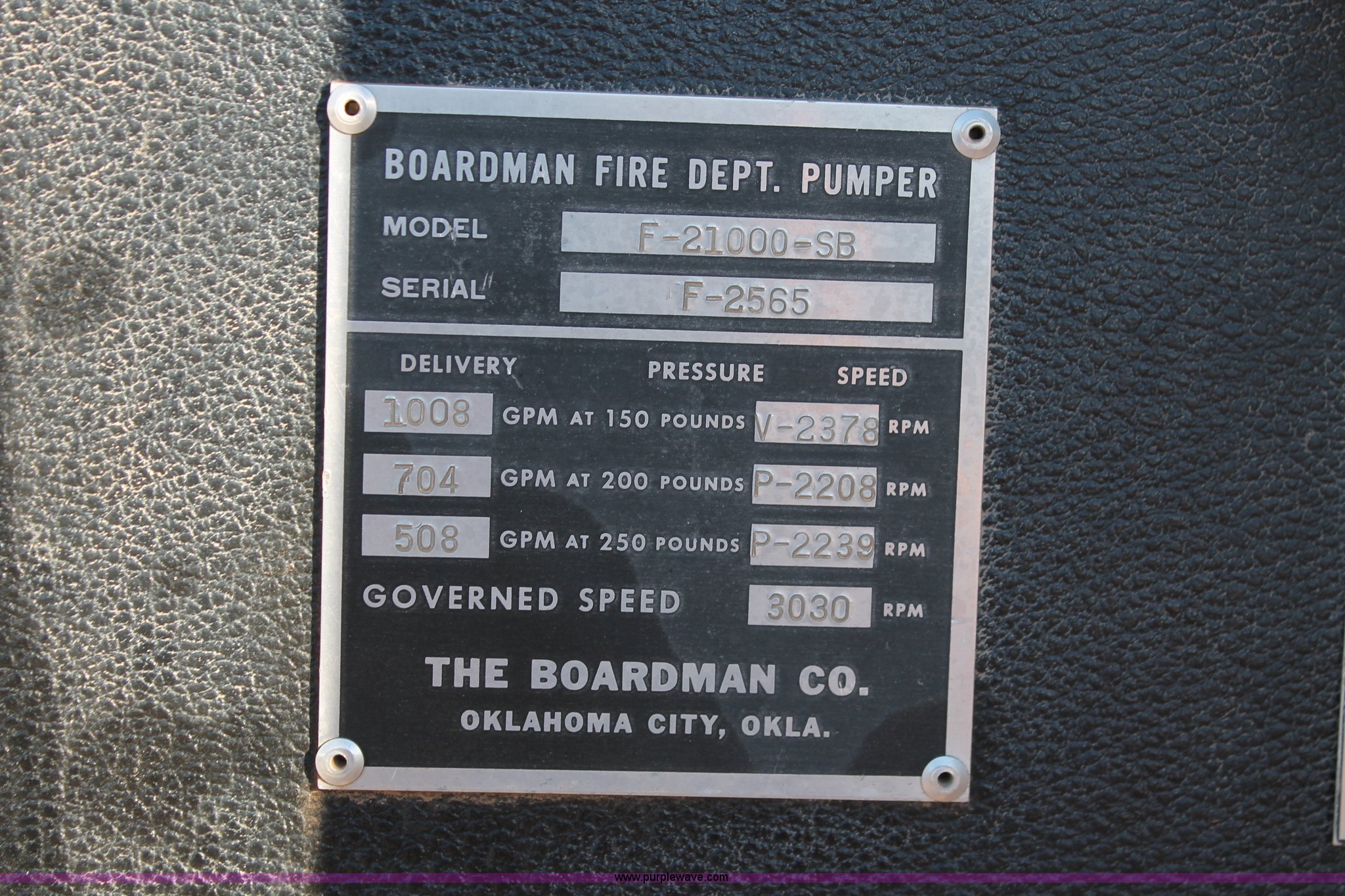 Boardman F-21000-SB pumper truck bed has sold in El Reno, Oklahoma for $605. Item AO9429 sold on January 12th, 2016.