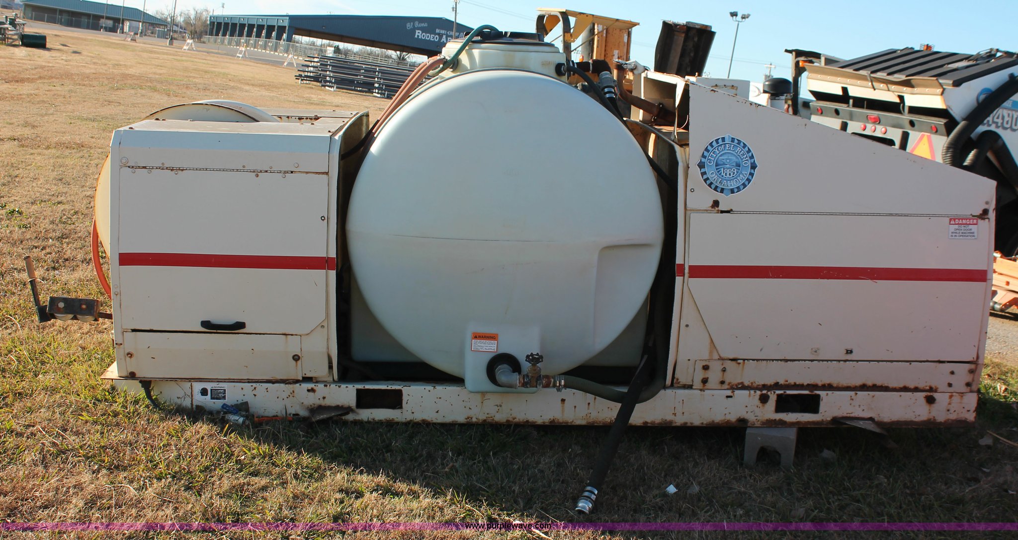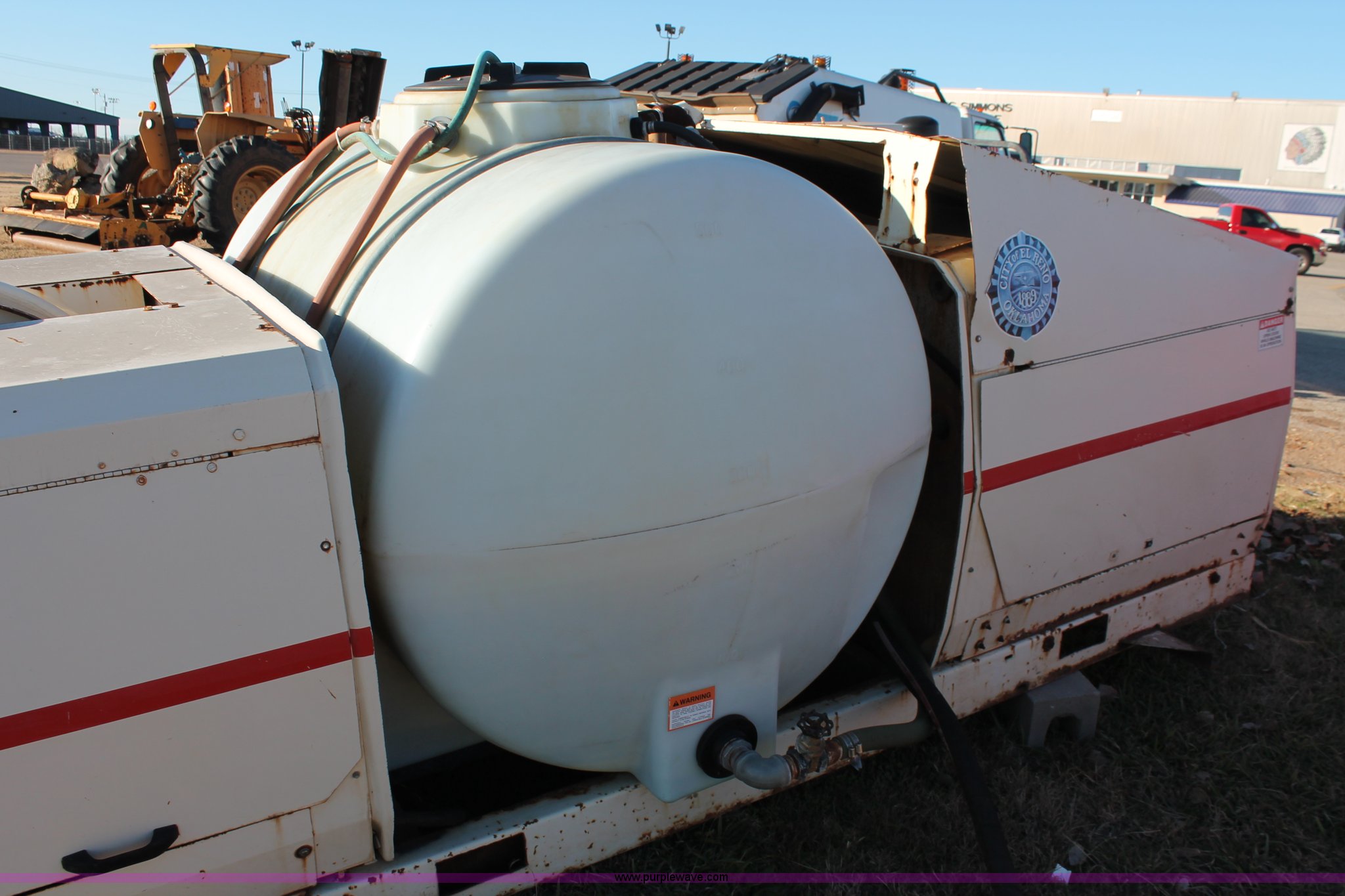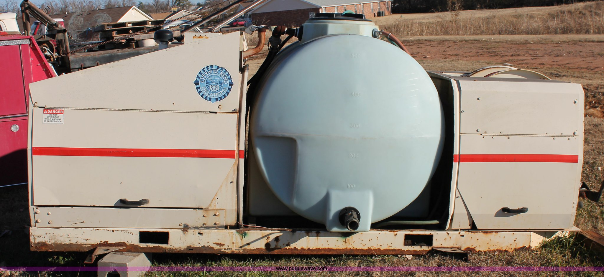 John Bean SewerJet 600 sewer jetter. Continent T127 four cylinder gas engine, 12'L x 5'W, 500 gallon poly tank, Hose and reel nozzle assembly, 2" inlet plumbing, 35 gpm, 2,000 psi, Operational when recently removed from service, Serial JB02846NK. City of El Reno. 100 S Country Club Rd. El Reno, OK 73036