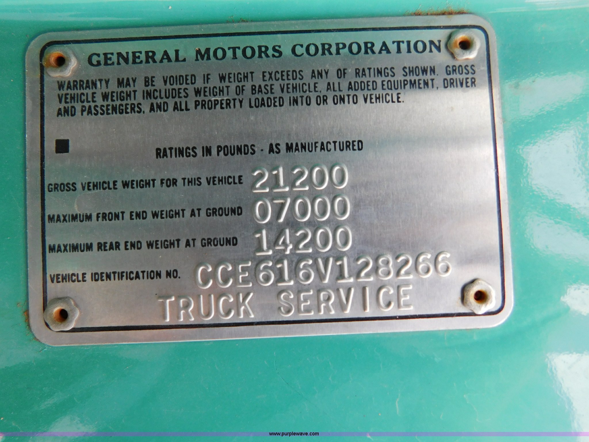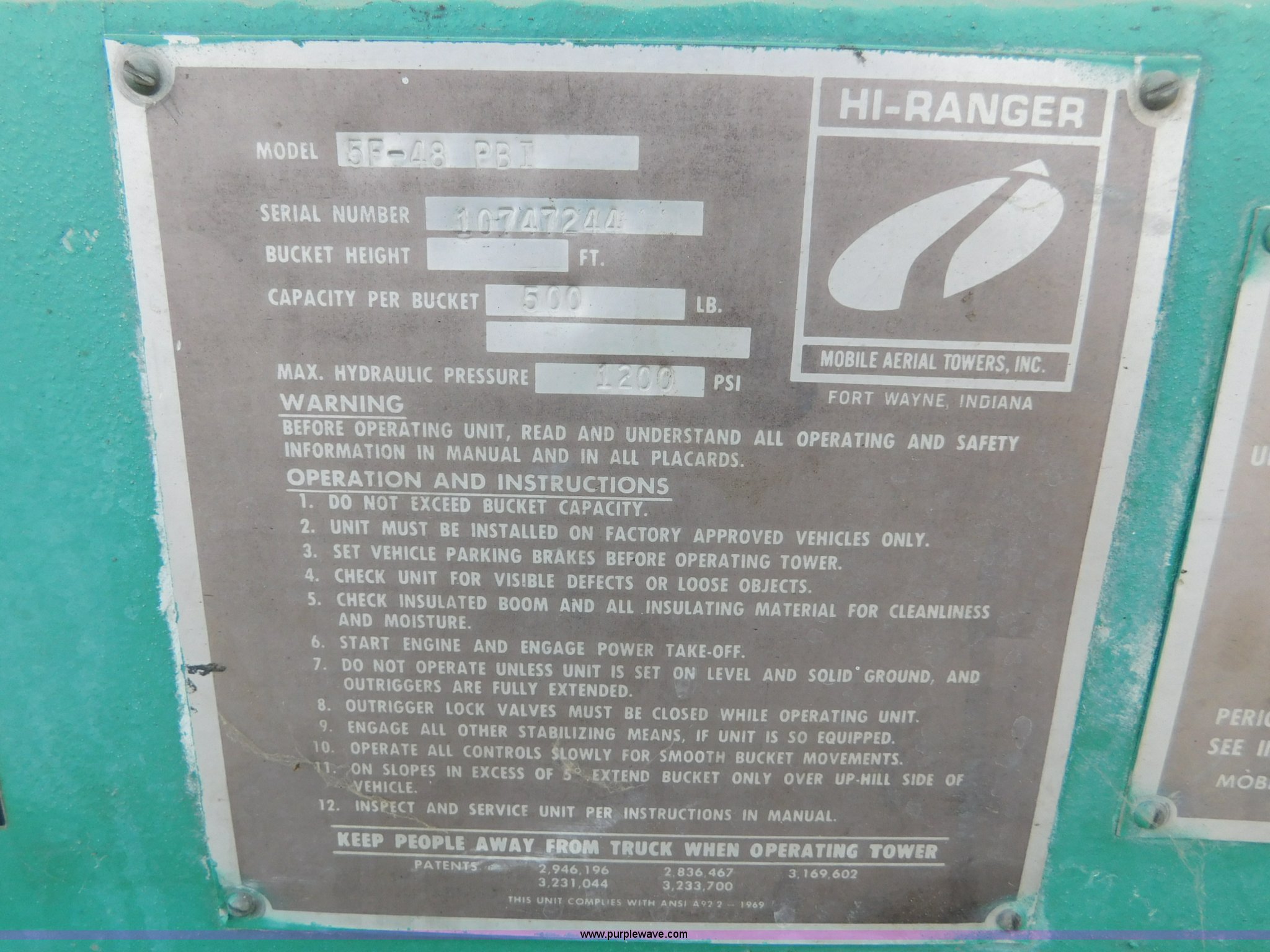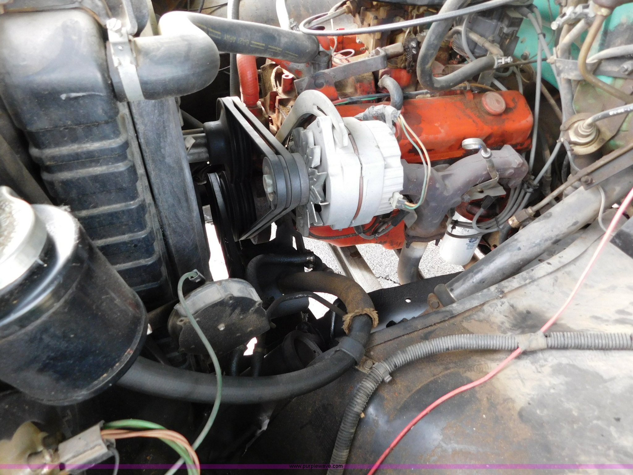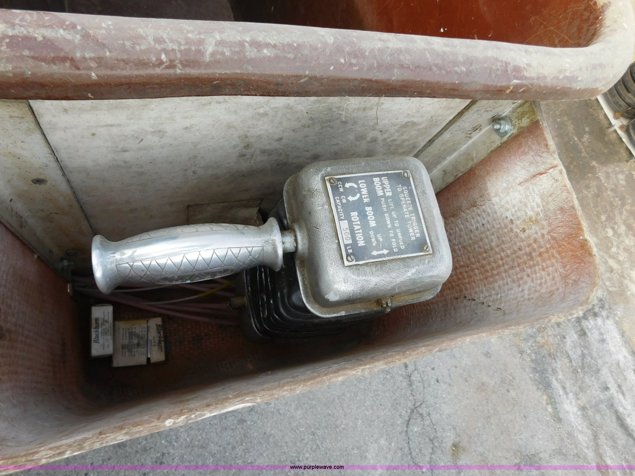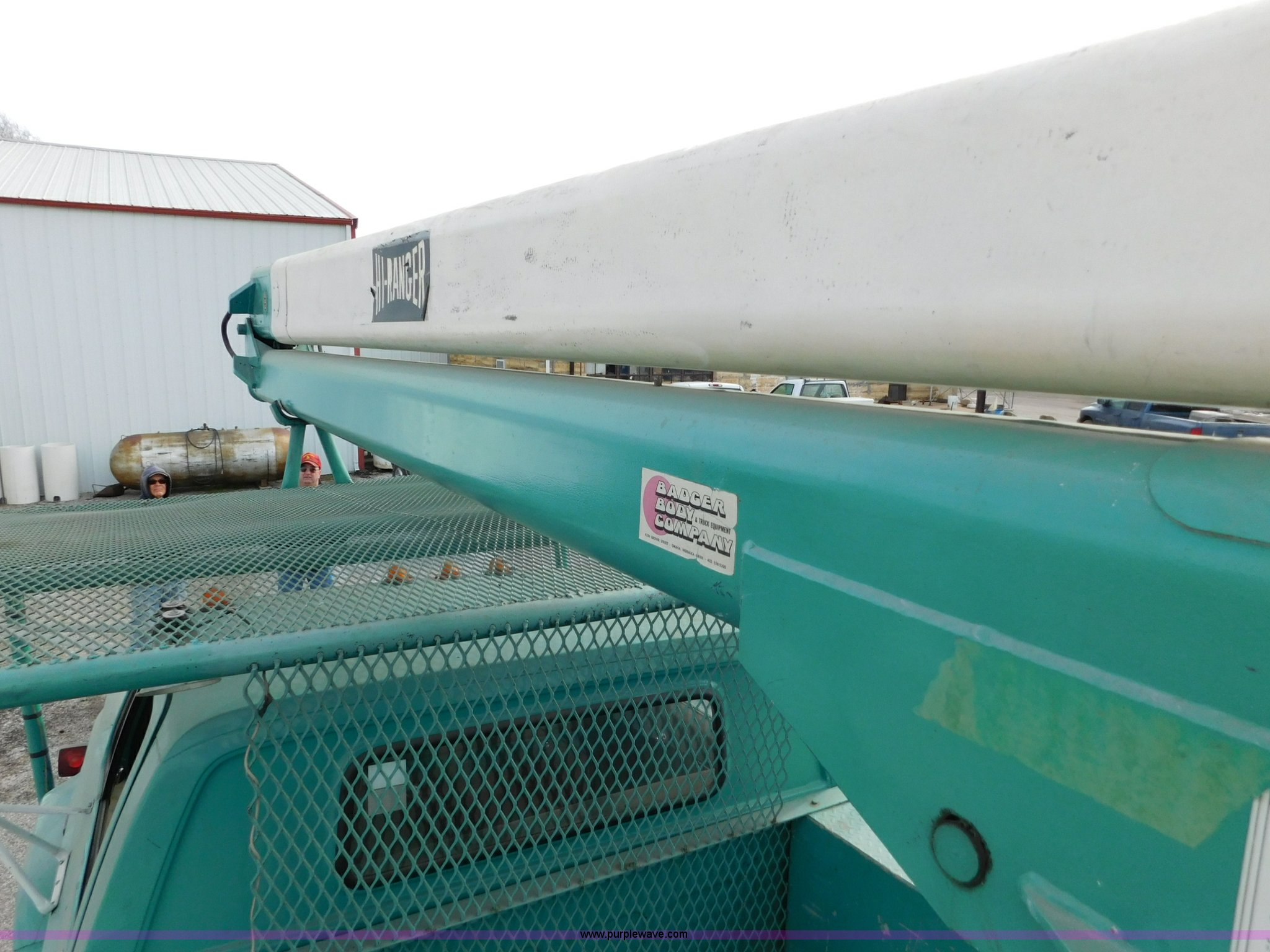Purple Wave is selling a used Bucket Truck in Kansas. This item is a 1976 Chevrolet C60 bucket truck with the following: 10,045 miles on odometer, 3,290 hours on meter, Eight cylinder gas engine, Four speed manual transmission with hi/low, Heat, Suspension seat, Front tow hooks, PTO, 15'L service bed, Shelving, Work lights, Hi-Ranger 5F-48PBI boom, 500 lbs max lift capacity, Man basket, 53' max lift height, Ground boom controls, Boom rotation, (2) outriggers, Manual, Serial 10747244, Spring suspension, Hydraulic brakes, 174" wheelbase, Uniroyal 8.25-20 tires, GVWR 21,200 lbs, Hydraulic and air lines have been replaced on boom, Lift cable on boom needs replaced, Front end damage, Engine oil leak, Broken front glass, Unit will need to pass inspection prior to being put into service