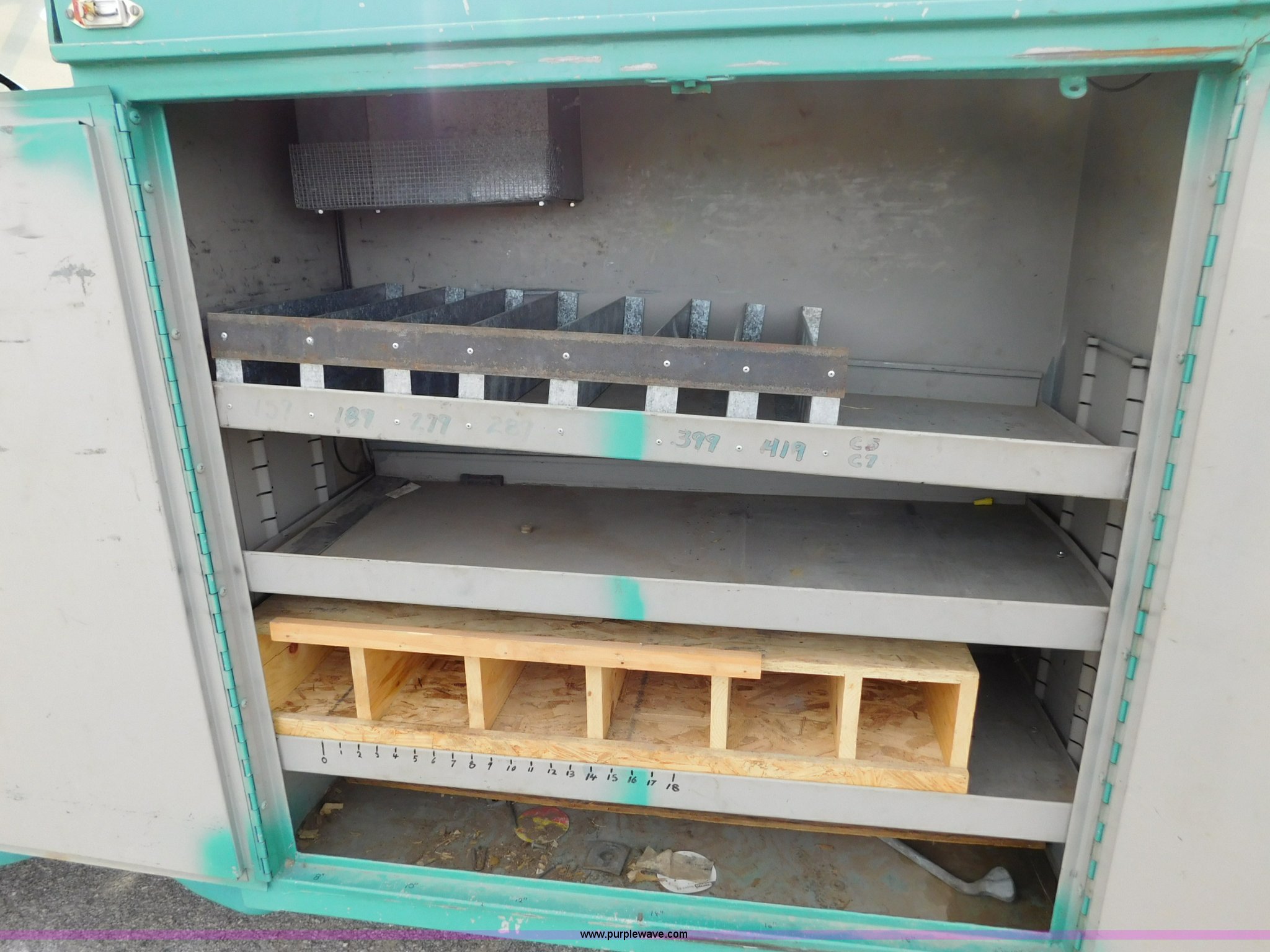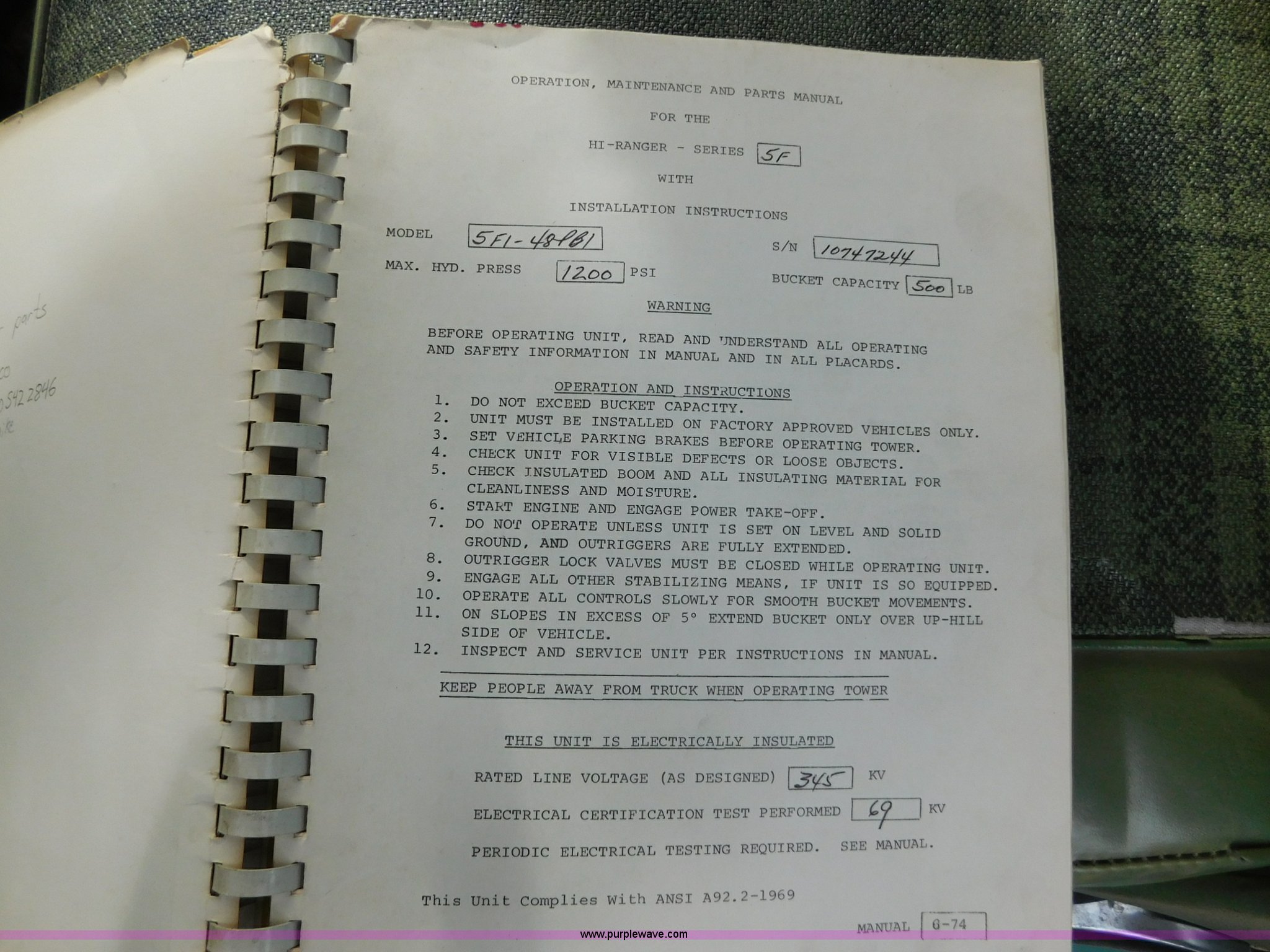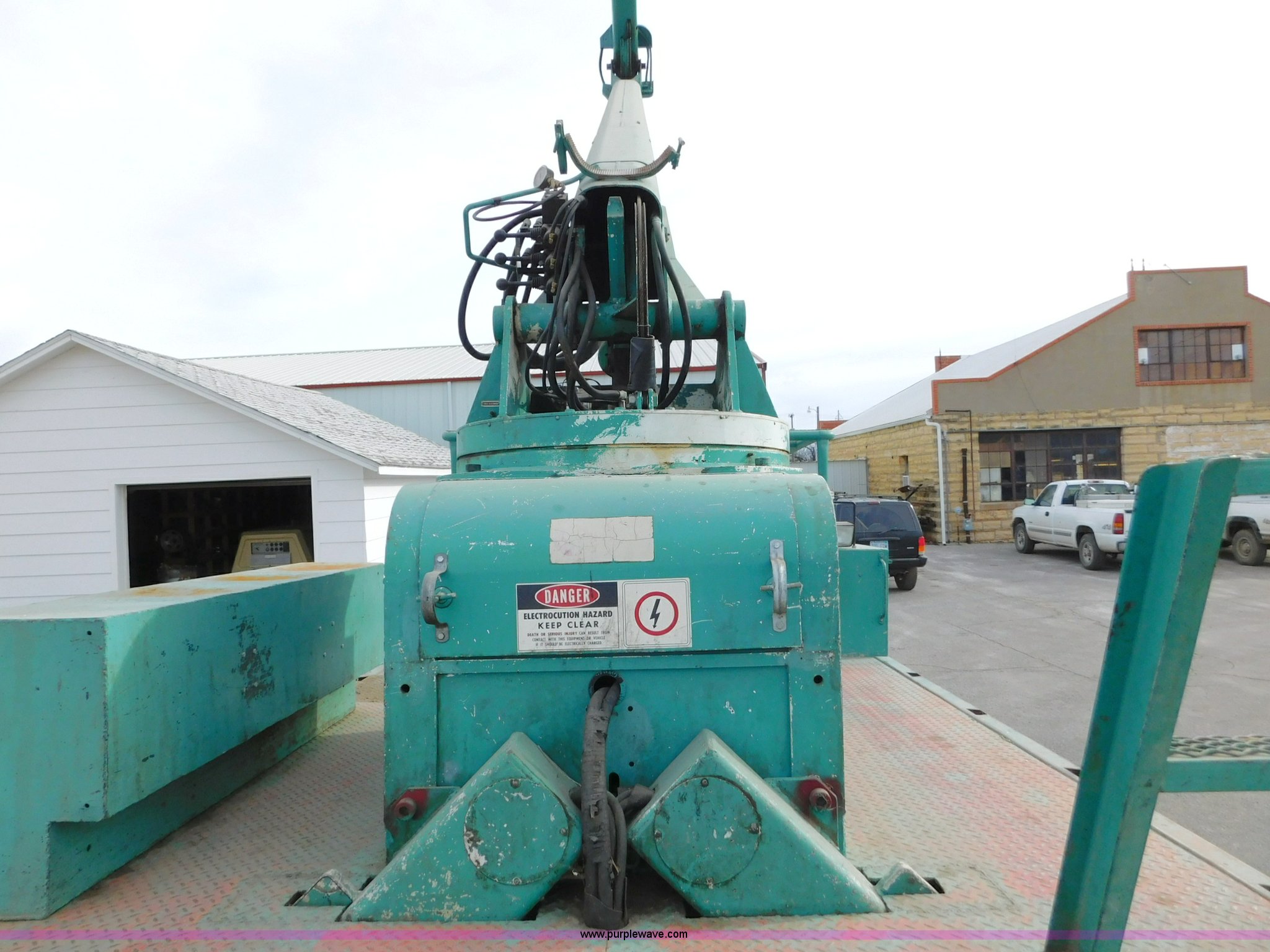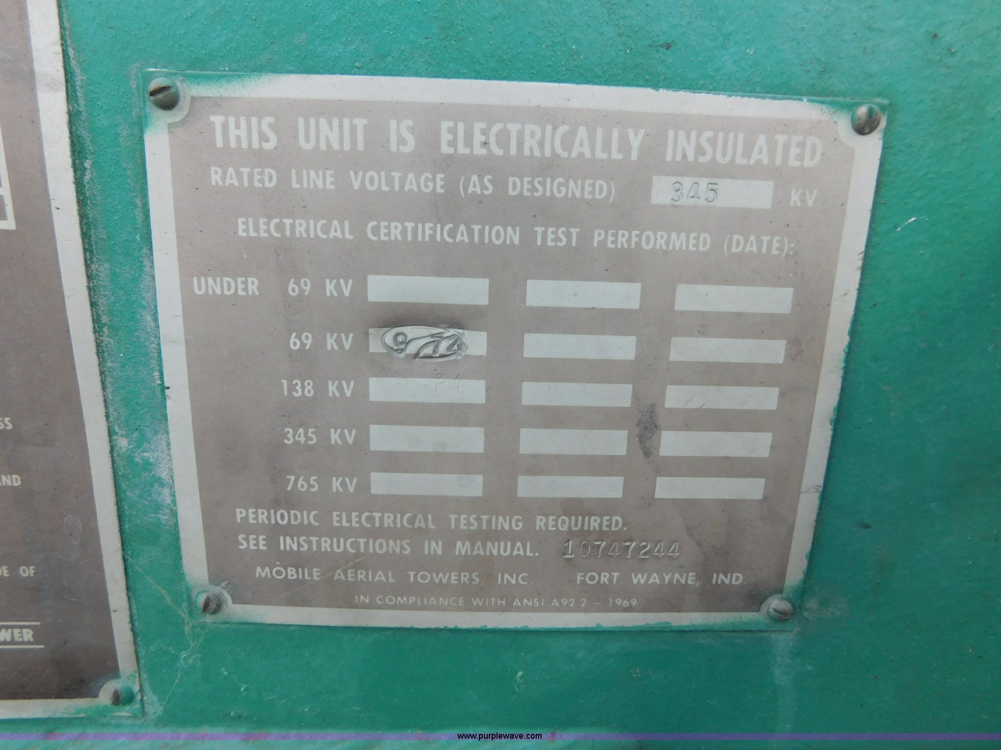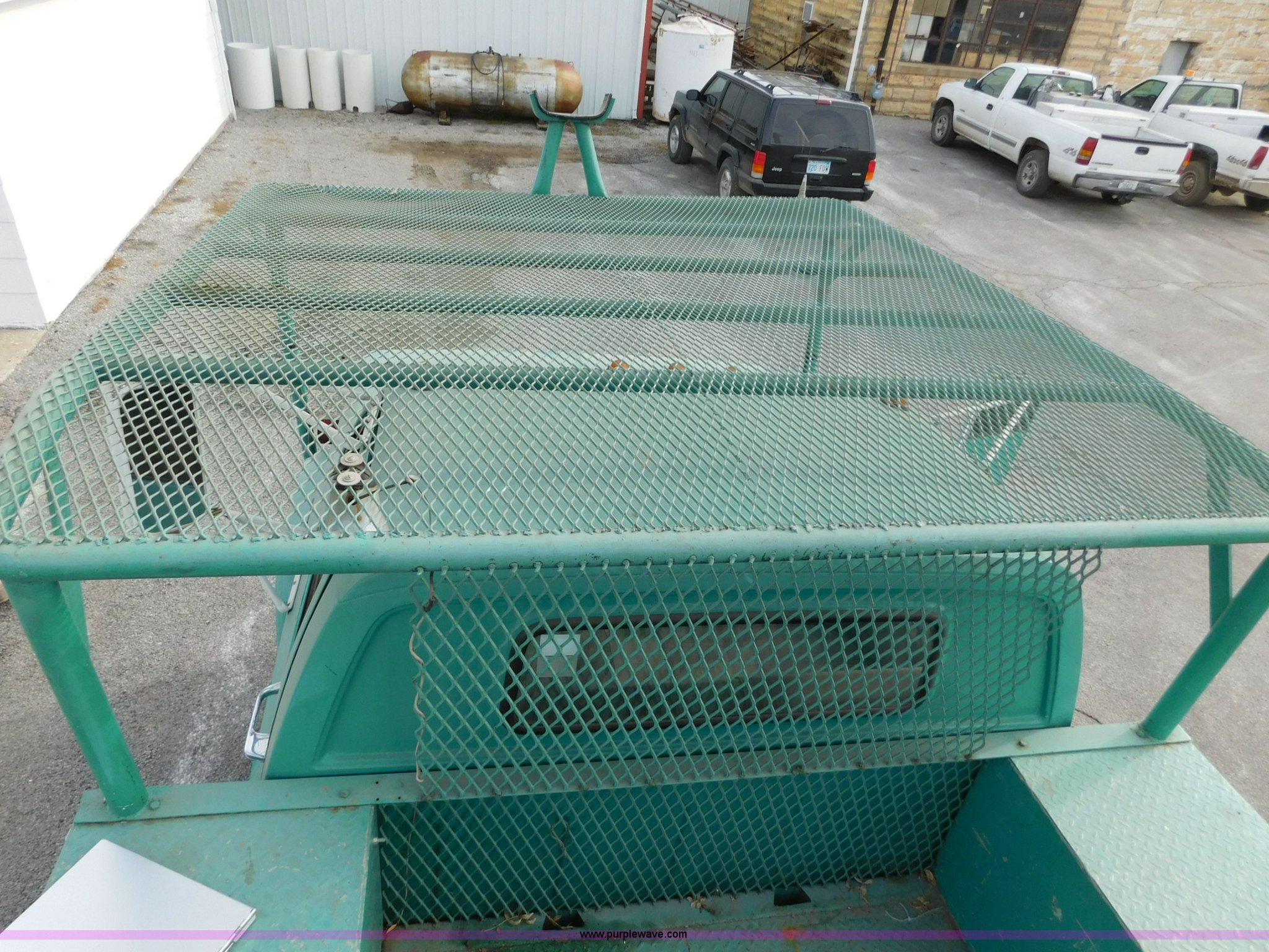 Purple Wave is selling a used Bucket Truck in Kansas. This item is a 1976 Chevrolet C60 bucket truck with the following: 10,045 miles on odometer, 3,290 hours on meter, Eight cylinder gas engine, Four speed manual transmission with hi/low, Heat, Suspension seat, Front tow hooks, PTO, 15'L service bed, Shelving, Work lights, Hi-Ranger 5F-48PBI boom, 500 lbs max lift capacity, Man basket, 53' max lift height, Ground boom controls, Boom rotation, (2) outriggers, Manual, Serial 10747244, Spring suspension, Hydraulic brakes, 174" wheelbase, Uniroyal 8.25-20 tires, GVWR 21,200 lbs, Hydraulic and air lines have been replaced on boom, Lift cable on boom needs replaced, Front end damage, Engine oil leak, Broken front glass, Unit will need to pass inspection prior to being put into service