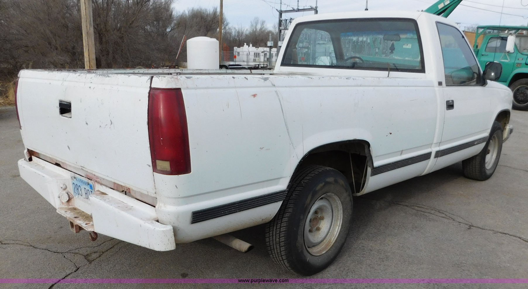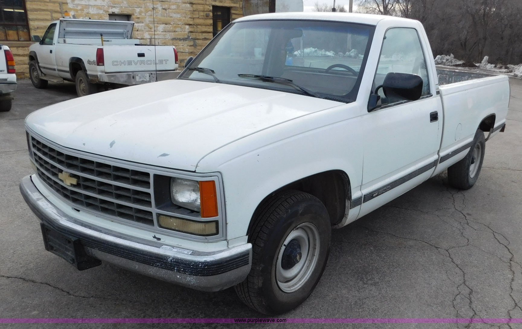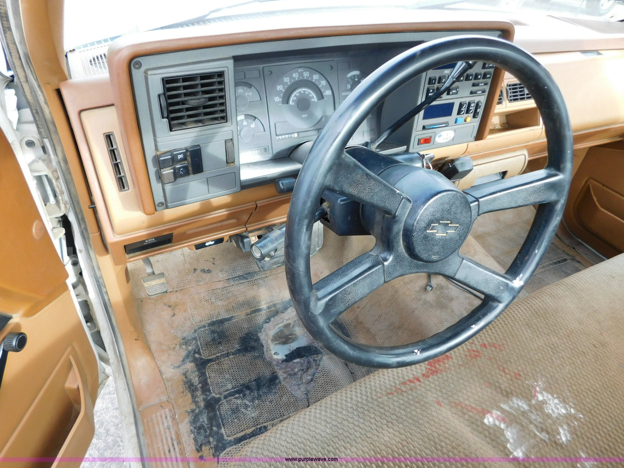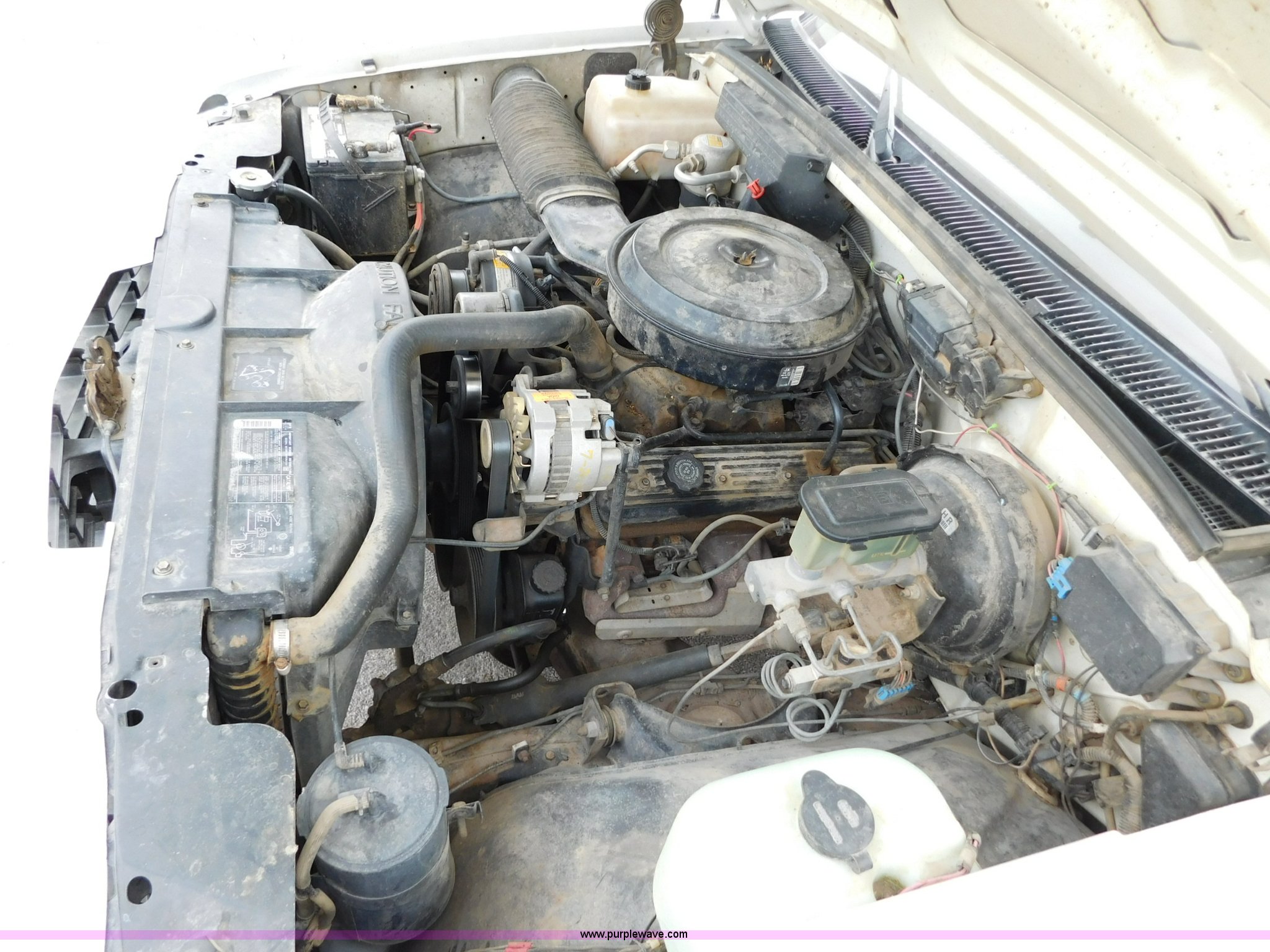 Purple Wave is selling a used 1/2 Ton Pickup or Van in Kansas. This item is a 1989 Chevrolet Scottsdale 1500 pickup truck with the following: 96,016 miles on odometer, 5.0L V8 VIH 16V gas engine, Automatic transmission, AC and heat, Tilt, Cruise, AM/FM, Manual windows and locks, Cloth interior, Receiver hitch, Trailer wiring, LT235/75R15 tires, Transmission needs to be replaced, Interior/exterior cosmetic damage, Seat torn, Dents, Scratches