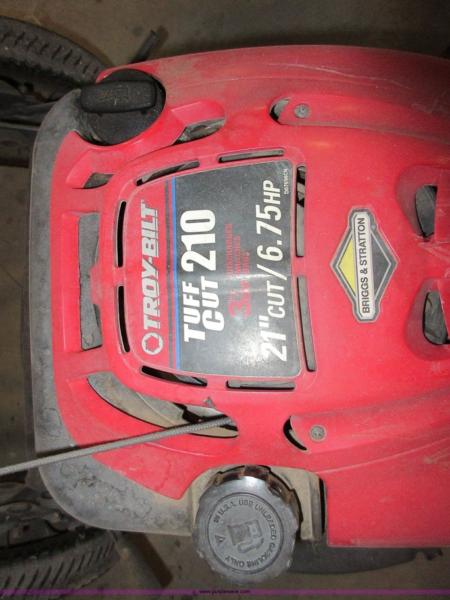 Purple Wave is selling a used Lawn and Garden in Kansas. This item is a Troy-Bilt Tuff Cutt 210 self-propelled push mower with the following: 21" cut, Briggs & Stratton 6.75 HP gas engine