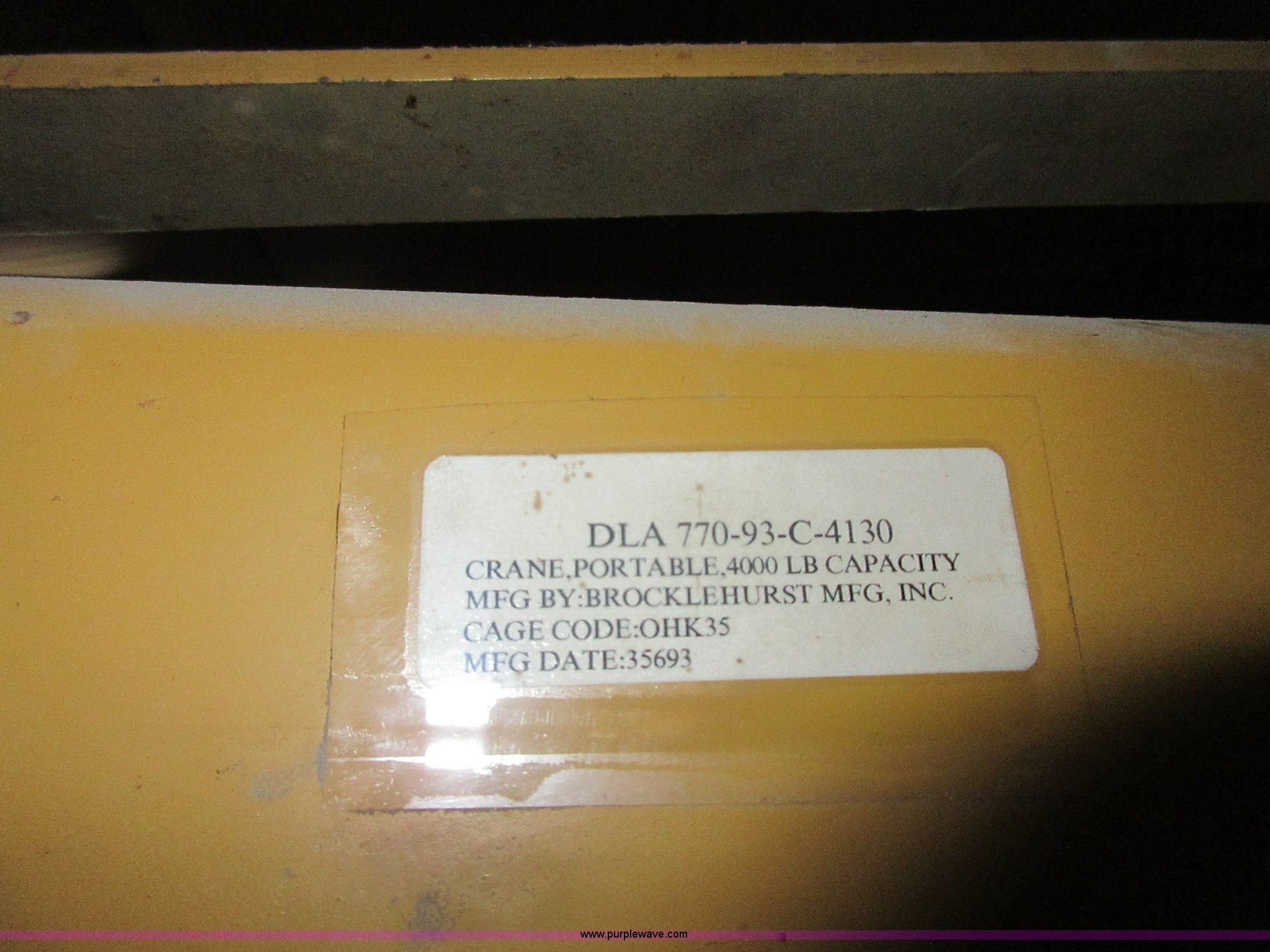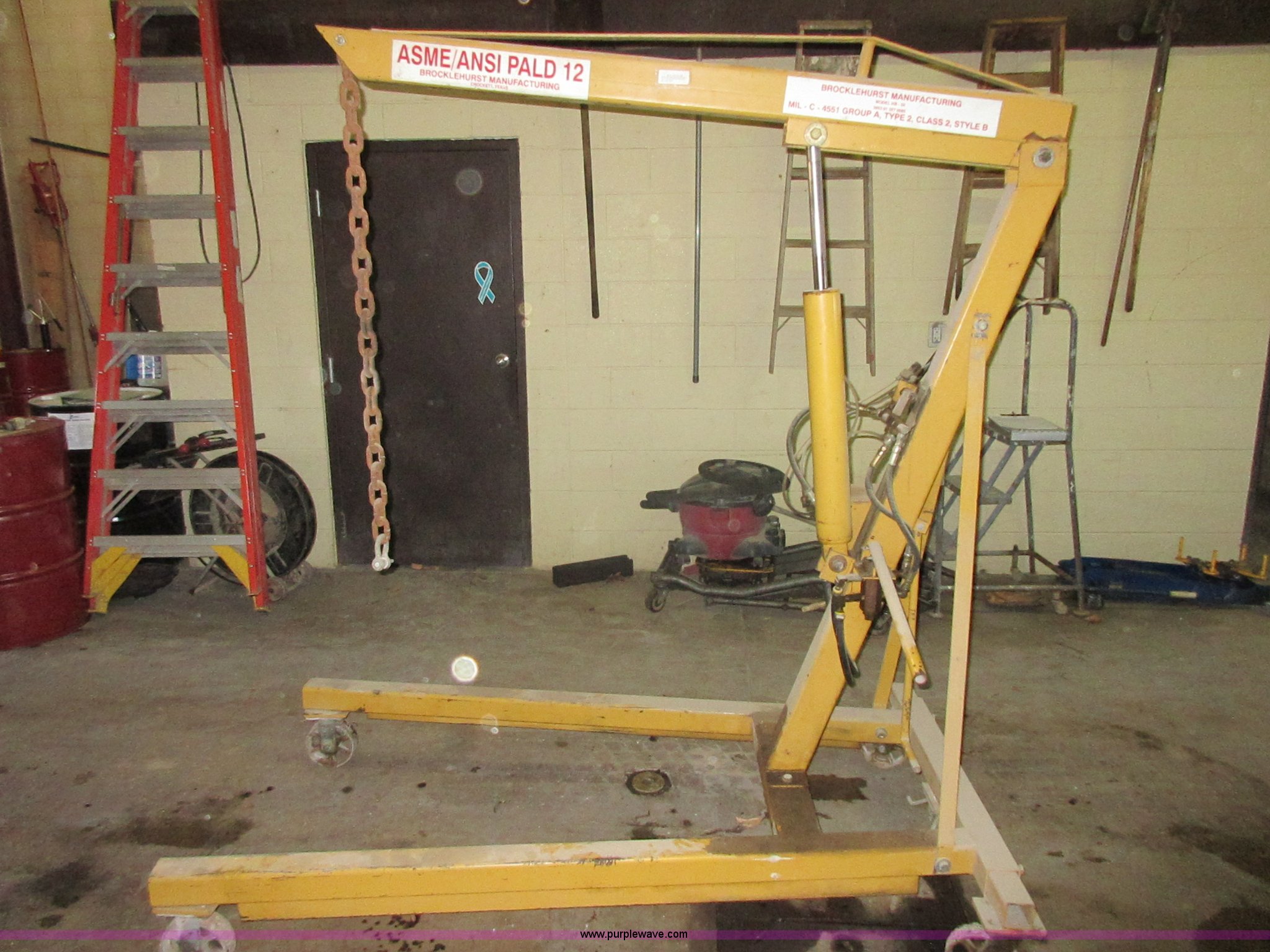 Purple Wave is selling a used Tools in Kansas. This item is a Brockle Hurst HB-50 hoist with the following: 4,000 lbs capacity