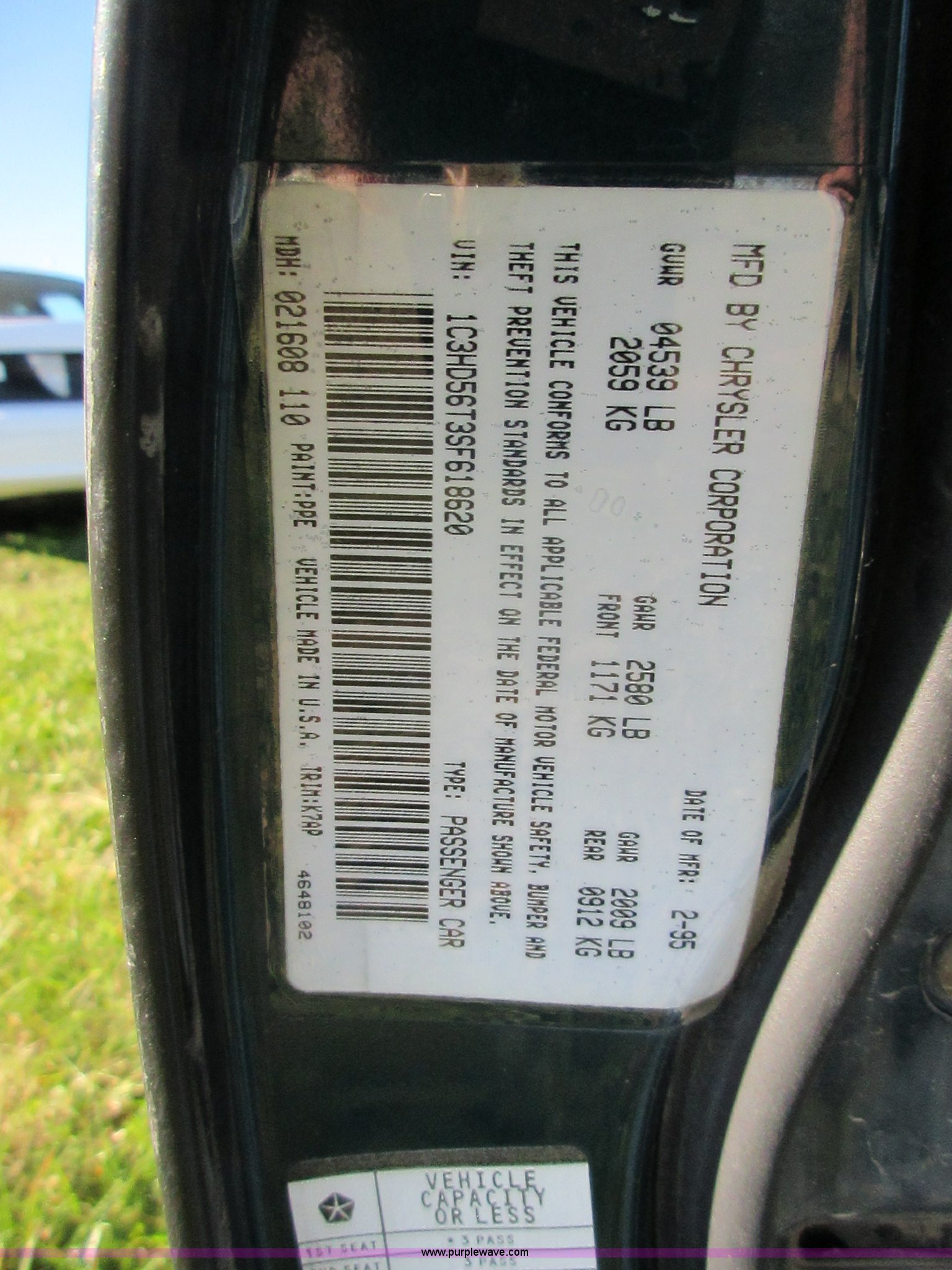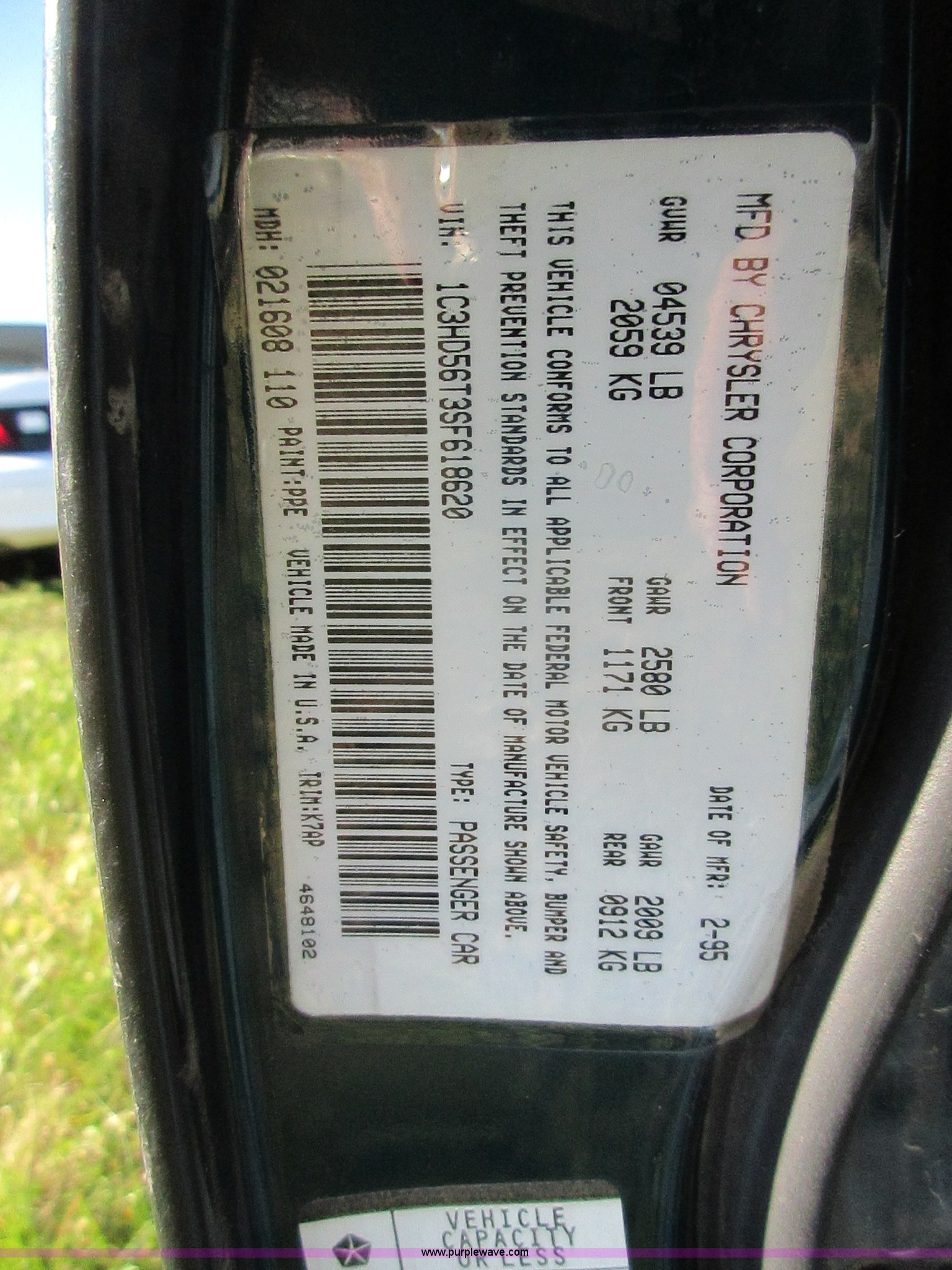 Purple Wave is selling a used Passenger Vehicle in Kansas. This item is a 1995 Chrysler Concorde with the following: 88,136 miles on odometer, 3.3L V6 OHV 12V gas engine, Automatic transmission, AC and heat, Tilt, Cruise, AM/FM/CD, Power windows, locks, and mirrors, Cloth interior, Interior/exterior cosmetic damage
