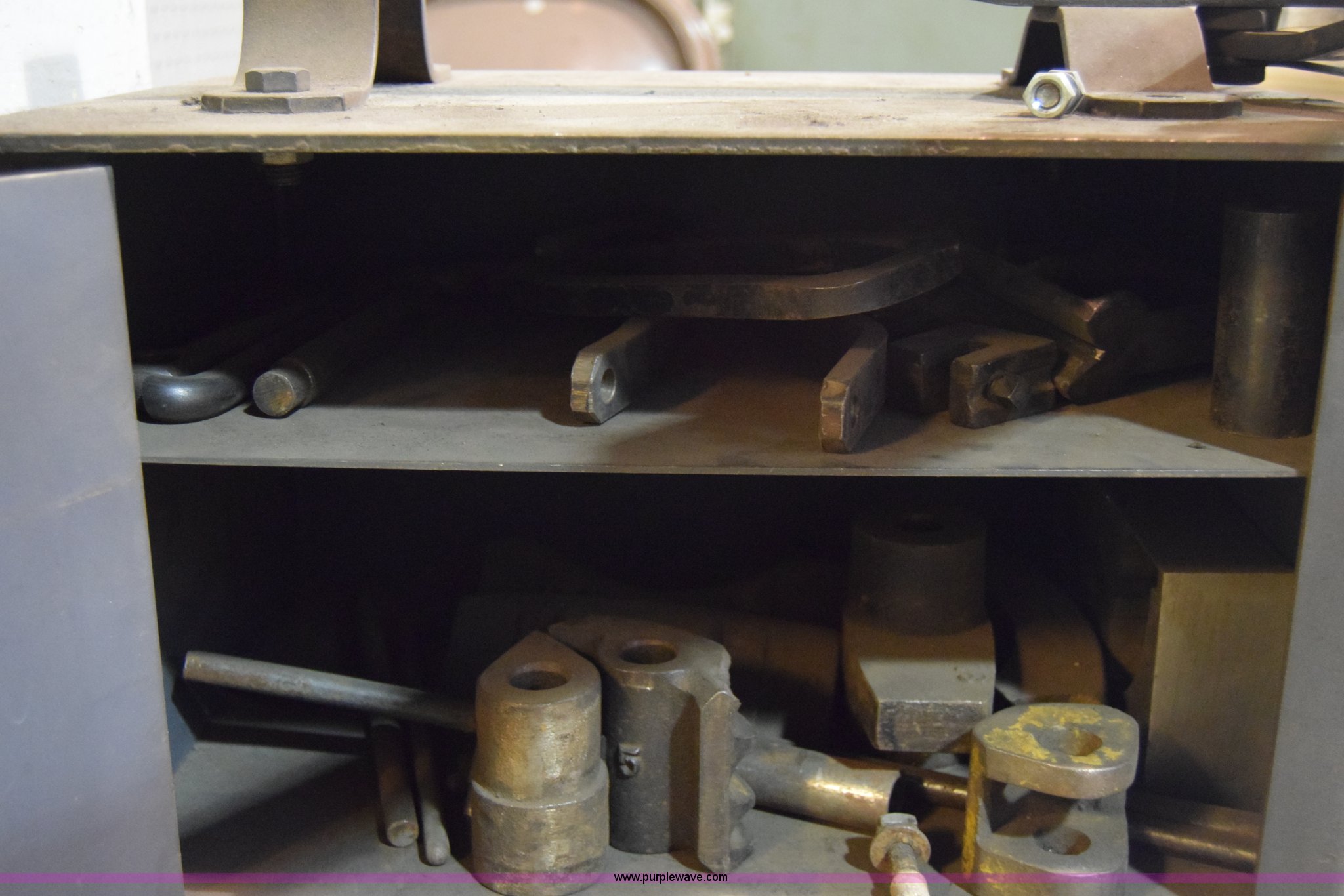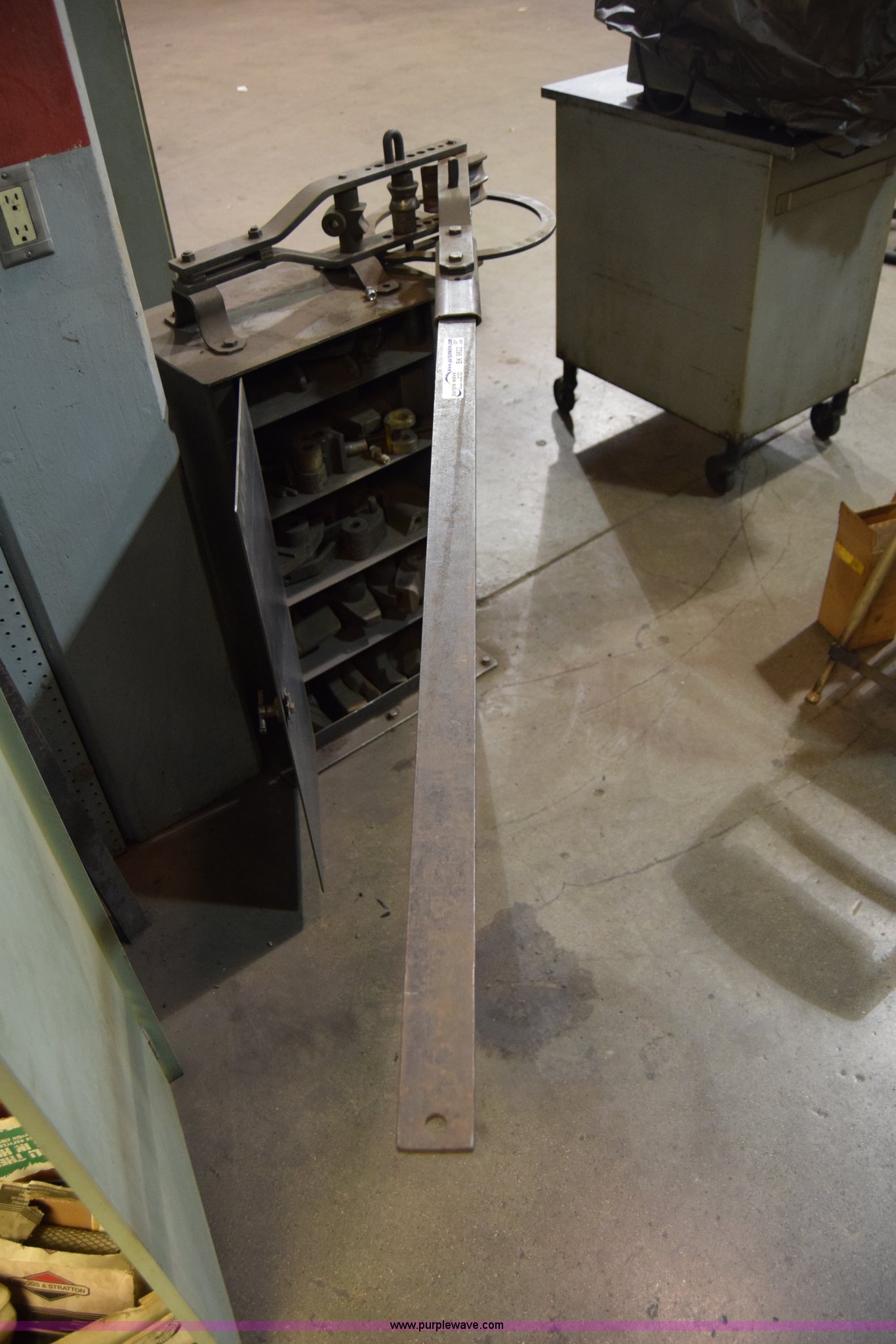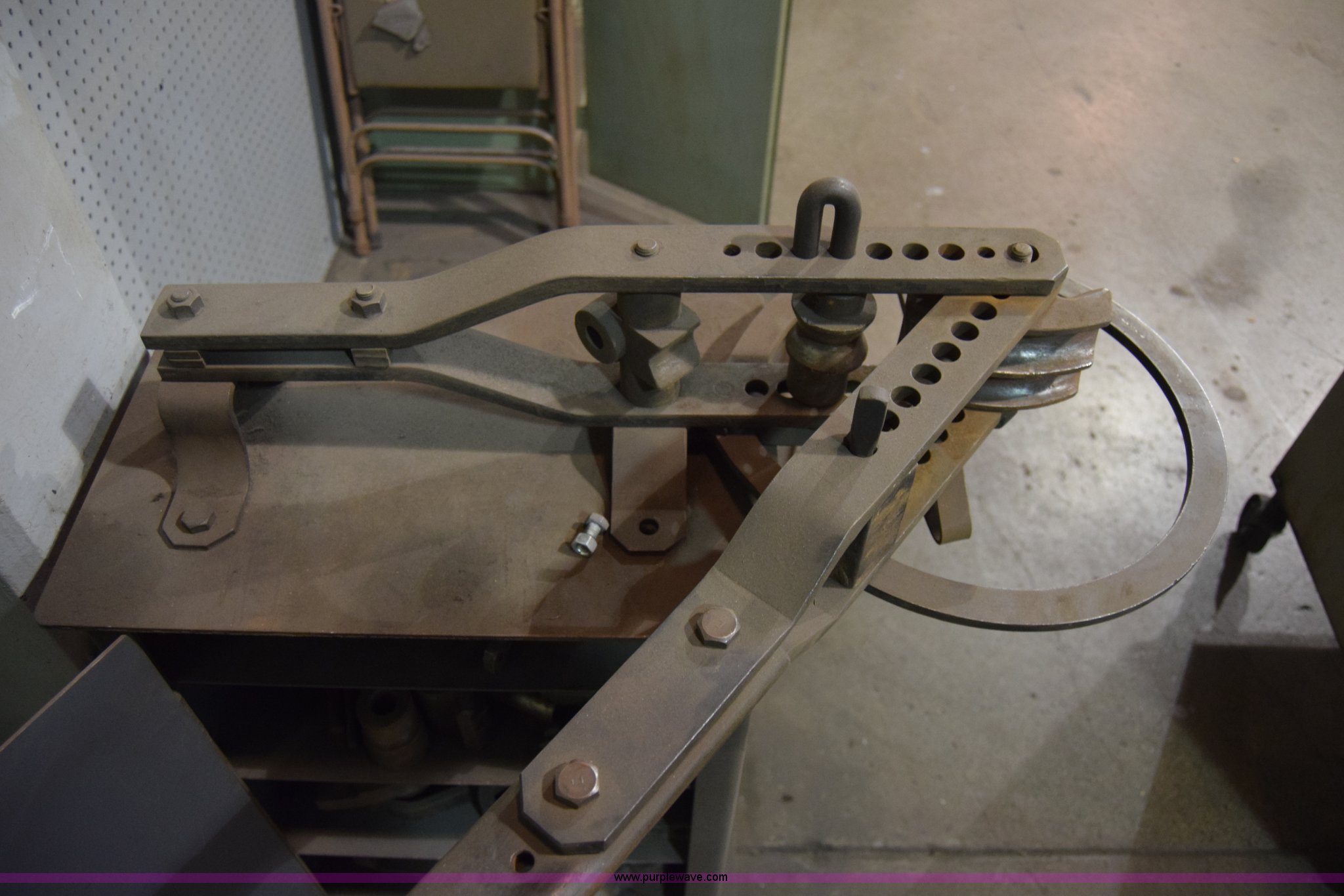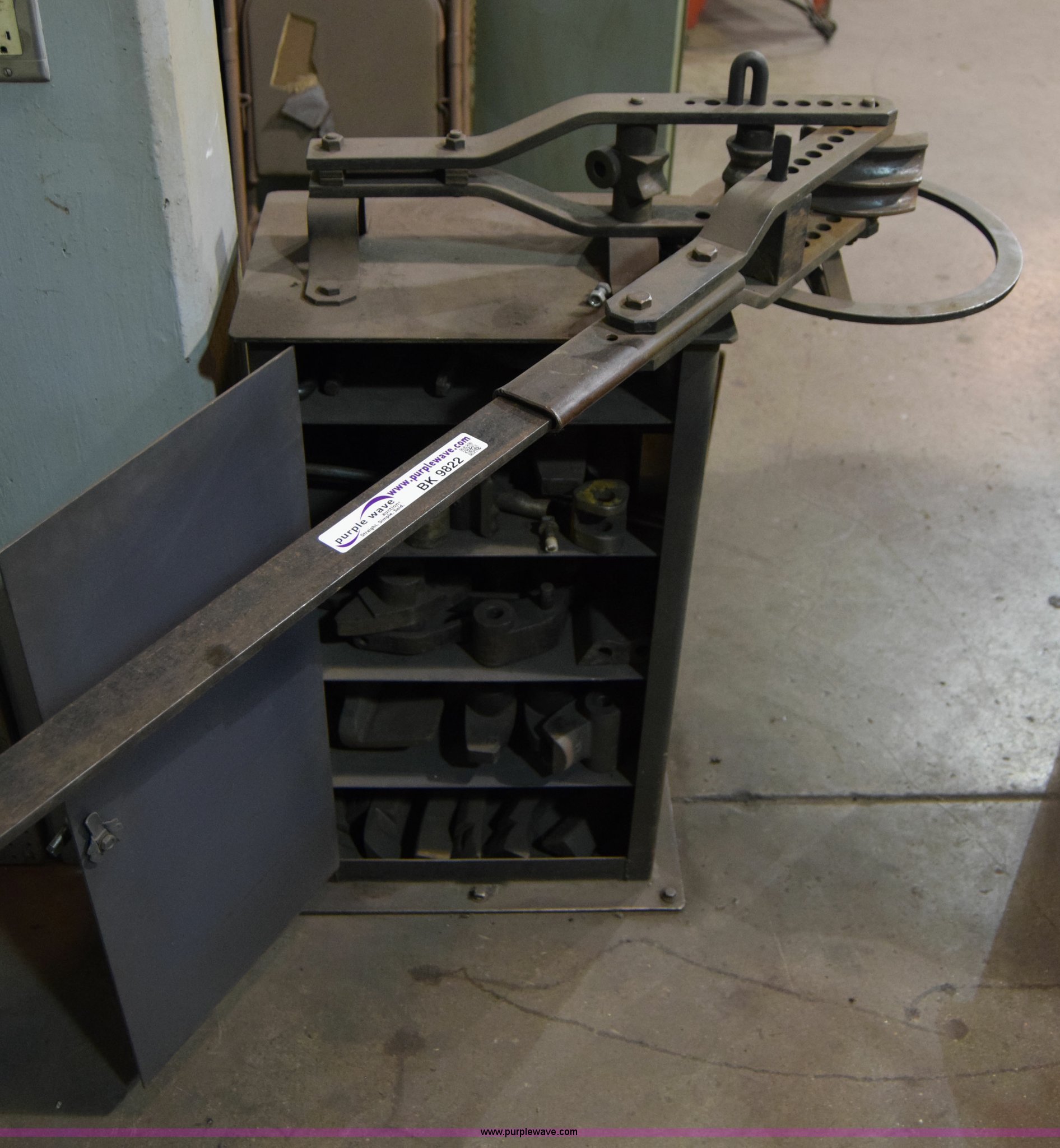 Purple Wave is selling a used Tools in Kansas. This item is a Tubing bender with the following: Metal cabinet mount, Accessories
