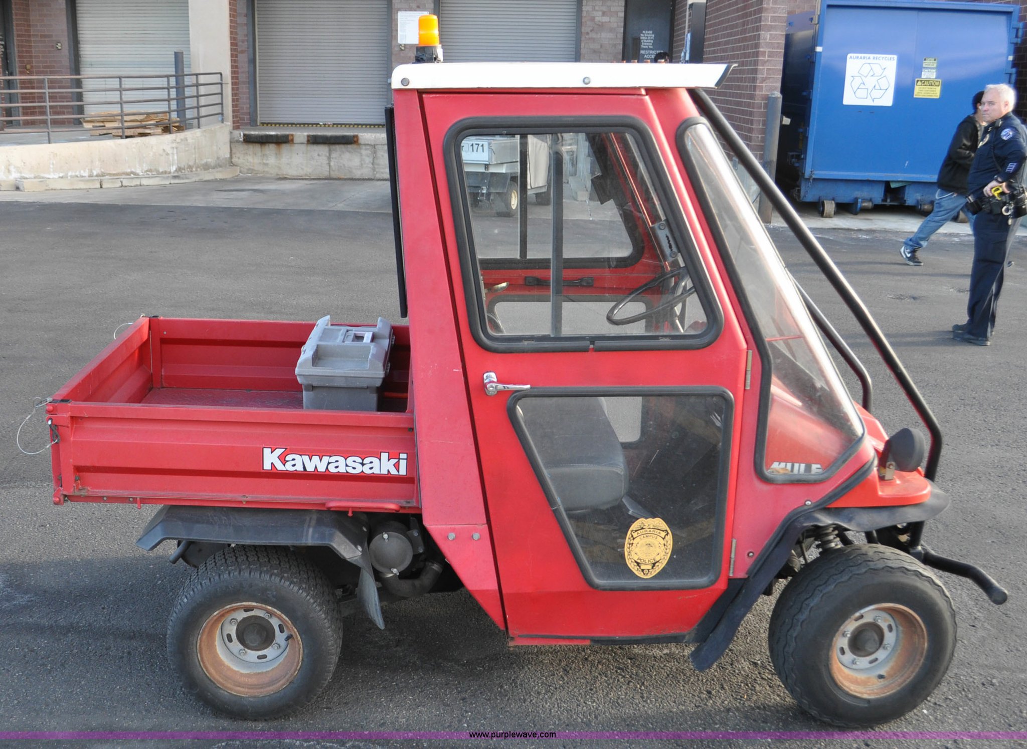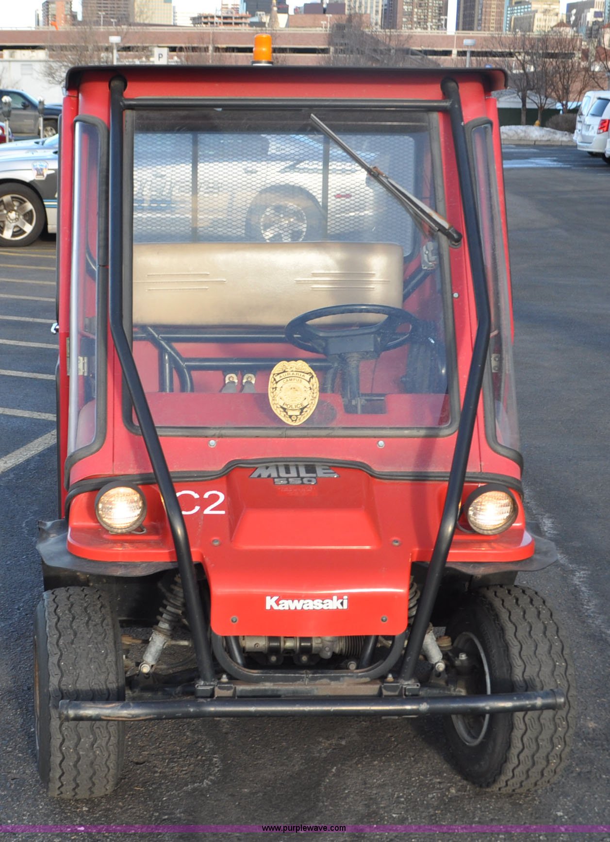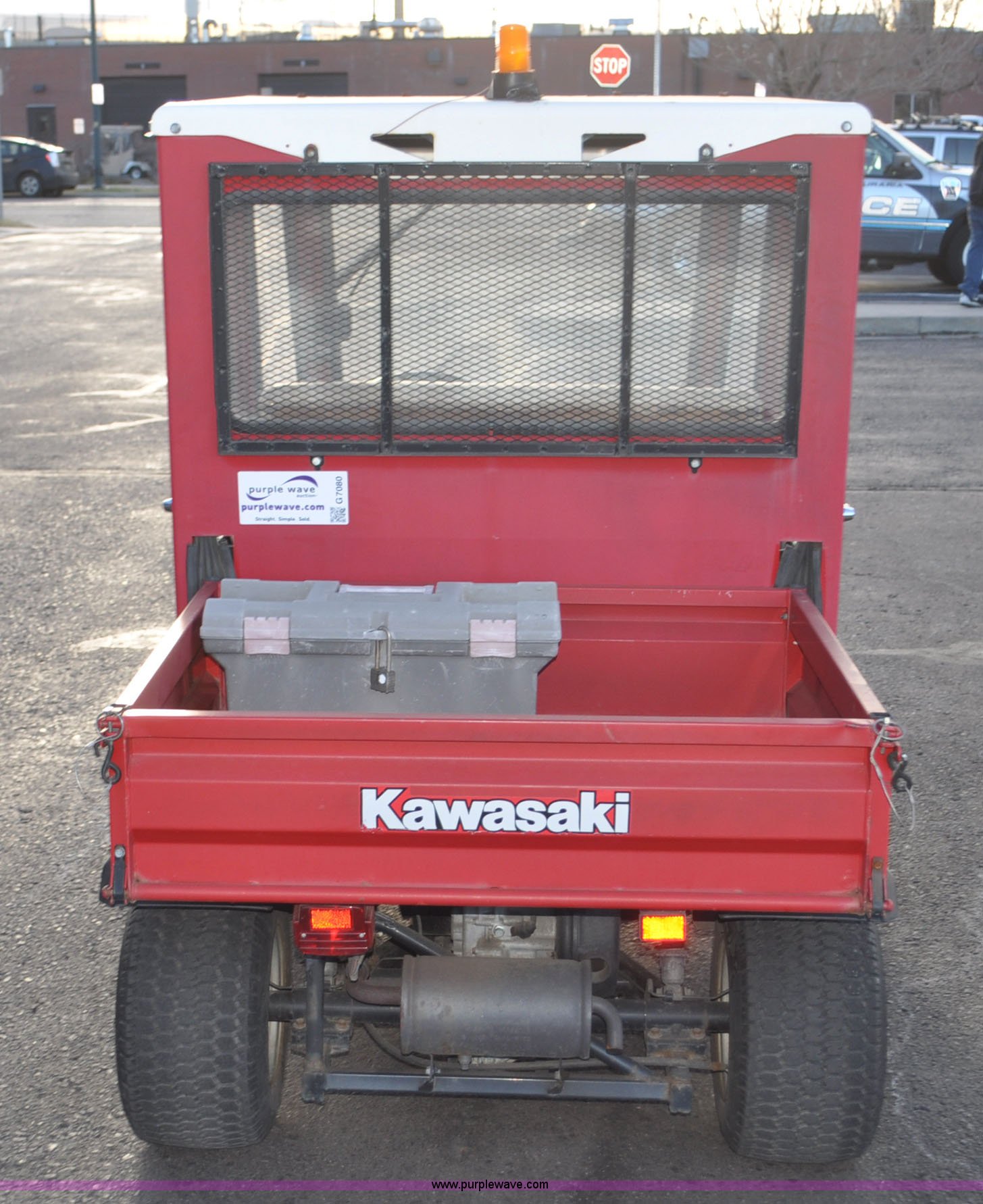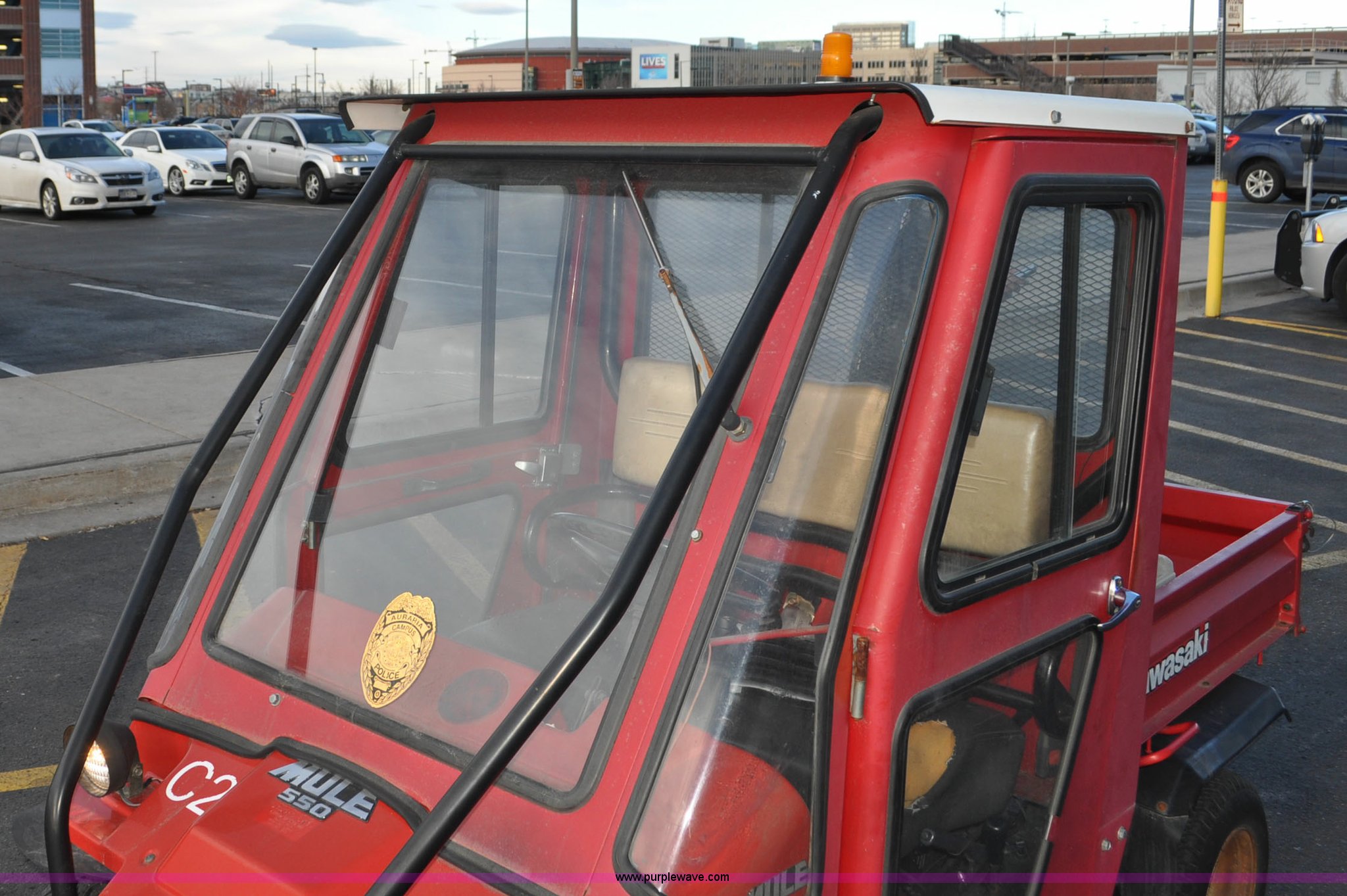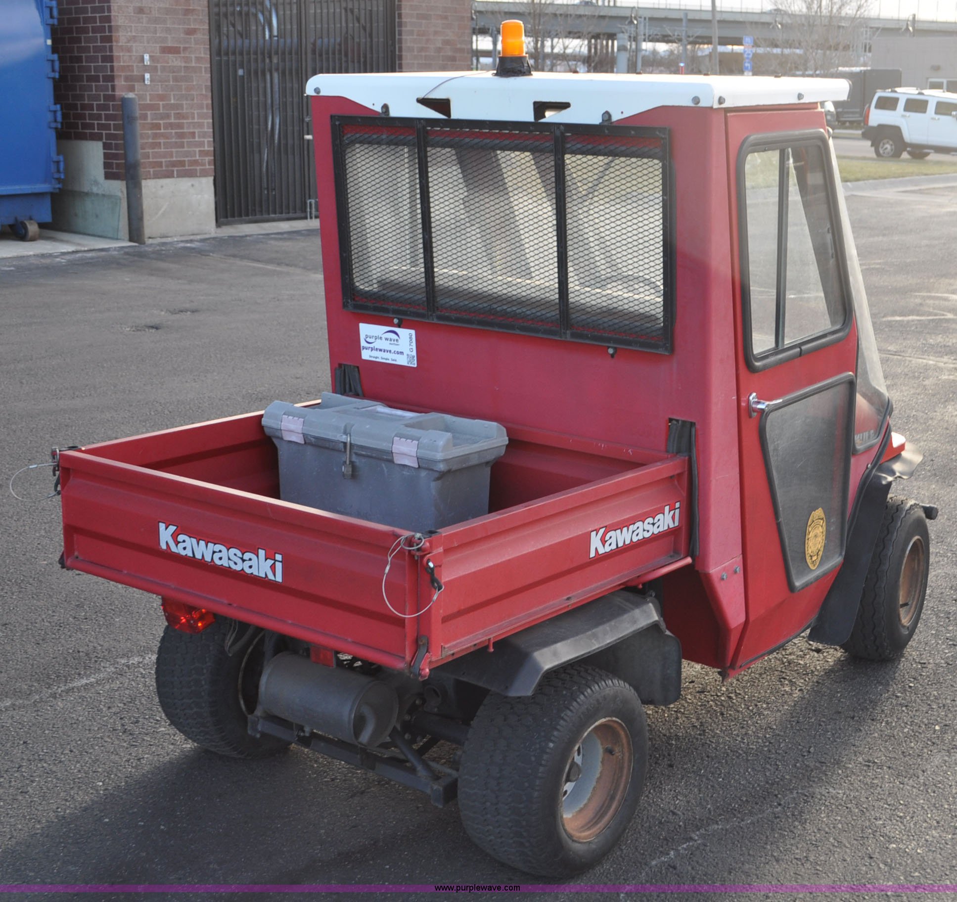 Purple Wave is selling a used ATV in Colorado. This item is a 2000 Kawasaki Mule 550 utility vehicle with the following: 2552 hours on meter, Kawasaki gas engine, Automatic transmission, Headlights, Windshield wiper, Enclosed cab, 3'L x 3'W manual lift dump bed, 20 x 8.0-10 front tires, 20 x 10.00-10 rear tires, Seat damaged