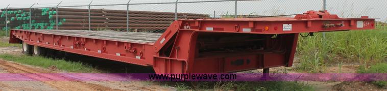 Purple Wave is selling a used Equip. Trailer in Oklahoma. This item is a 1985 Trail-Eze LP30H46 tilt deck equipment trailer with the following: 46'L x 120"W overall, 35'L main deck, 8'L upper deck, 3'L hydraulic deck step, 24" hydraulic tail, Stake side pockets, D-ring tie downs, (4) 4" ratchet strap housings, Braden winch, Four valve hydraulic operation, Spring suspension, Air brakes, Tandem axle, 10R17.5 tires, GVWR 78,190 lbs