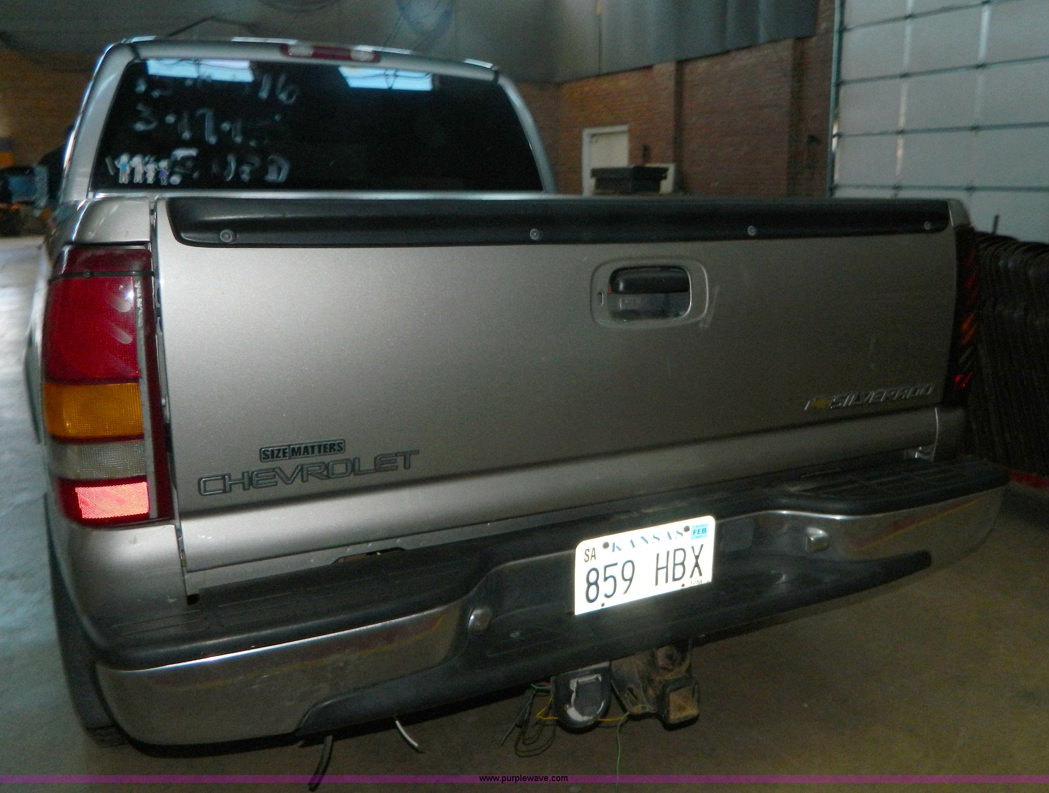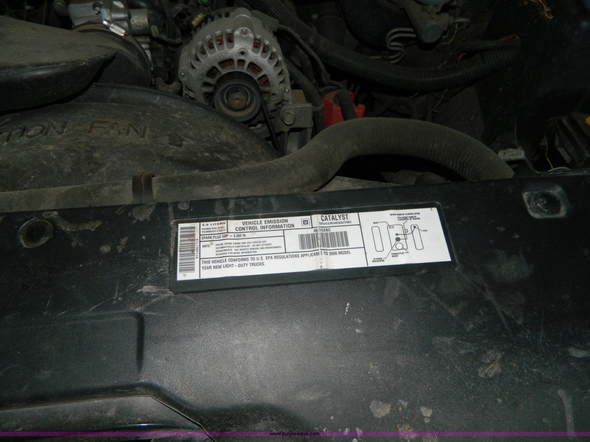 Purple Wave is selling a used 1/2 Ton Pickup or Van in Kansas. This item is a 2000 Chevrolet Silverado 1500 Ext. Cab pickup truck with the following: 248,197 miles on odometer, 4.8L V8 OHV 16V gas engine, Automatic transmission, AC and heat, Tilt, Cruise, Power windows, locks, and mirrors, Cloth interior, Receiver hitch, Trailer wiring, LT245/75R16 tires, Cracked windshield, Hood release latch broken, Cosmetic damage, Weak battery, Radio missing