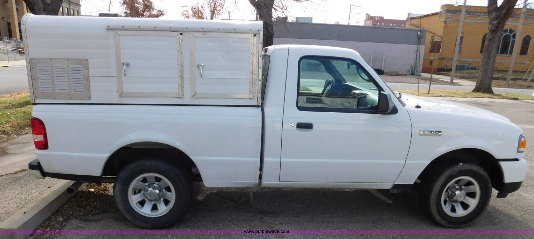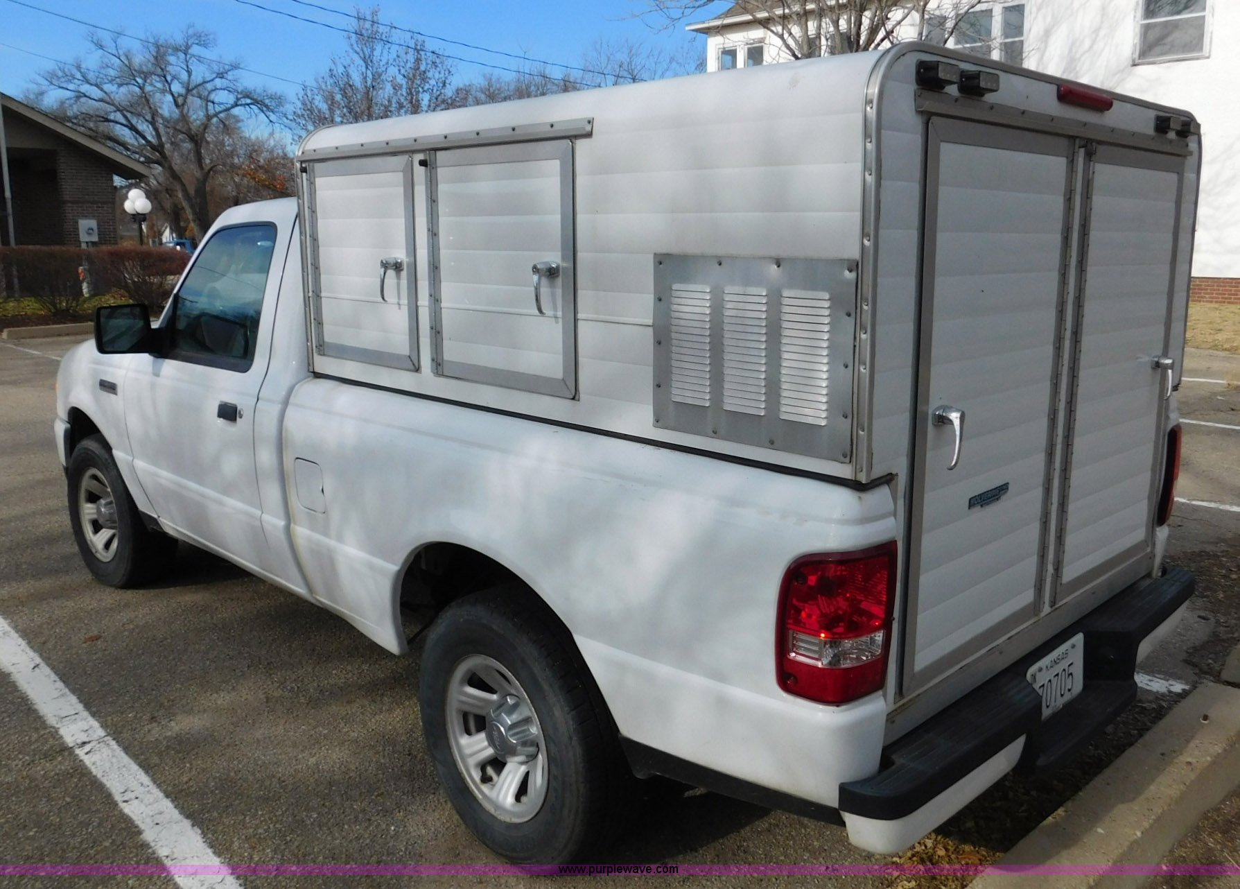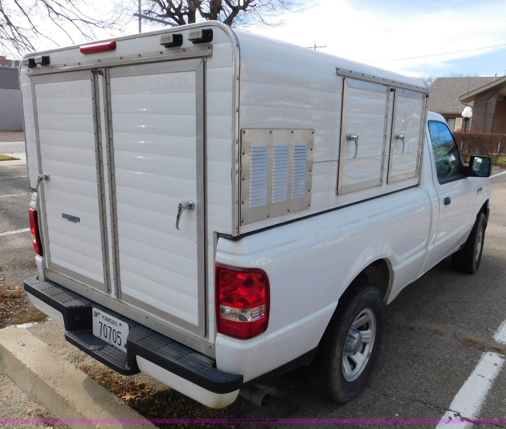 Purple Wave is selling a used Compact Pickup or Van in Kansas. This item is a 2008 Ford Ranger pickup truck with the following: 66,569 miles on odometer, Miles may vary, still in use, 3.0L V6 OHV 12V gas engine, Automatic transmission, AC and heat, Tilt, Cruise, AM/FM/CD, Power windows, locks, and mirrors, Cloth interior, Wolverine Coach animal box bed, 6'3"L x 5'W dog box, Five cages, P225/70R15 tires