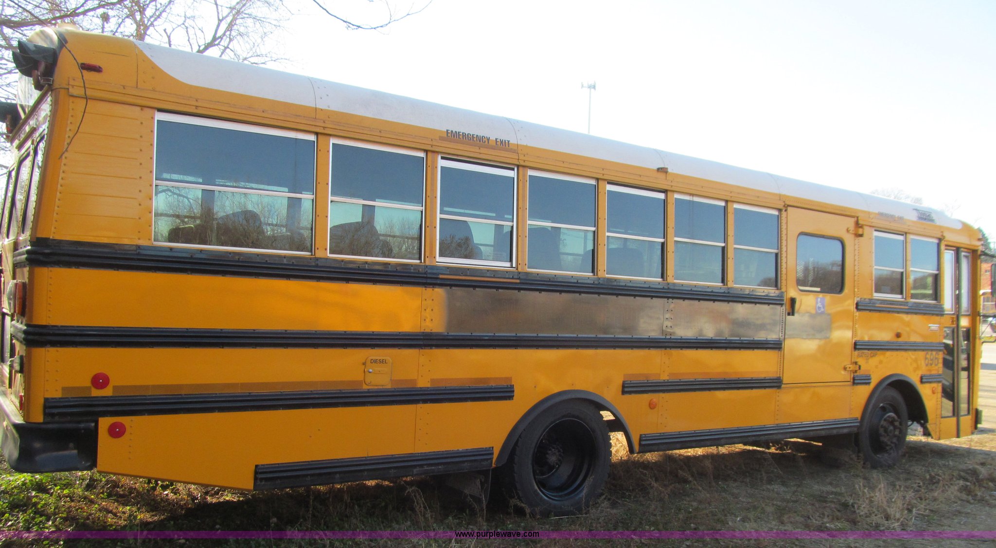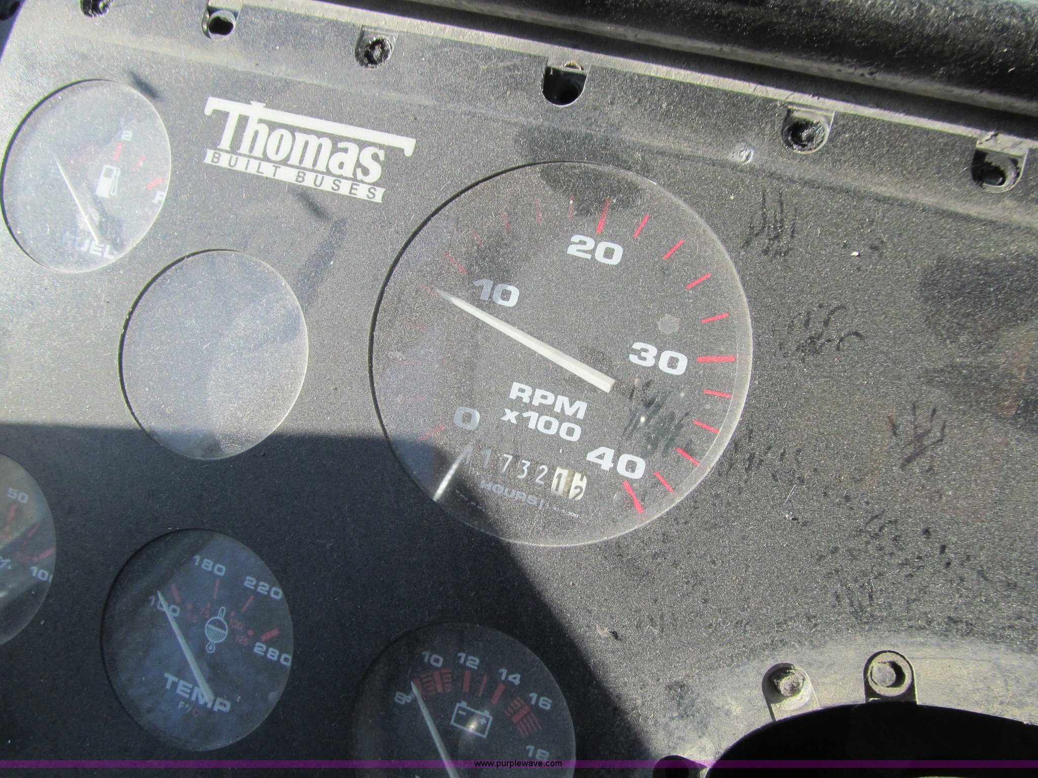 Purple Wave is selling a used Bus in Iowa. This item is a 2004 Thomas Built Saf-T-Liner MVP EF school bus with the following: 73,302 miles on odometer, 11,732 hours on meter, Caterpillar EFC7210 six cylinder diesel engine, Serial KAL10590, Automatic transmission, Single axle, Heat, AM/FM/CD, Heated mirrors, Air suspension seat, 30 passenger capacity, Braun L9171B wheelchair lift, (7) emergency egress, Block heater, Air suspension, Air brakes, 178" wheelbase, Goodyear 255/70R22.5 tires, GVWR 30,000 lbs, FAWR 11,020 lbs, RAWR 19,000 lbs, Security system is not included, Unit# 696