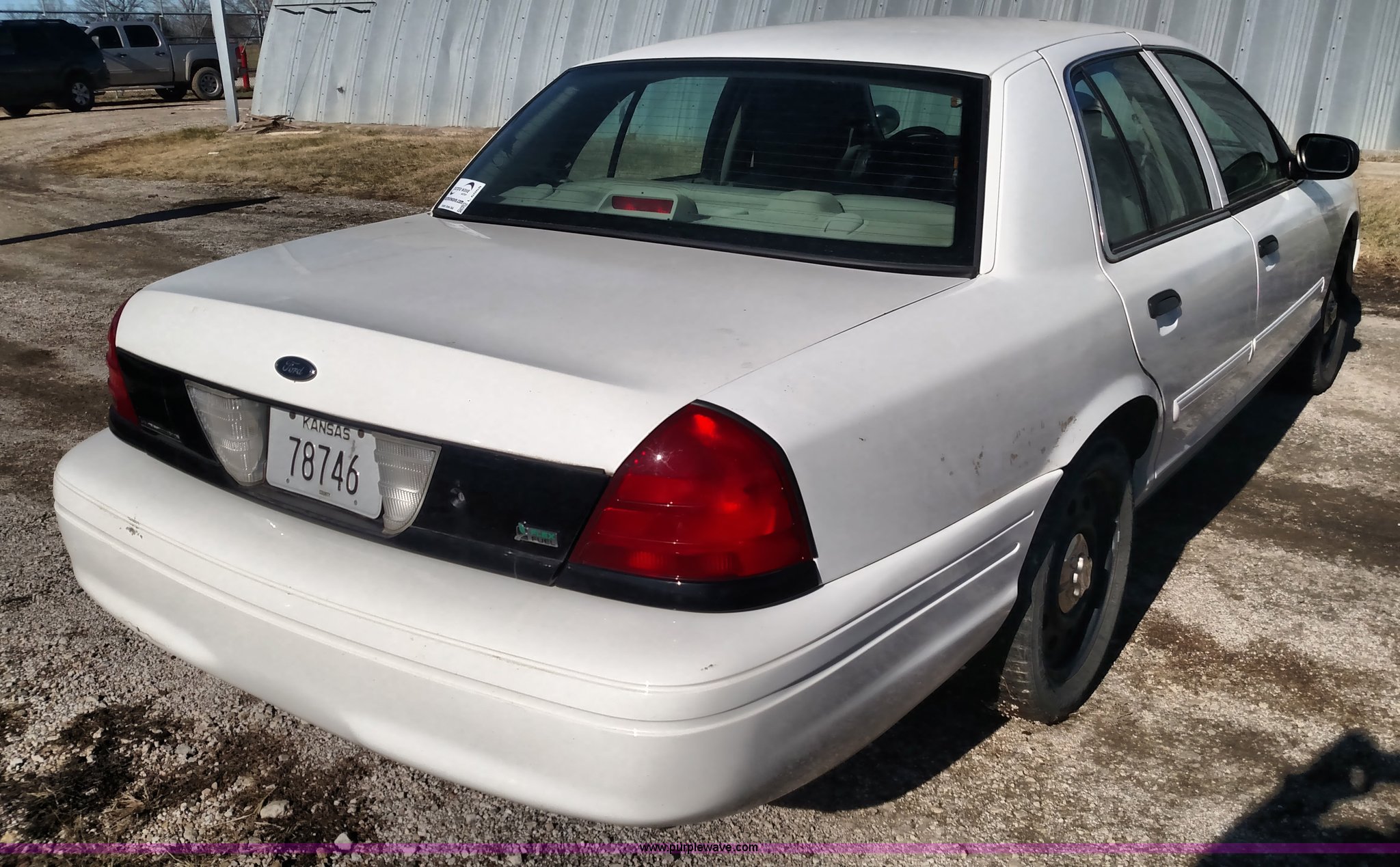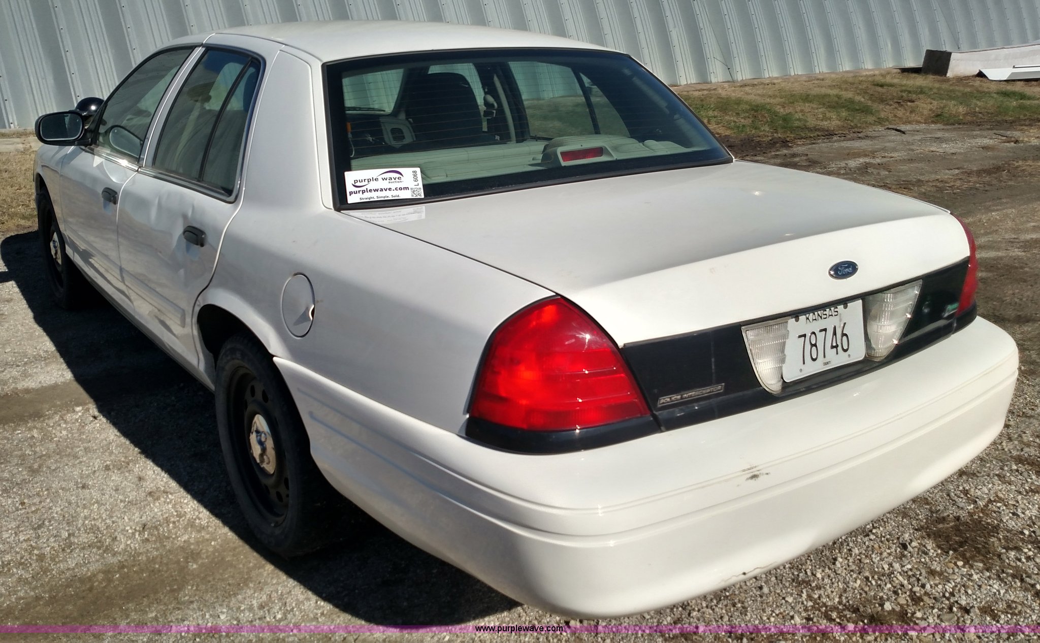 Purple Wave is selling a used Passenger Vehicle in Kansas. This item is a 2011 Ford Crown Victoria Police Interceptor with the following: 91,622 miles on odometer, 4.6L V8 SOHC 16V FFV gas engine, Automatic transmission, AC and heat, Tilt, Cruise, AM/FM/Cd, Power windows, locks, mirrors, and seat, Cloth interior, Adjustable foot pedals, 235/55R17 tires, Interior/exterior cosmetic damage