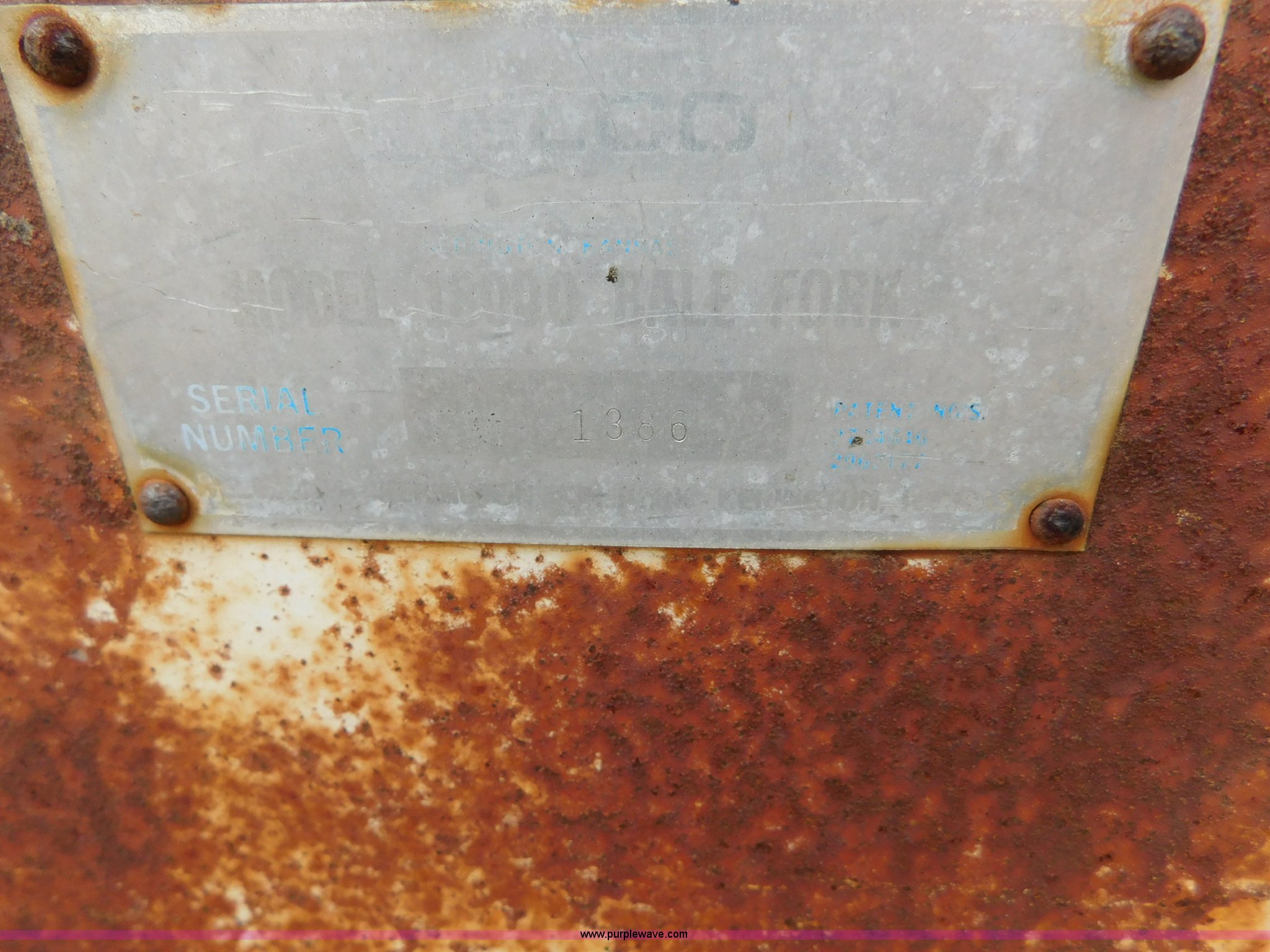 Purple Wave is selling a used Hay Handling in Kansas. This item is a Welco 18000 bale fork with the following: Eight bale capacity, Cylinder and hoses need replaced, Serial FM-1386