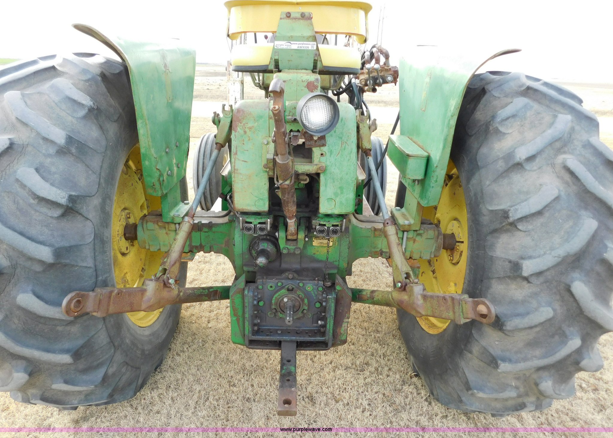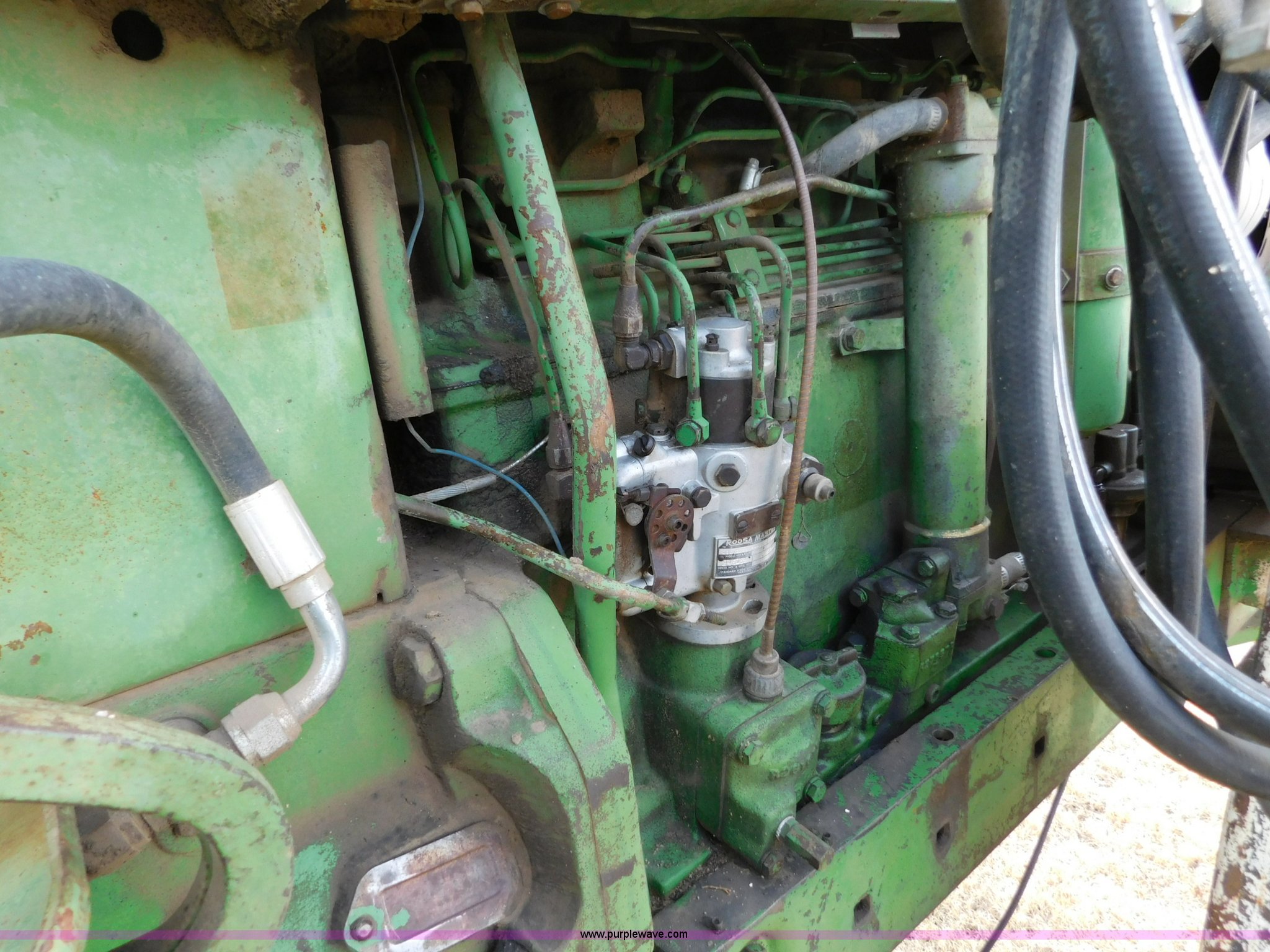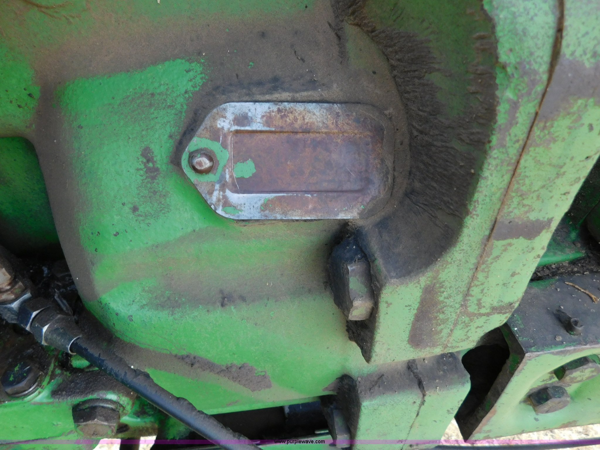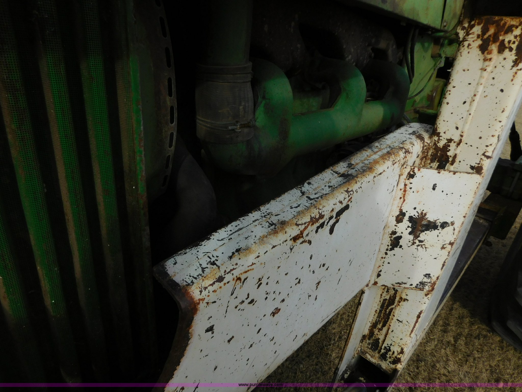 Purple Wave is selling a used Tractor in Kansas. This item is a John Deere 4010 tractor with the following: John Deere six cylinder diesel engine, Manual transmission, 8F-7R gears, Suspension seat, GB loader, 72"W bucket, Two-lever control, Third valve for grapple, Three point, Top link, 540/1000 PTO, Rear hydraulic remote sets, 101" wheelbase, 10.00-16 front tires, 18.4-34 rear tires, Converted from 24V to 12V, Recently replaced battery, Fuel gauge is not installed, Generator replaced with alternator, Hydraulic pump ticks when cold, Nose damage, Rust, Serial 21T19214