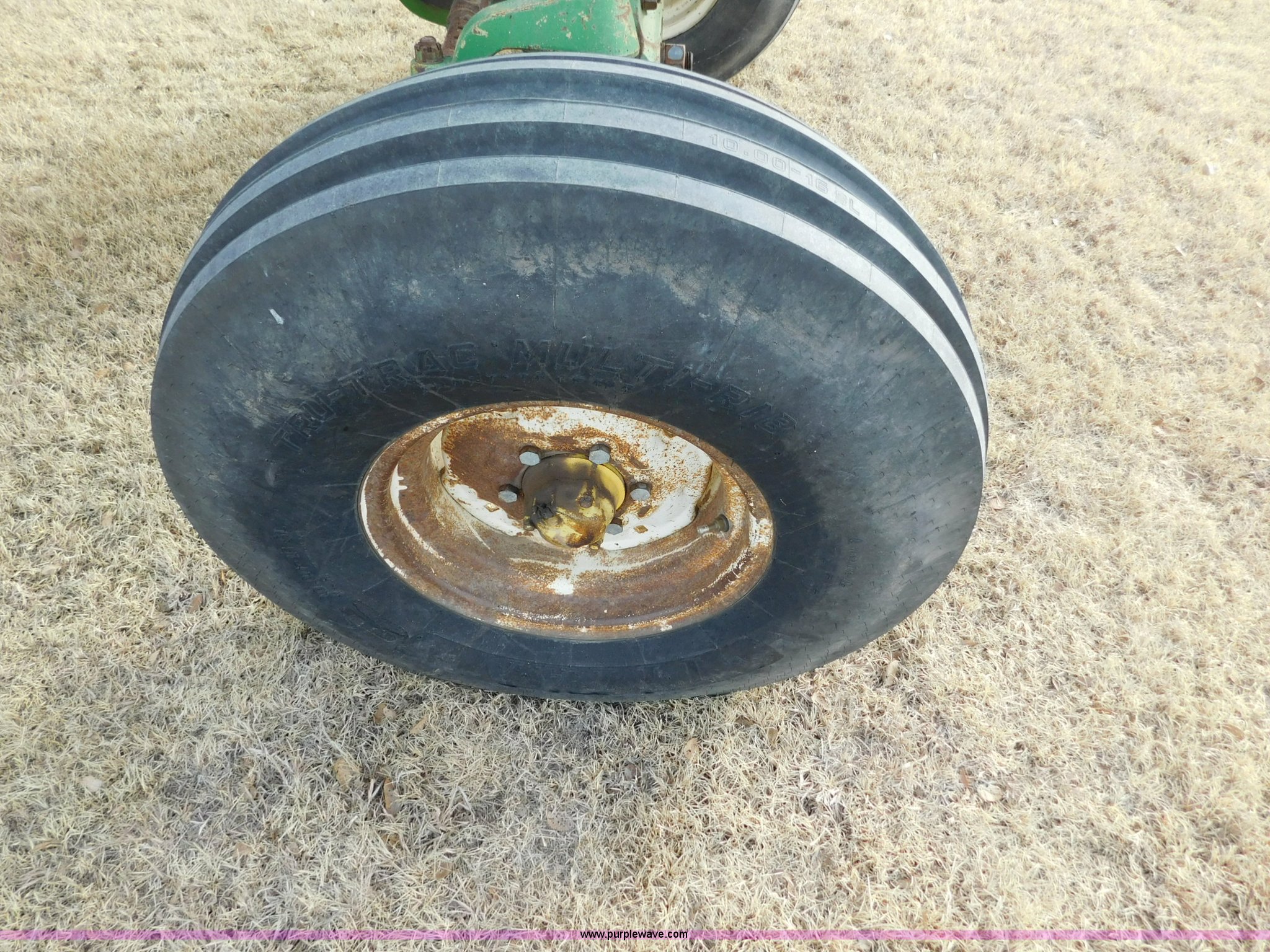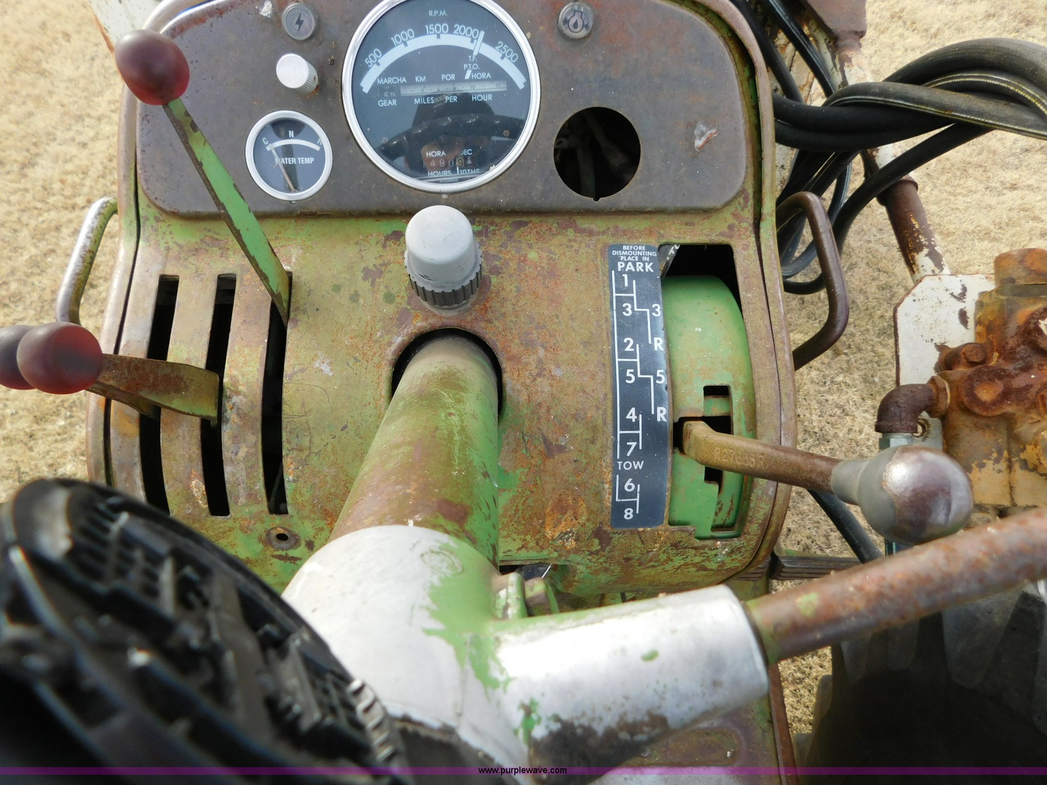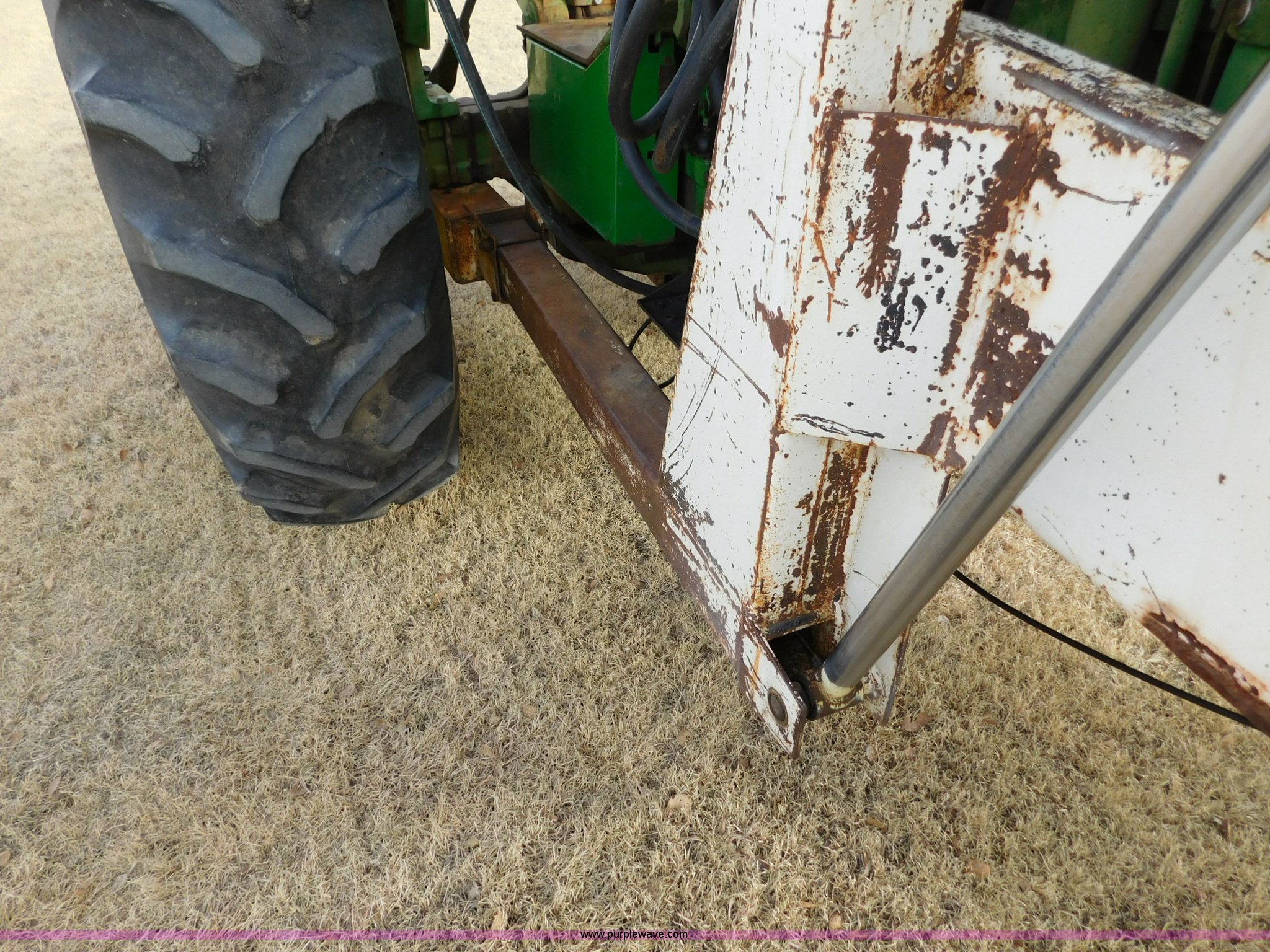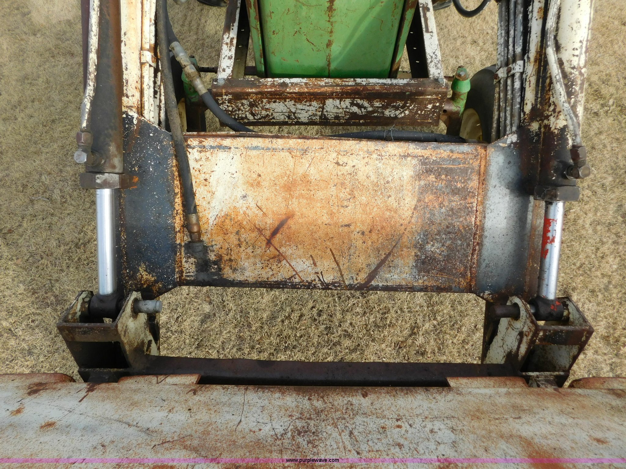Purple Wave is selling a used Tractor in Kansas. This item is a John Deere 4010 tractor with the following: John Deere six cylinder diesel engine, Manual transmission, 8F-7R gears, Suspension seat, GB loader, 72"W bucket, Two-lever control, Third valve for grapple, Three point, Top link, 540/1000 PTO, Rear hydraulic remote sets, 101" wheelbase, 10.00-16 front tires, 18.4-34 rear tires, Converted from 24V to 12V, Recently replaced battery, Fuel gauge is not installed, Generator replaced with alternator, Hydraulic pump ticks when cold, Nose damage, Rust, Serial 21T19214
