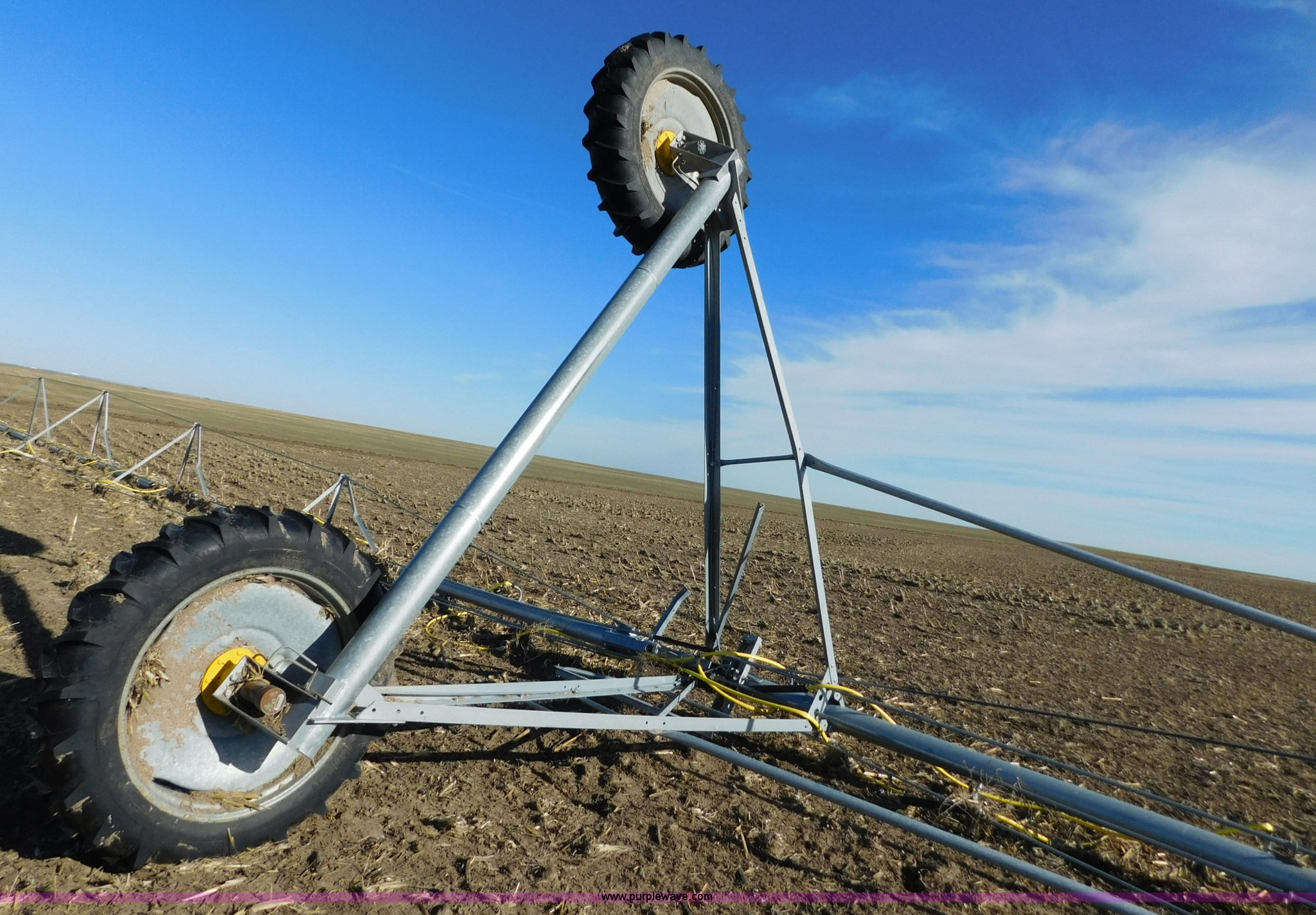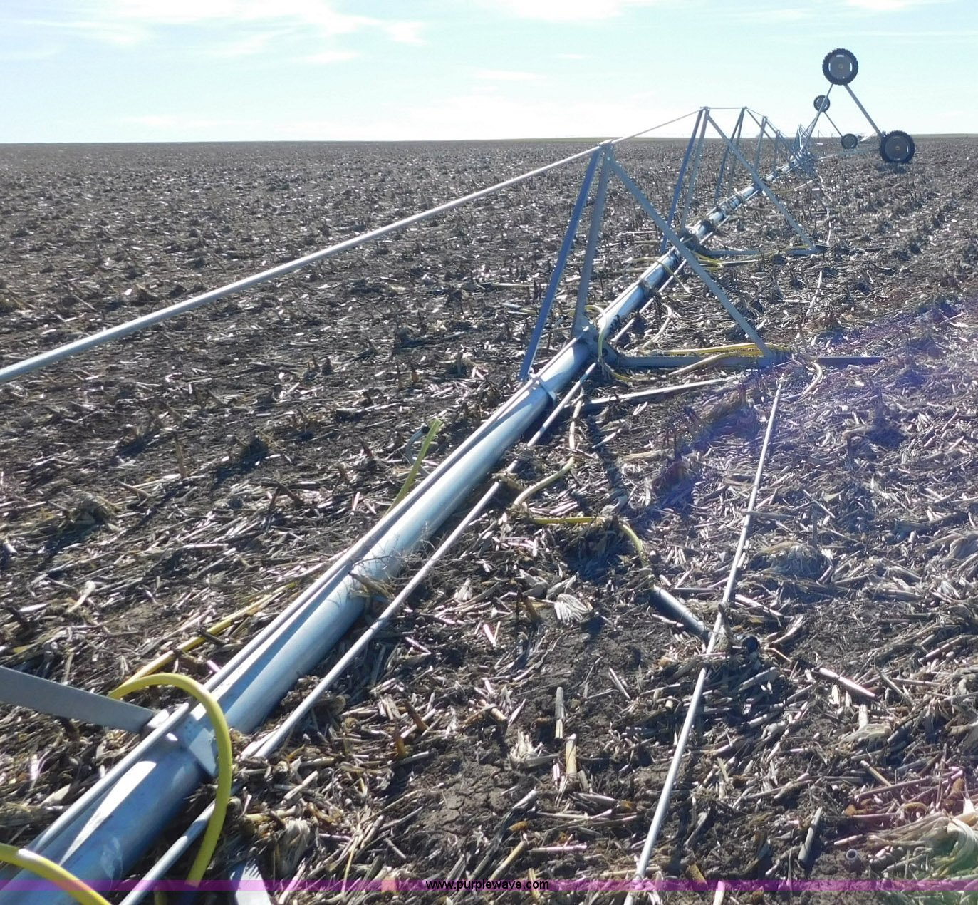 2014 T-L center pivot irrigation system. 1,500 hours on meter, (8) towers 1/4 mile, Drop tubes, Control box, Tires and wheels, Non-operational unit, Wind damage, Precision Link ag sense system not included, Unit will be disassembled and stacked prior to auction, Serial 35045. Insurance salvage. Farm Bureau Financial Services. Montezuma, KS 67867