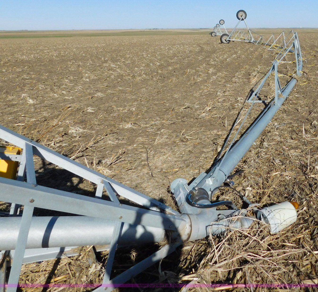 Purple Wave is selling a used Center Pivot in Kansas. This item is a 2014 T-L center pivot irrigation system with the following: 1,500 hours on meter, (8) towers, 1/4 mile, Drop tubes, Control box, Tires and wheels, Non-operational unit, Wind damage, Precision Link ag sense system not included, Unit will be disassembled and stacked prior to auction, Serial 35045