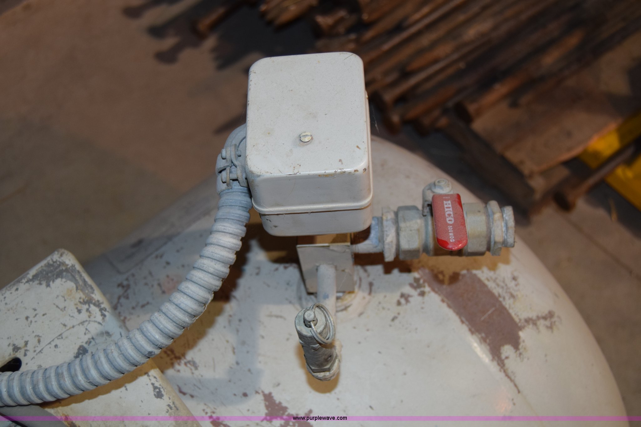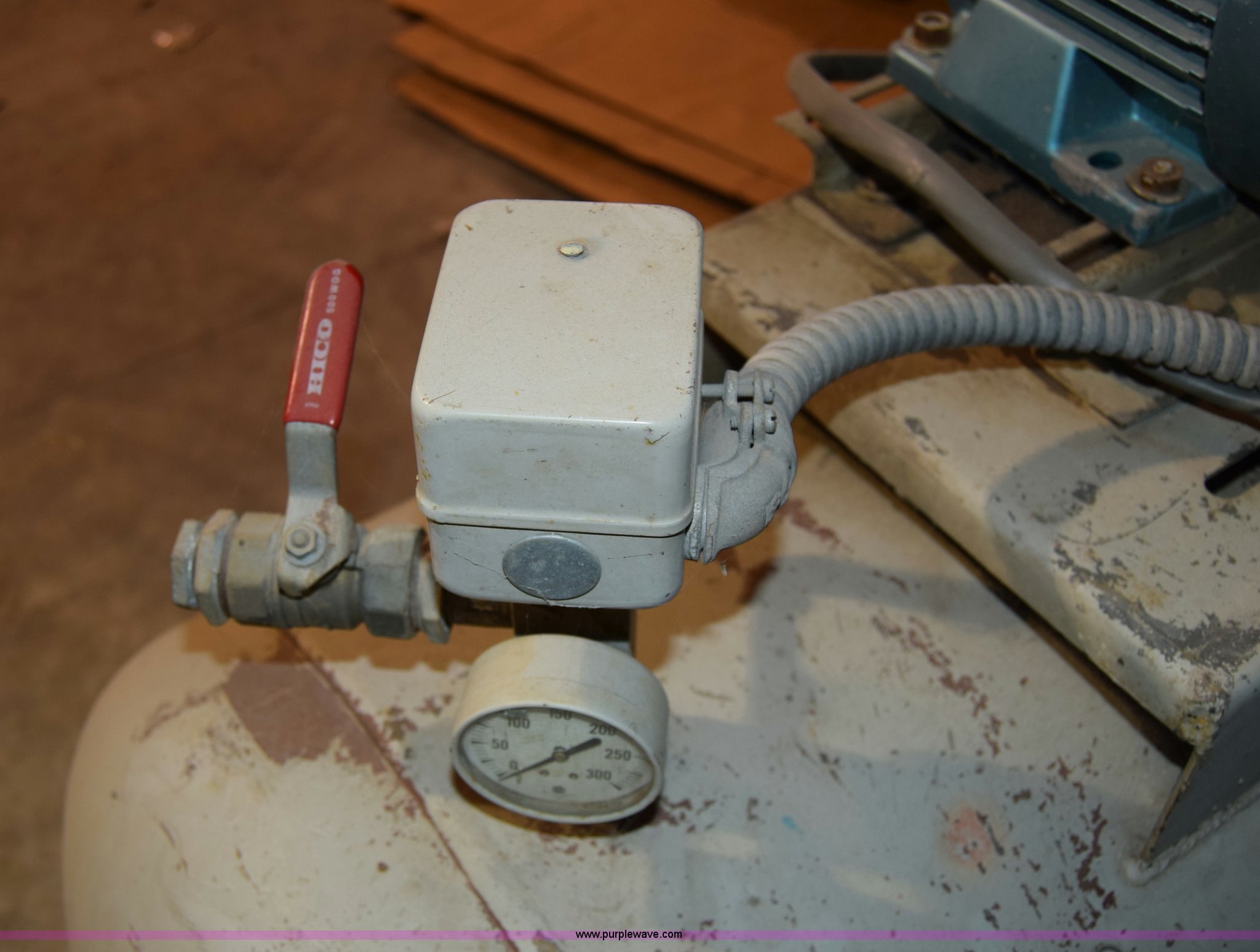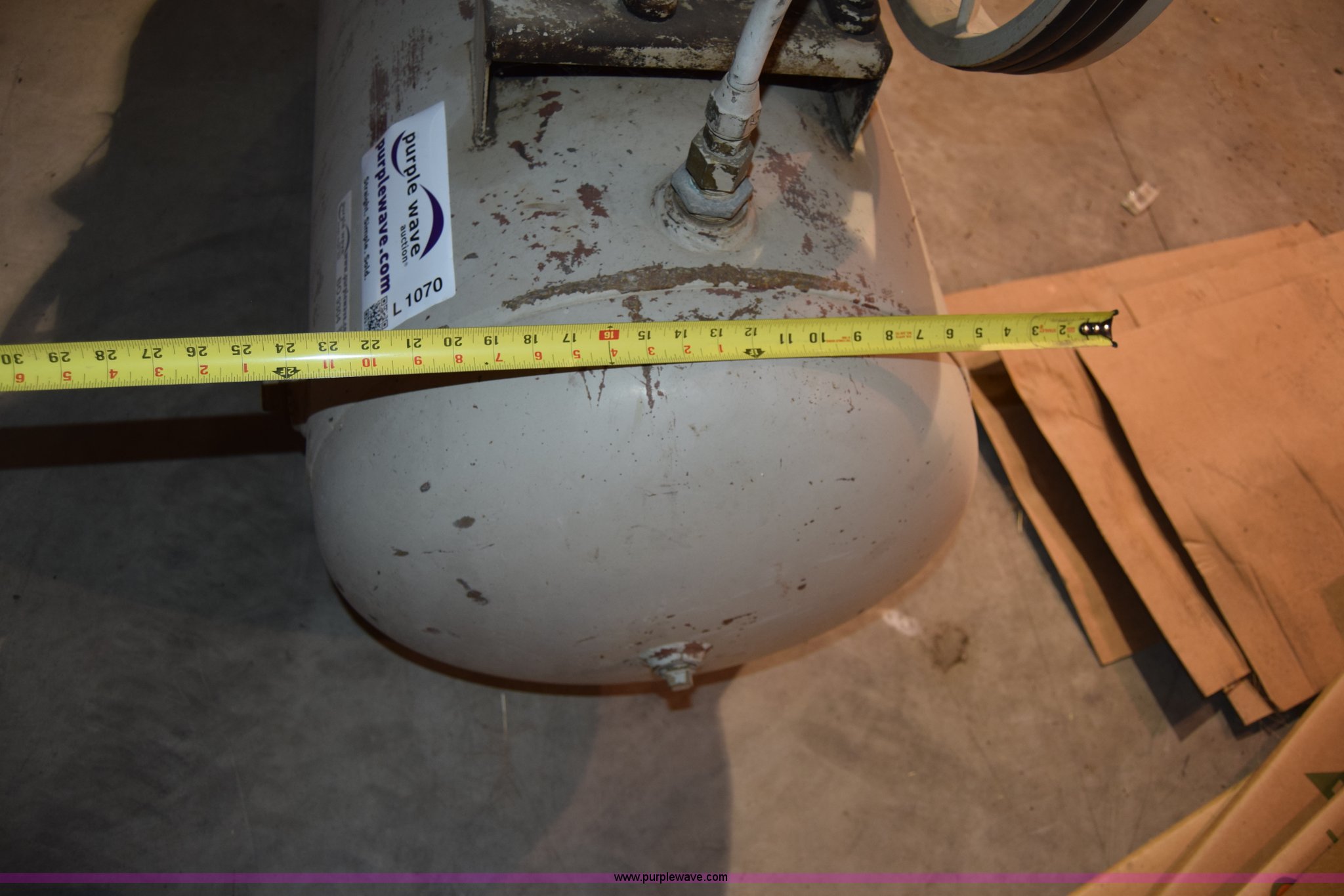 Purple Wave is selling a used Air Compressor in Kansas. This item is a Kellogg American air compressor with the following: 70" x 24" x 60"H, 230V, Single phase, 5 HP, 120 gallon tank, 1,750 RPM