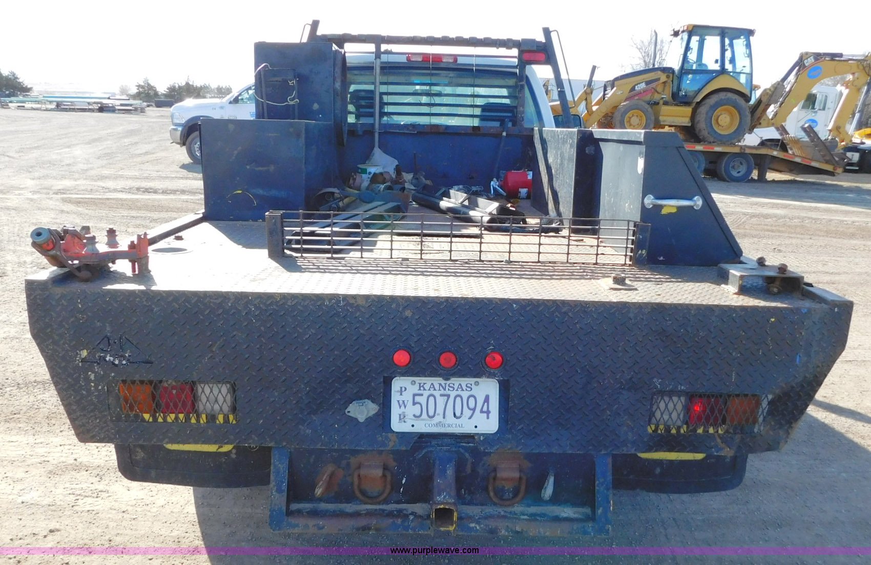 Purple Wave is selling a used 3/4 or 1 Ton Pickup or Van in Kansas. This item is a 2006 Chevrolet Silverado 3500 flatbed pickup truck with the following: 158,504 miles on odometer, 6.6L V8 OHV 32V turbo diesel engine, Automatic transmission, AC and heat, Tilt, Cruise, AM/FM, Manual windows and locks, Cloth interior, 11'3"L x 90"W flatbed, (6) toolboxes, Hole for gooseneck ball, No ball included, Rear tow hooks, Receiver hitch, Trailer wiring, LT215/85R16 tires, Interior/exterior cosmetic damage, Contents not included, Windshield broken, Scratches, Dents