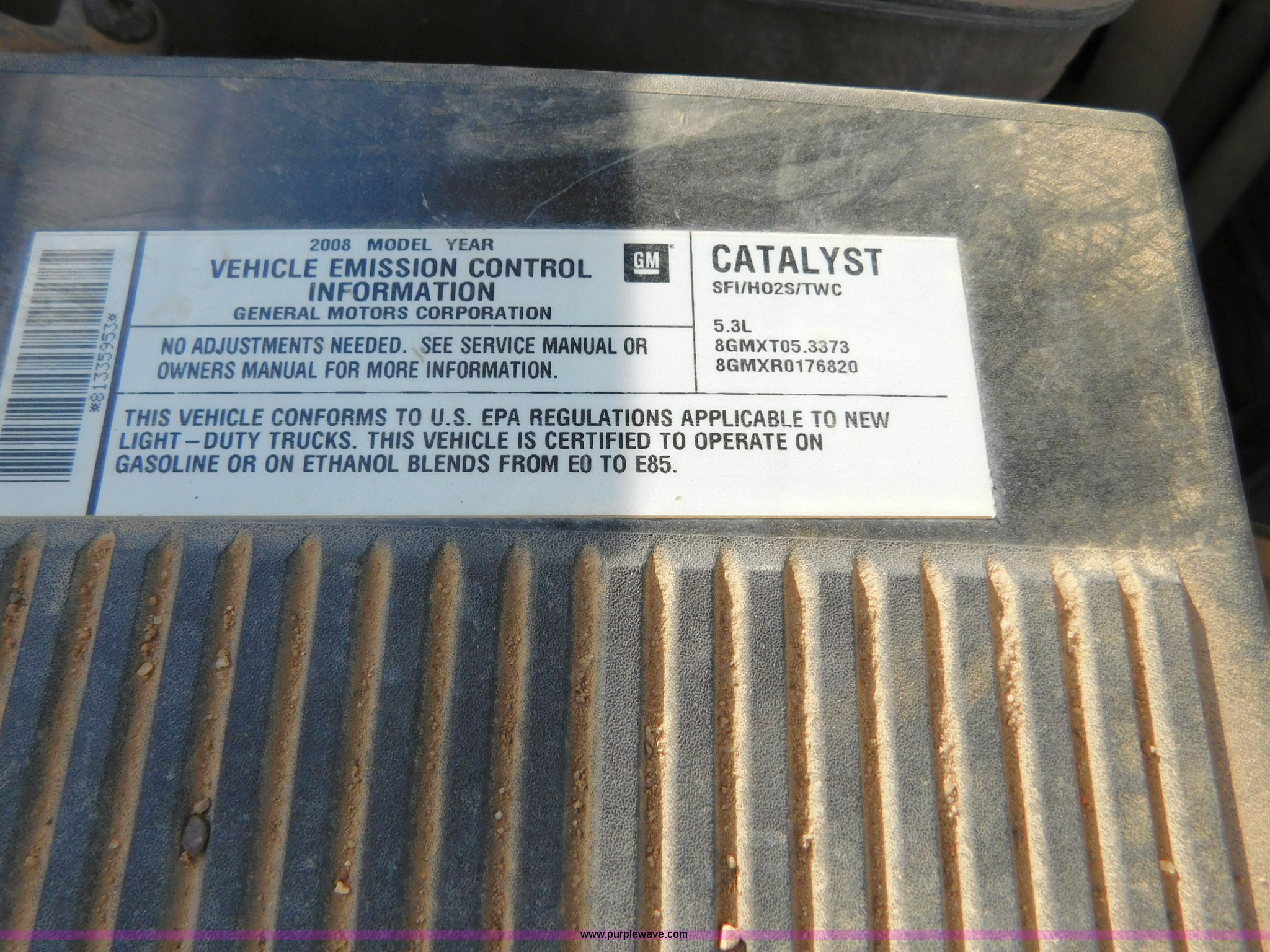 Purple Wave is selling a used 1/2 Ton Pickup or Van in Kansas. This item is a 2008 Chevrolet Silverado 1500 Crew Cab pickup truck with the following: 238,127 miles on odometer, 5.3L V8 OHV 16V FFV gas engine, Automatic transmission, Four wheel drive, AC and heat, Tilt, Cruise, AM/FM/CD, Power windows, locks, mirrors, and seat, Cloth interior, Front tow hooks, Receiver hitch, LT265/70R17 tires, Interior/exterior cosmetic damage, Broken windshield, Hail damage, Grill damage, Engine and transmission are weak, Weak battery