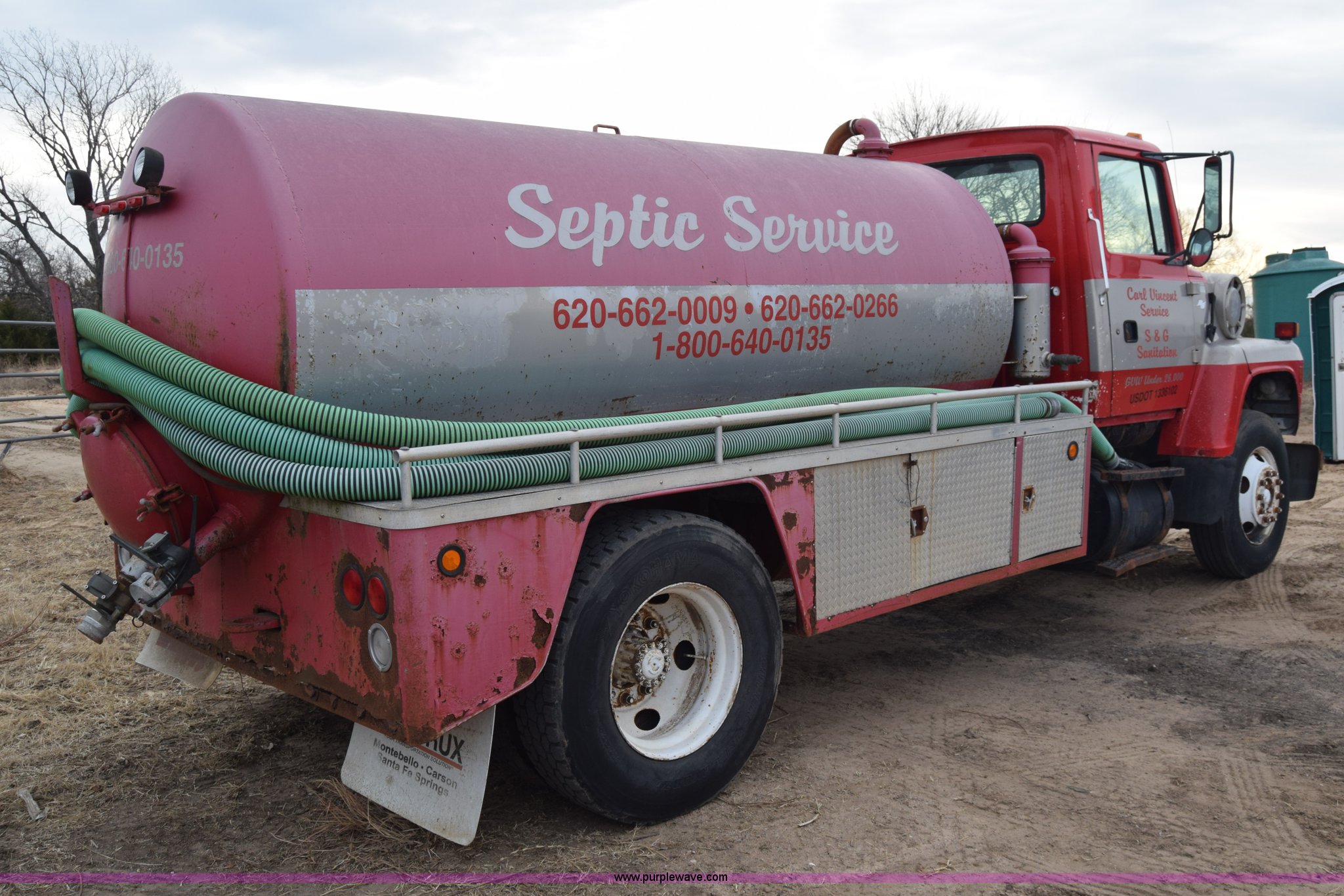 Purple Wave is selling a used Vacuum Truck in Kansas. This item is a 1997 Ford LN8000 vacuum truck with the following: 112,913 miles on odometer, Cummins ISC 8.3L L6 diesel engine, Six speed manual transmission, Single axle, AC and heat, Non-operational AC, AM/FM, Air suspension seat, Block heater, Front tow hooks, 12'L x 8'W bed, 1,500 gallon tank, Power Products 530 pump, Spring suspension, Air brakes, 11R22.5 tires, Seat torn