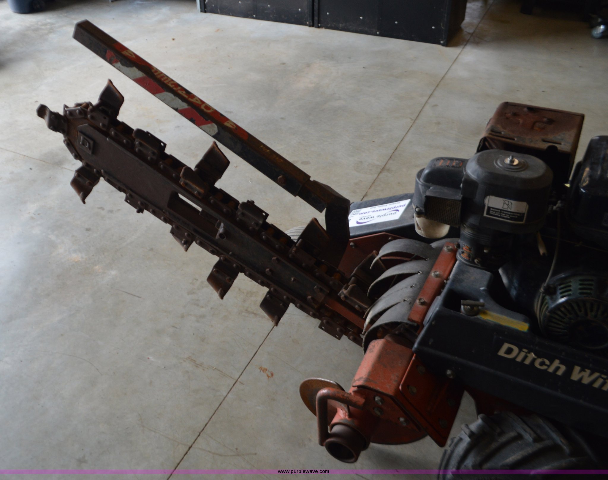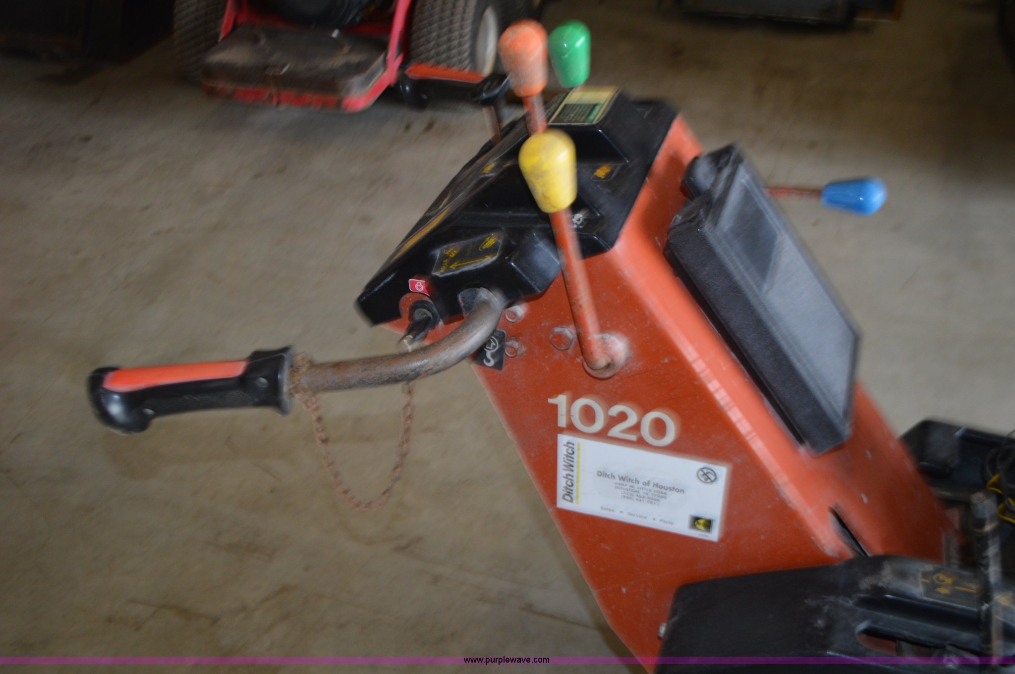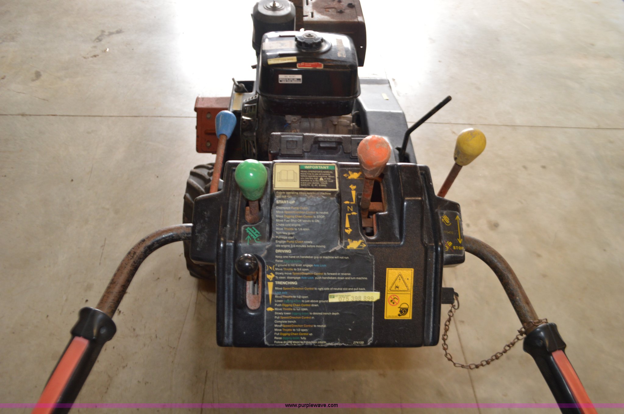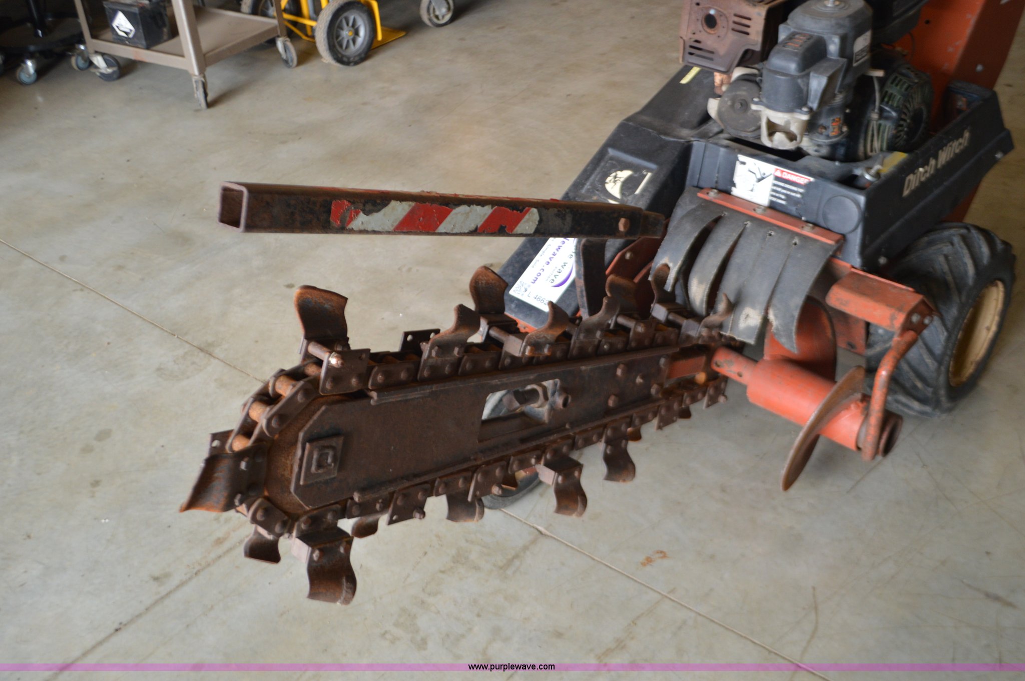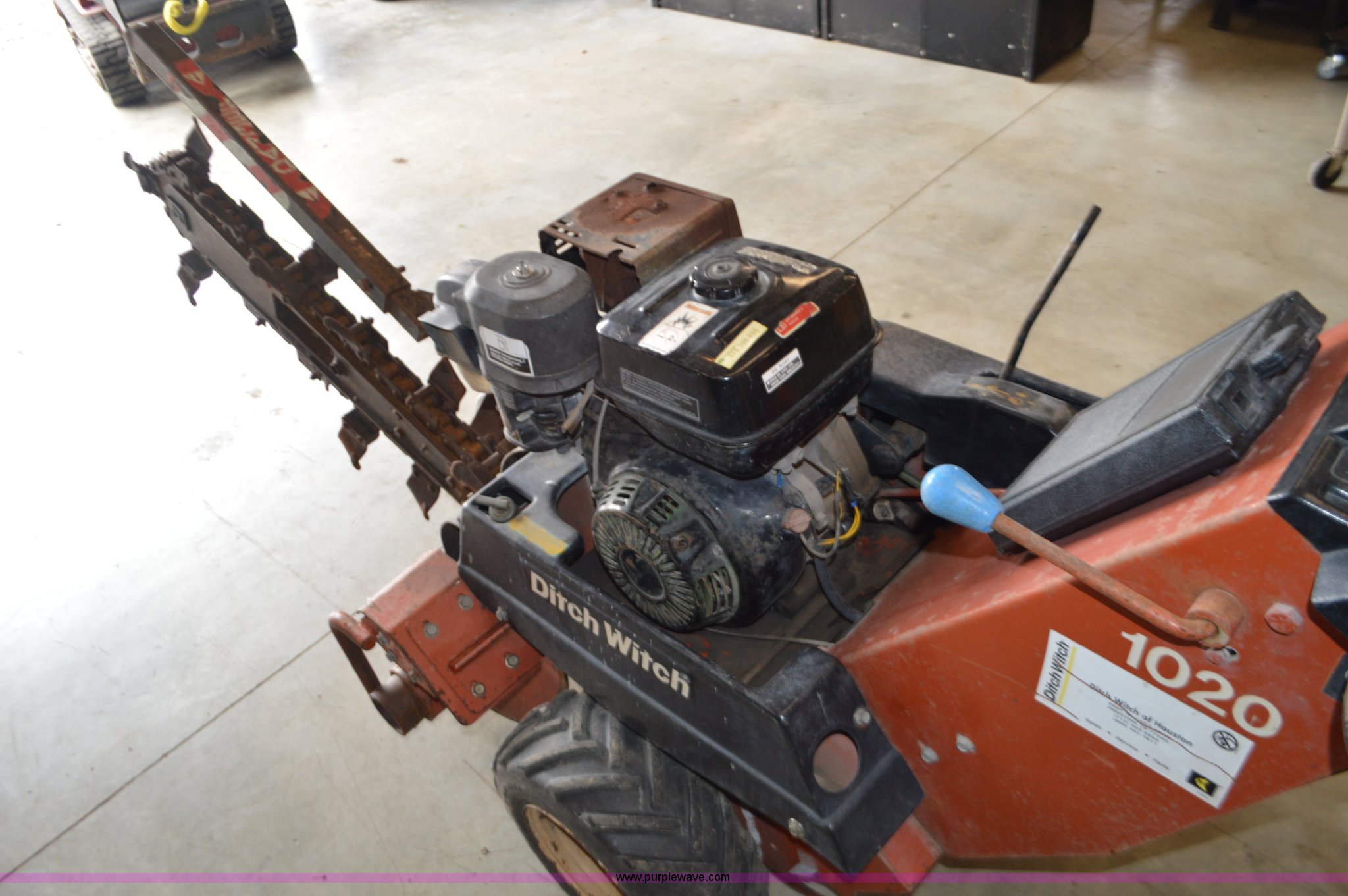 Purple Wave is selling a used Trencher or Rock Saw in Missouri. This item is a Ditch Witch 1020 walk-behind trencher with the following: Single cylinder gas engine, Hydrostatic transmission, 3.5' trench bar, 6" trench width, 13x5x6 front tire, 18x6.50-8 rear tires, Serial 1P1443