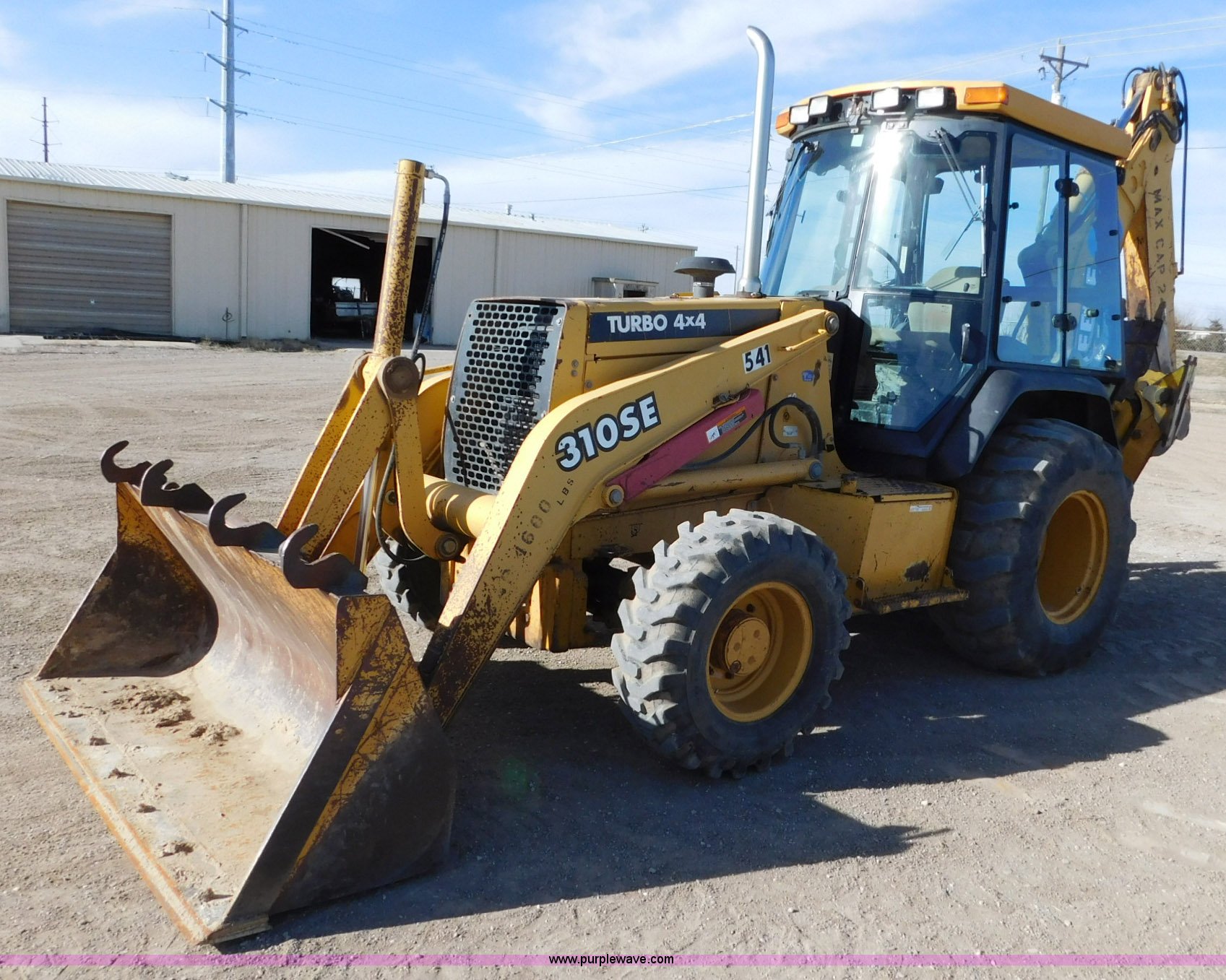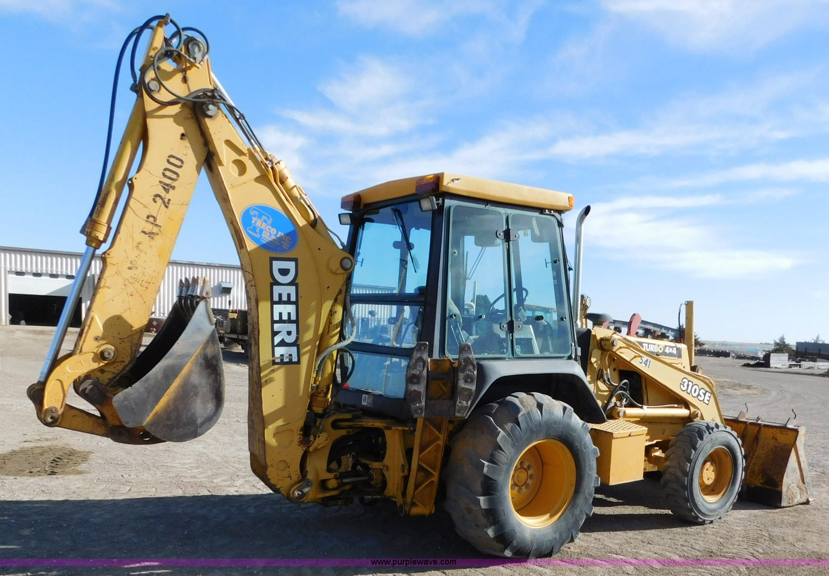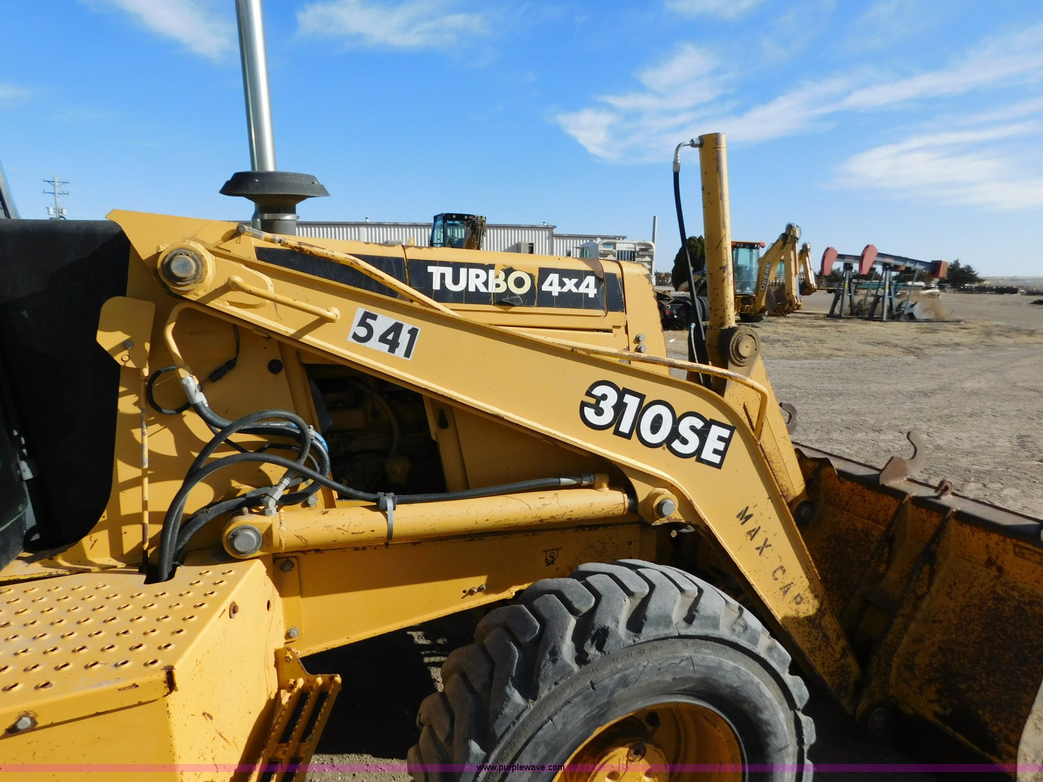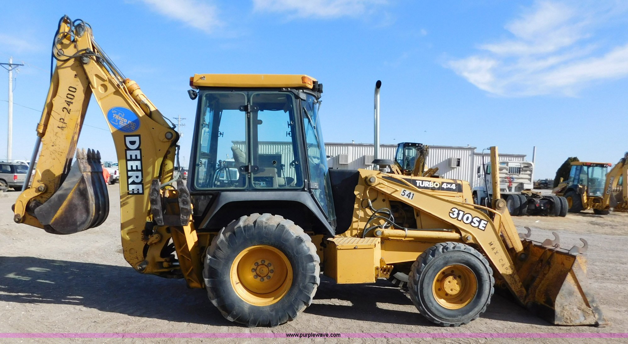 Purple Wave is selling a used Tractor Loader Backhoe in Kansas. This item is a 1997 John Deere 310SE backhoe with the following: 7,383 hours on meter, John Deere 4045TT050 4.5L turbo diesel engine, Serial 705954, Shuttle shift transmission, 4F-4R gears, Four wheel drive, EROPS, Enclosed cab, AC, Tilt steering wheel, AM/FM, Suspension seat, Wipers, Front and rear work lights, Wobble stick backhoe controls, Foot control, Extendable stick, John Deere 92"W bucket, Bolt-on cutting edge, 1.12 cu. yd. capacity, 24"W backhoe bucket, (5) teeth, Front couter weights, 12.5/80-18 front tires, 19.5L-24 rear tires, Serial T0310SE827114