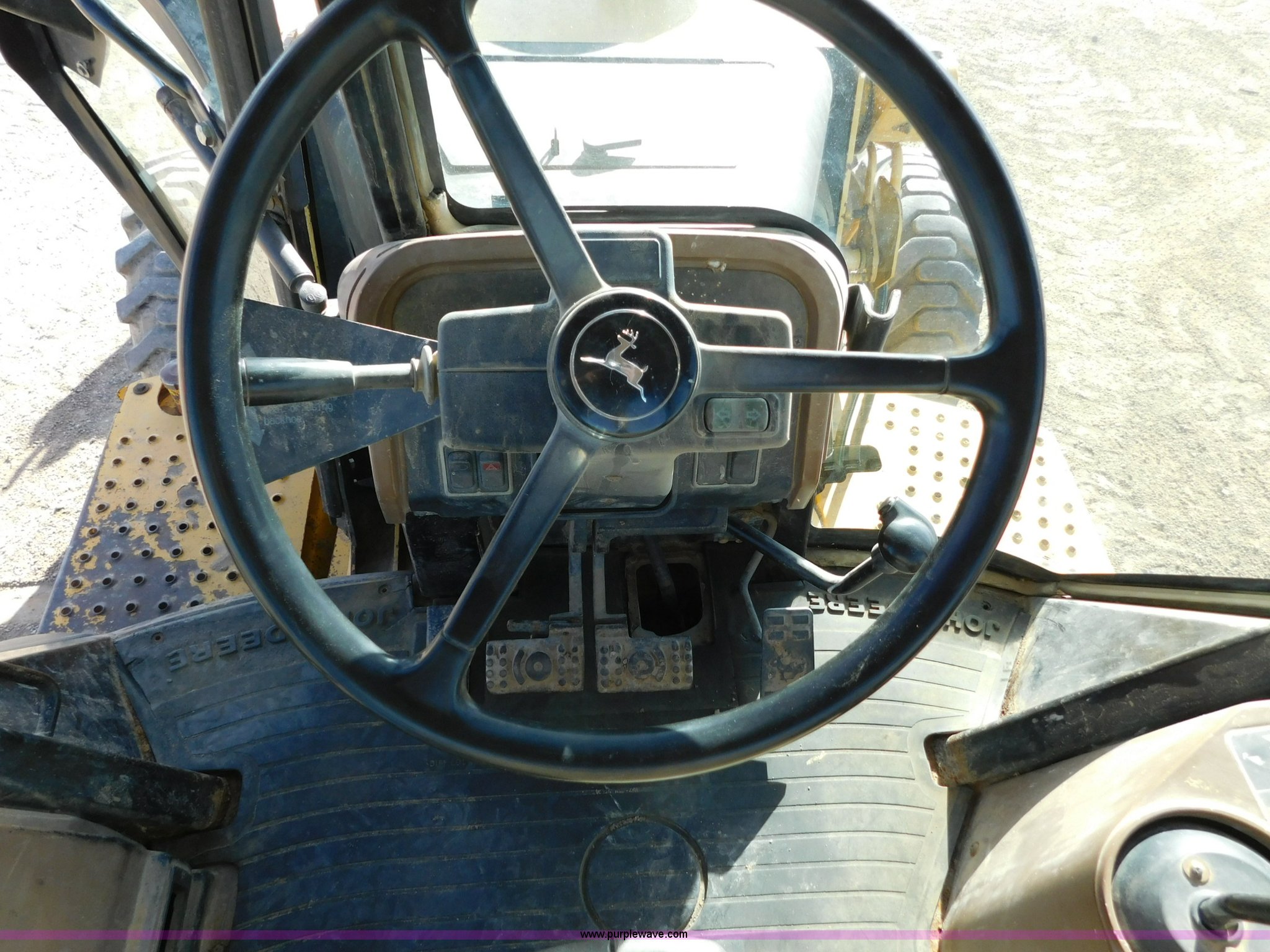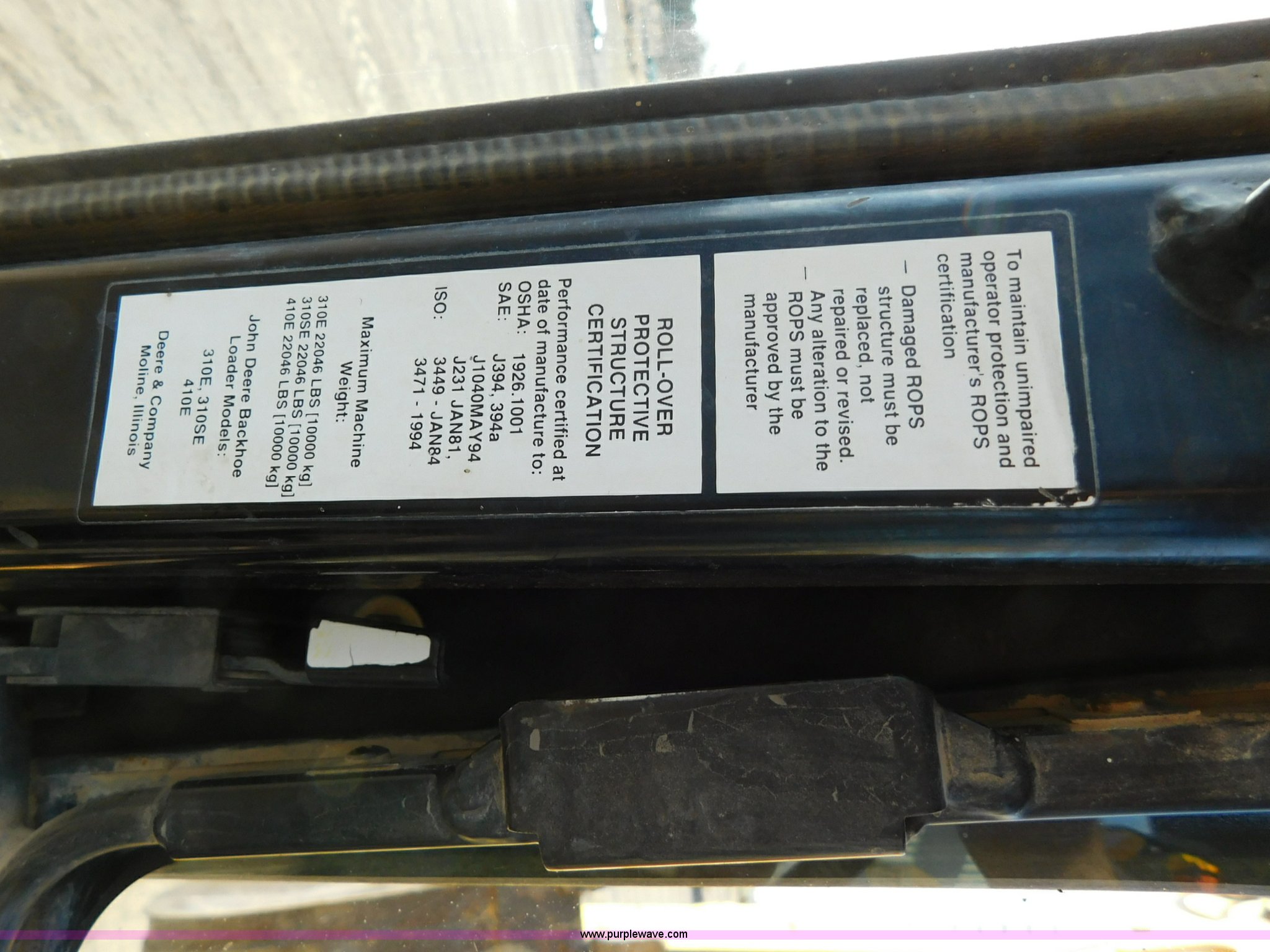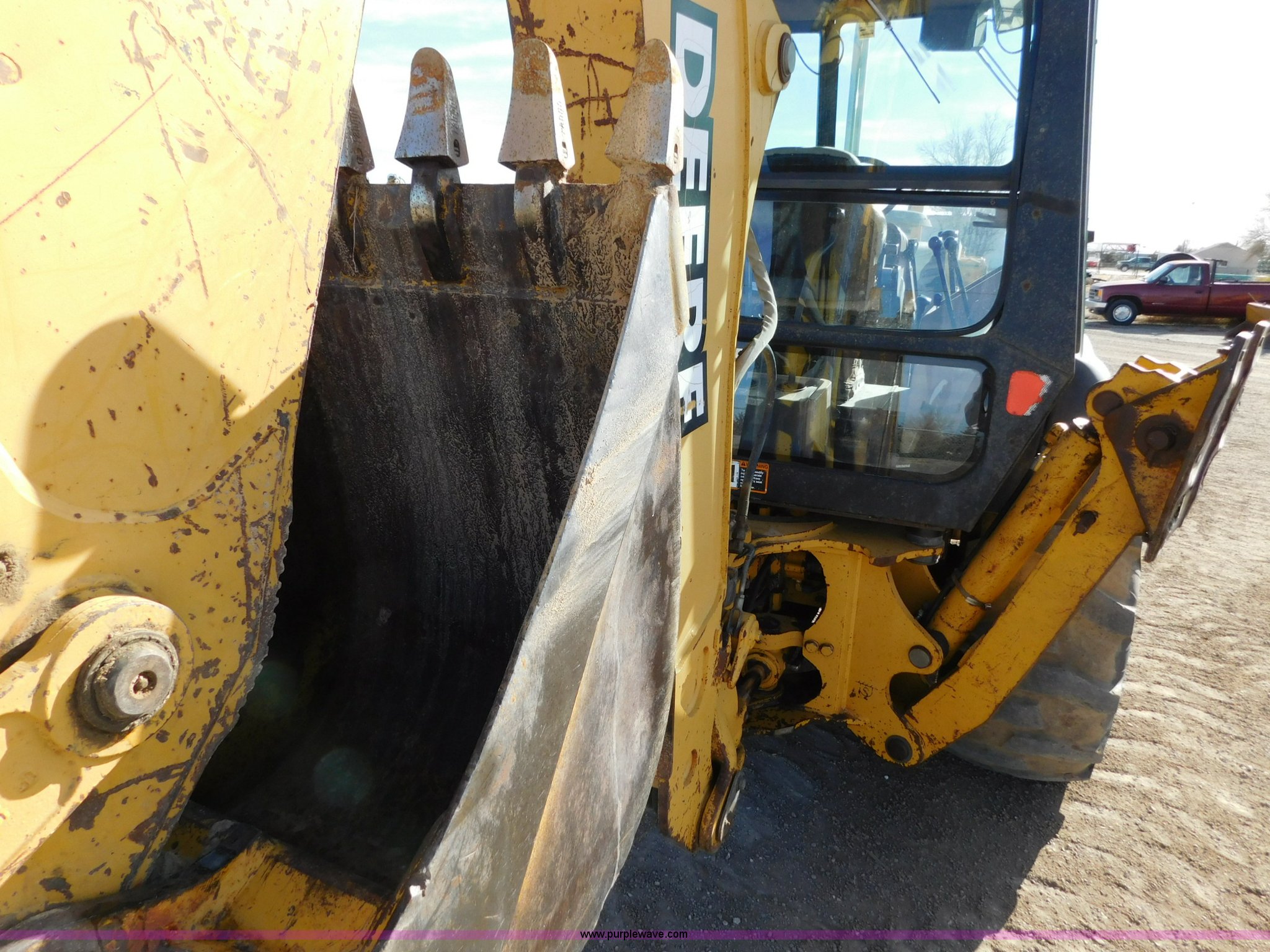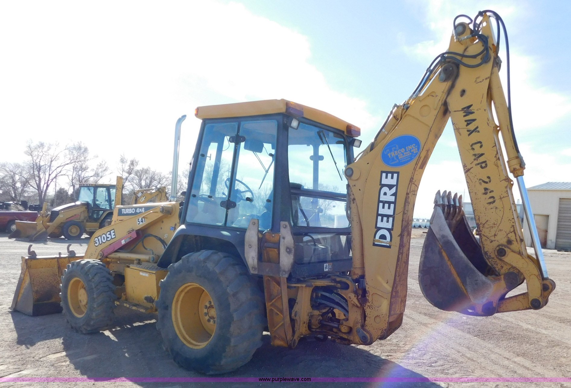 Purple Wave is selling a used Tractor Loader Backhoe in Kansas. This item is a 1997 John Deere 310SE backhoe with the following: 7,383 hours on meter, John Deere 4045TT050 4.5L turbo diesel engine, Serial 705954, Shuttle shift transmission, 4F-4R gears, Four wheel drive, EROPS, Enclosed cab, AC, Tilt steering wheel, AM/FM, Suspension seat, Wipers, Front and rear work lights, Wobble stick backhoe controls, Foot control, Extendable stick, John Deere 92"W bucket, Bolt-on cutting edge, 1.12 cu. yd. capacity, 24"W backhoe bucket, (5) teeth, Front couter weights, 12.5/80-18 front tires, 19.5L-24 rear tires, Serial T0310SE827114