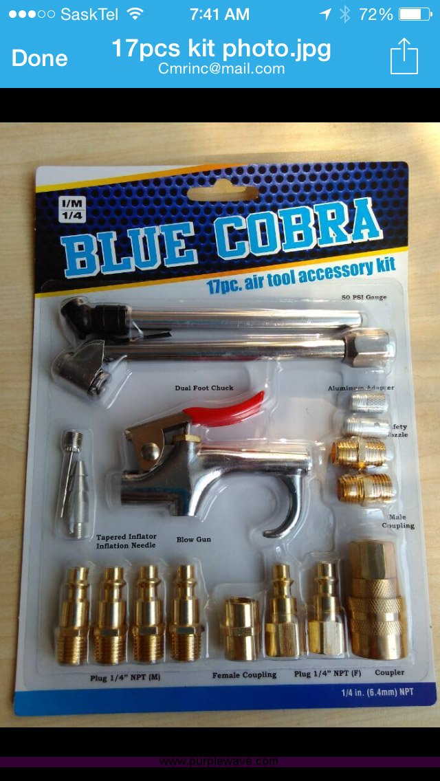 (137) piece impact set. Torque wrench 1" chuck, 4,000 RPM, 1,843 lbs torque, Stubby impact wrench 3/4" chuck, 1,327 lbs torque, 3,900 RPM, (8) piece 3/4" deep wall impact set 21 mm, 24 mm, 26mm, 27 mm, 29 mm, 30 mm, 32 mm, and 38 mm, (8) piece 3/4" deep wall SAE impact set 13/16", 15/16", 1 1/16", 1 1/8", 1 3/16", 1 1/4", and 1 1/2", (10) piece metric 1" socket set 24 mm, 27 mm, 30 mm, 34 mm, 36 mm, 38 mm, 41 mm, and 46 mm, (10) piece SAE 1" socket set 1 5/16", 1 1/16", 1 3/16", 1 1/4", 1 1/2", 1 9/16", 1 5/8", 1 3/4", 1 13/16", (3) extension bars 1" chuck, 7", 10", and 13", Two piece digital tire gauge, (26) piece metric socket set 3/4" chuck 21 mm, 22 mm, 23 mm, 24 mm, 26 mm, 27 mm, 28 mm, 29 mm, 30 mm, 31 mm, 32 mm, 34 mm, 36 mm, 38 mm, 41 mm, 46 mm, and 50 mm, 1" chuck 55 mm, 50 mm, 65 mm, Ratchet, Bent bar, Heavy sliding bar, 3/4" to 1" sliding head, Force bar, Extension bar, (26) piece SAE socket set 3/4" chuck 13/16", 7/8", 15/16", 1 1/16", 1 1/8", 1 3/16", 2", 2 1/4", 1" chuck 2 1/4", 2 3/8", 2 5/8", Ratchet, Bent bar, Sliding bar, 3/4" to 1" sliding head, Force bar, Extension bar, (8) Piece adapter set 1/4" male to 3/8" female, 3/8" male to 1/4" female, 3/8" male to 1/2" female, 1/2" male to 3/8" female, 1/2" male to 3/4" female, 3/4" male to 1/2" female, 3/4" male to 1" female, 1" male to 3/4" female, Unused. Seller provided shipping available to a commercial address in the lower 48 states for $195. Representative photo. Canada West Supply. 1100 McKinley Street. Anoka, MN 55303